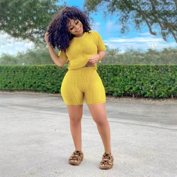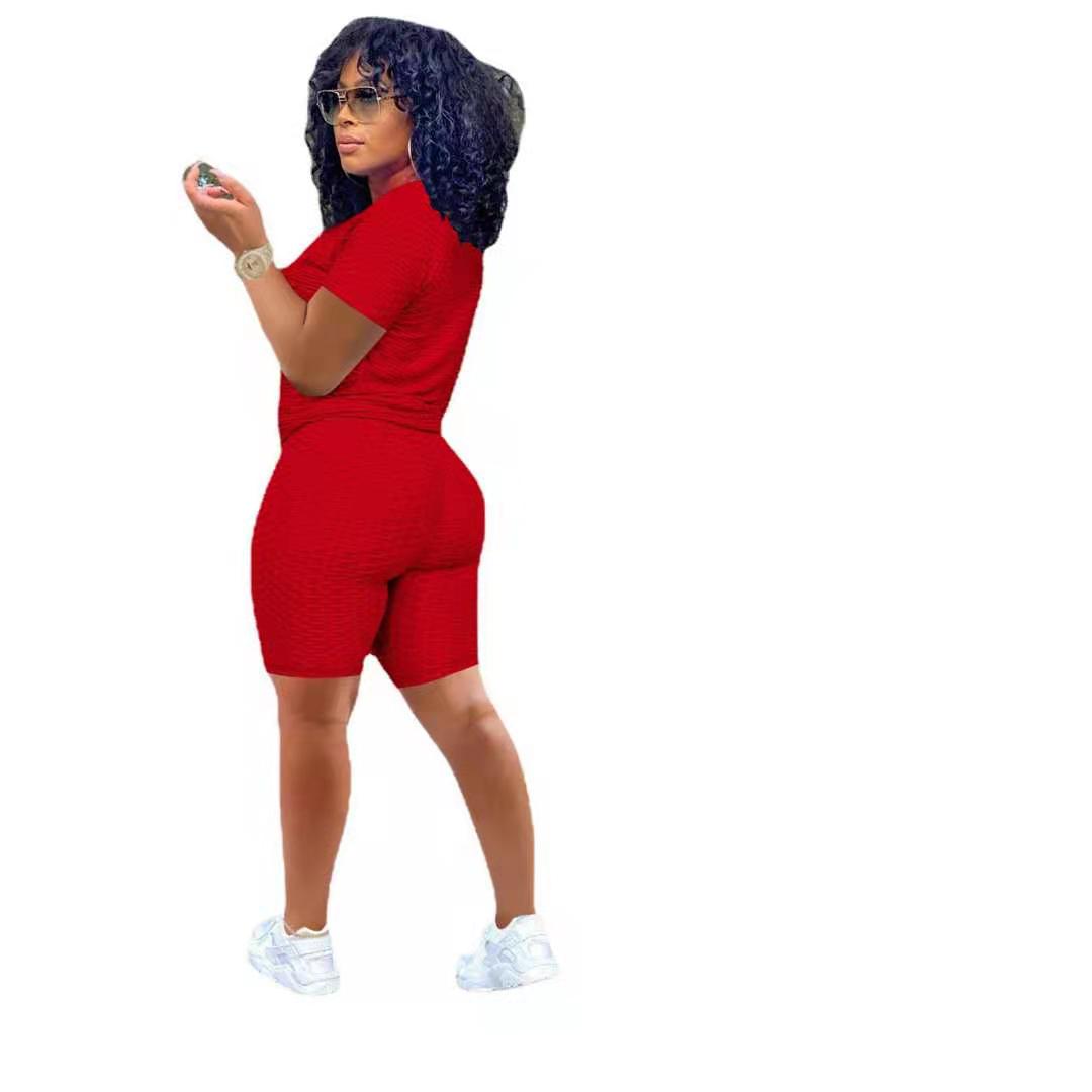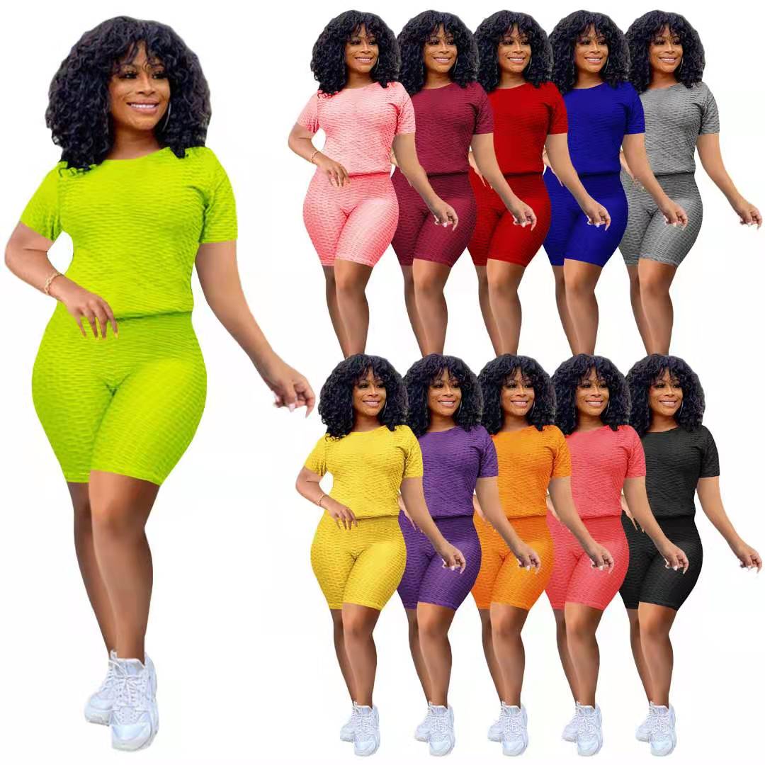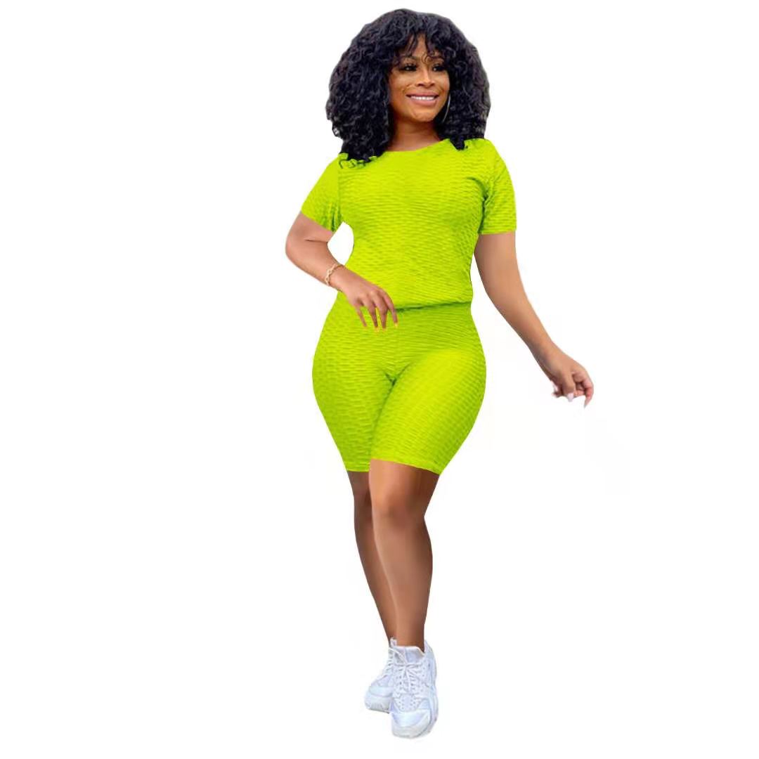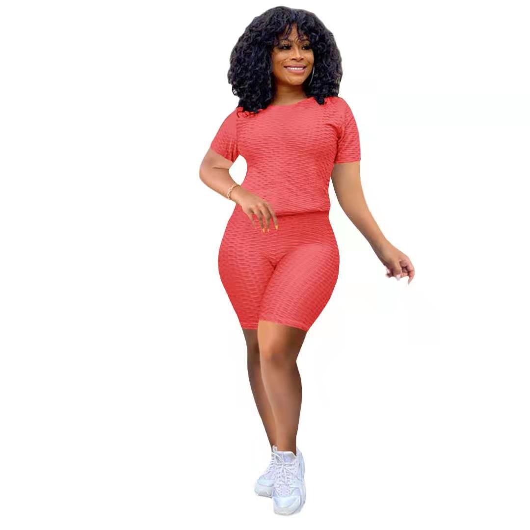 Wholesale women's solid color yoga short suit 2PCS(CL8641)