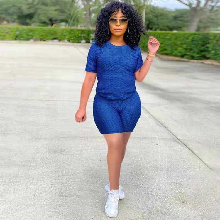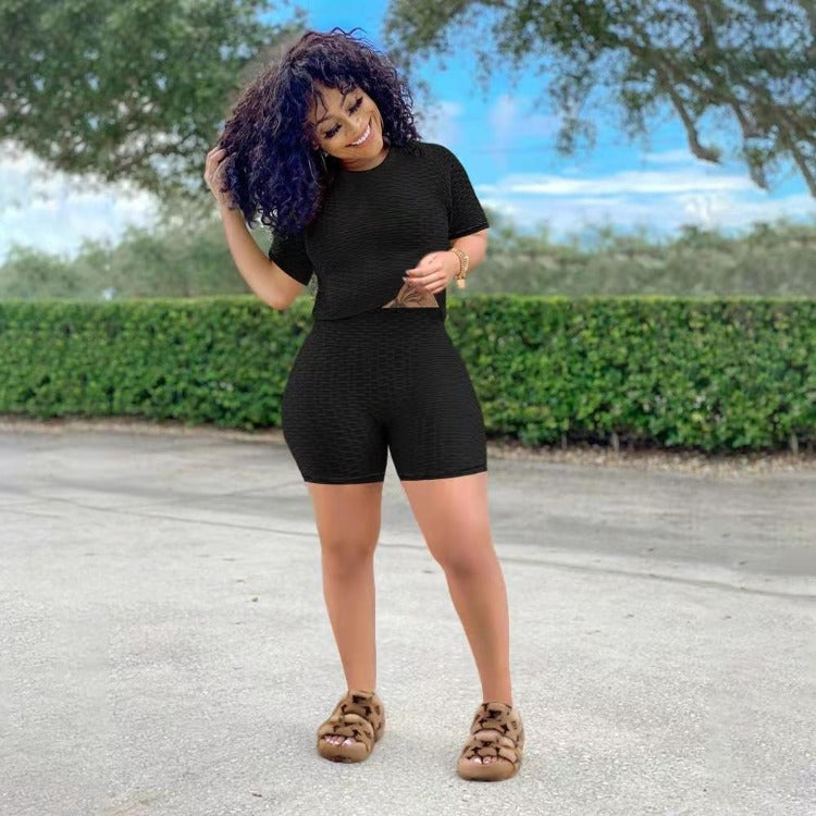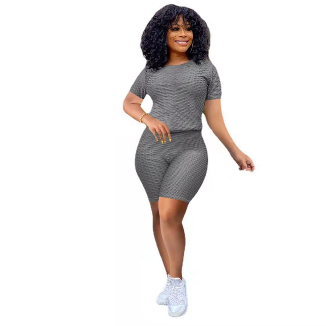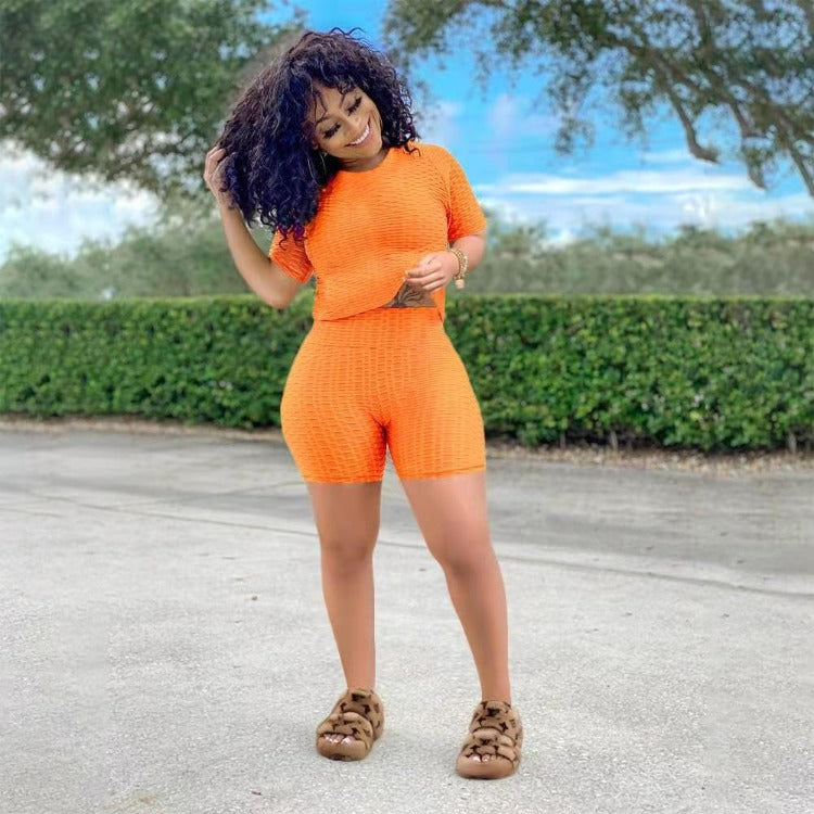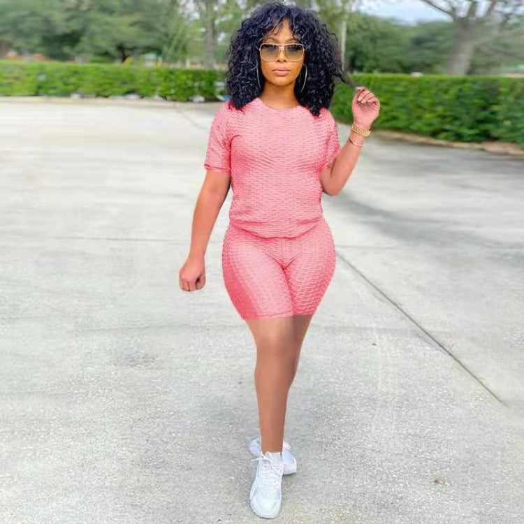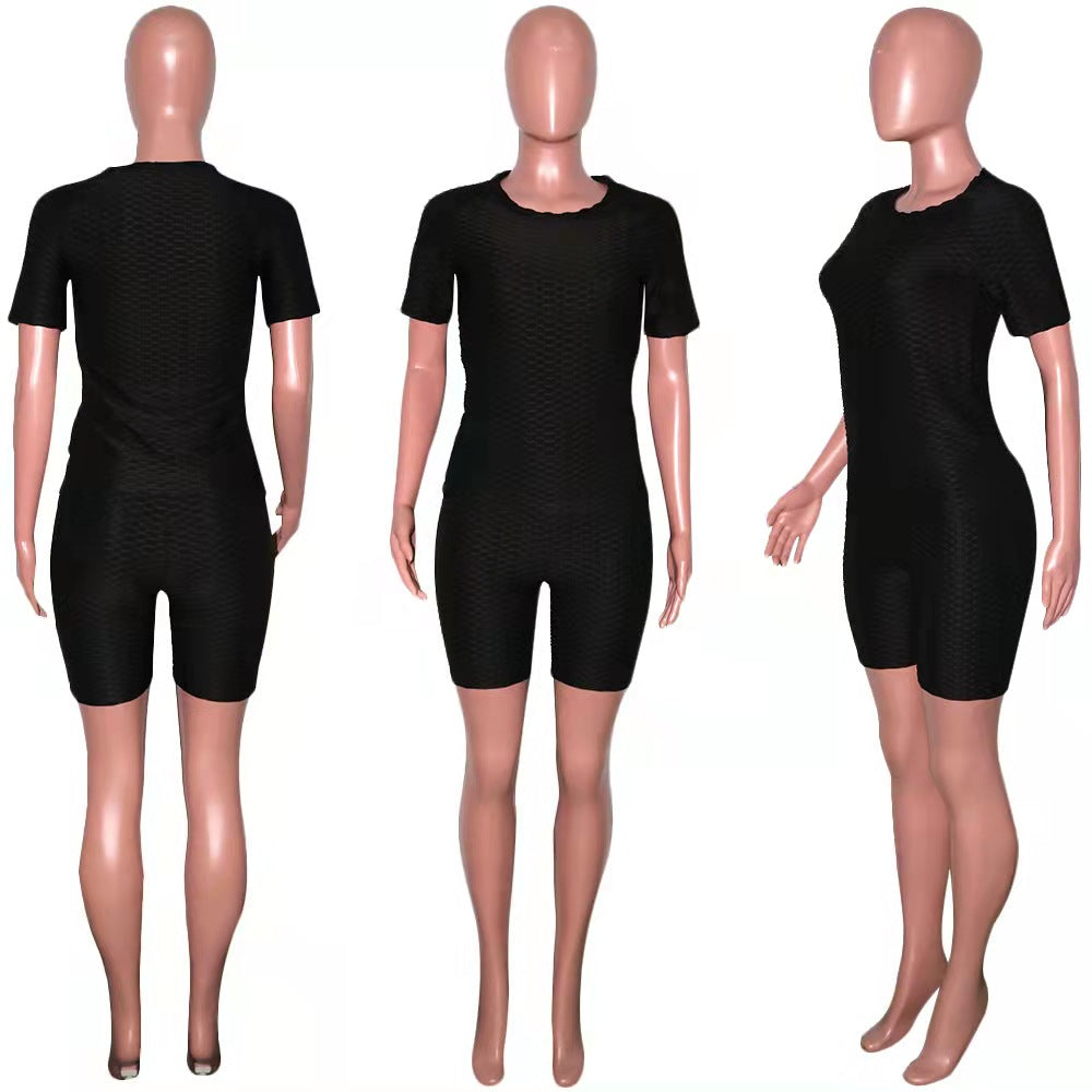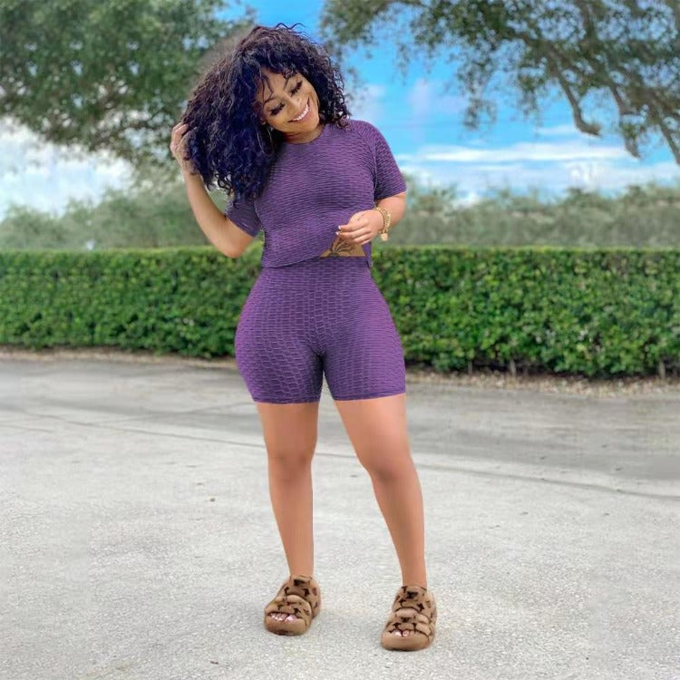 Wholesale women's solid color yoga short suit 2PCS(CL8641)
