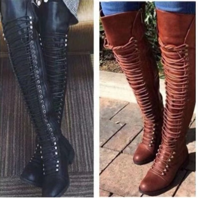 Wholesale lace up long tube round head warm women's flat Boots(SL8299)