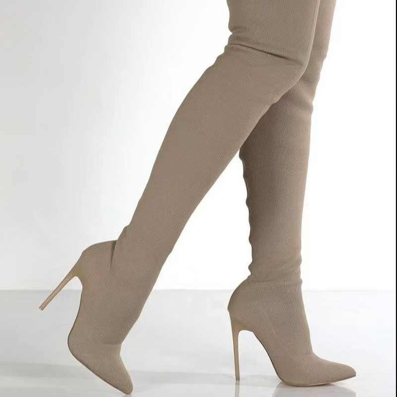 Wholesale knitted fabric sexy high heeled Knee Boots(HH8049)