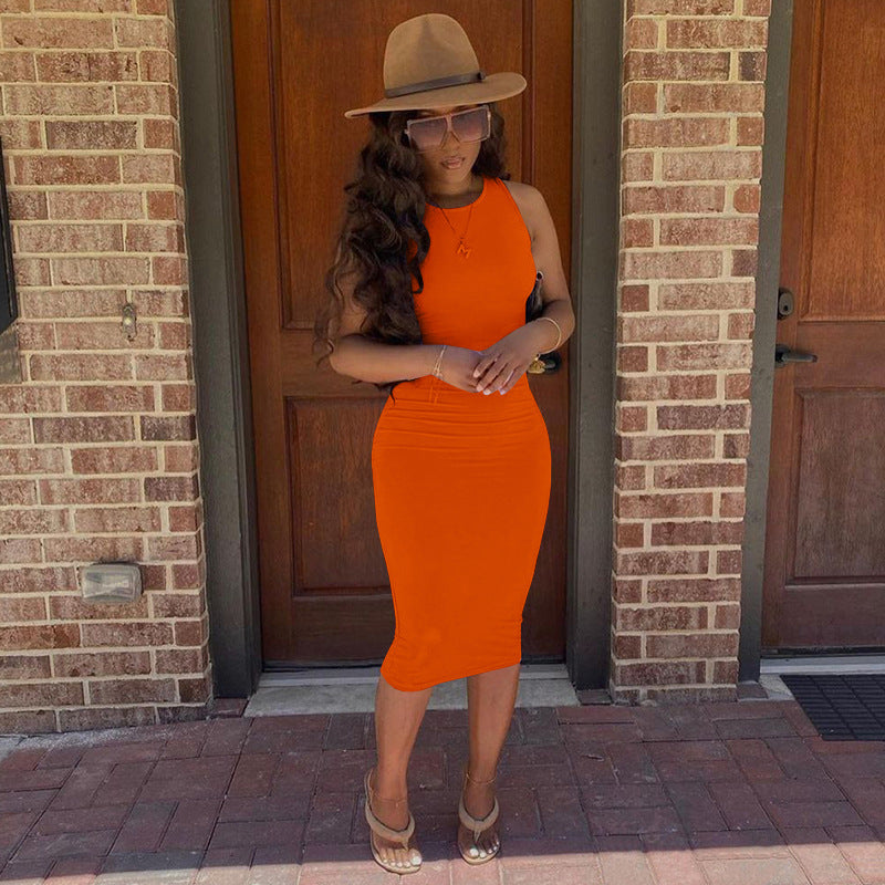 Fashion Casual Solid Color Sleeveless Dress (CL10036)
