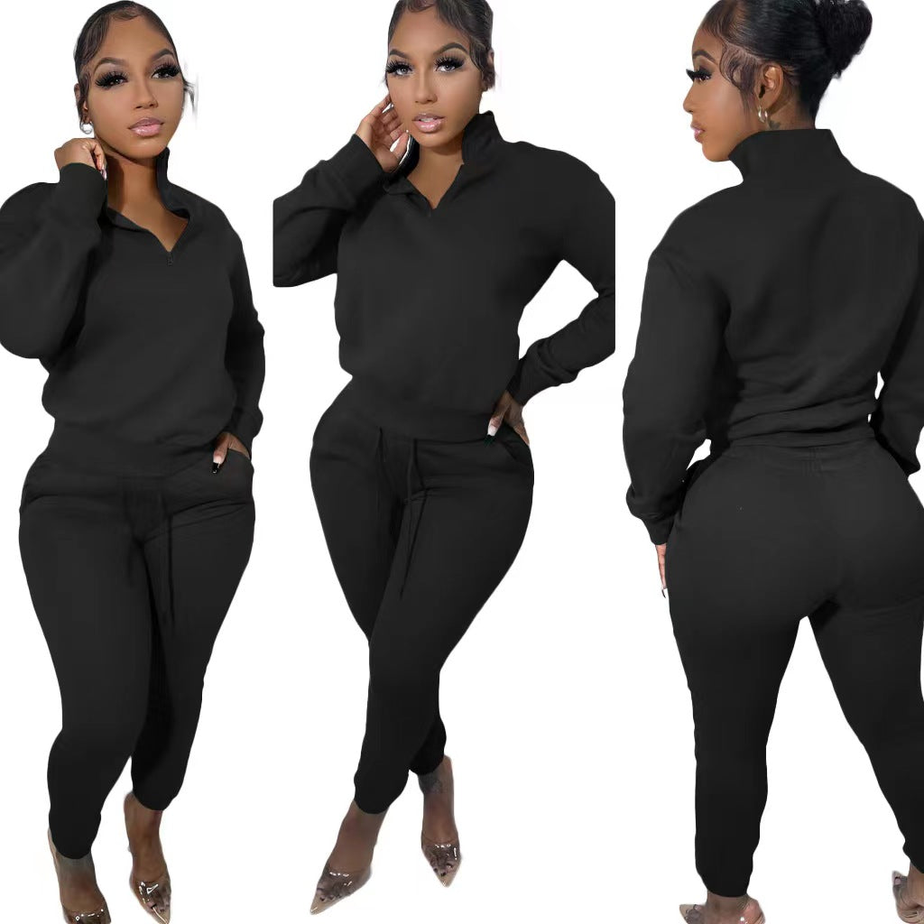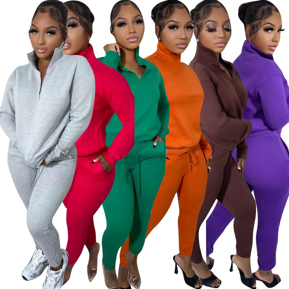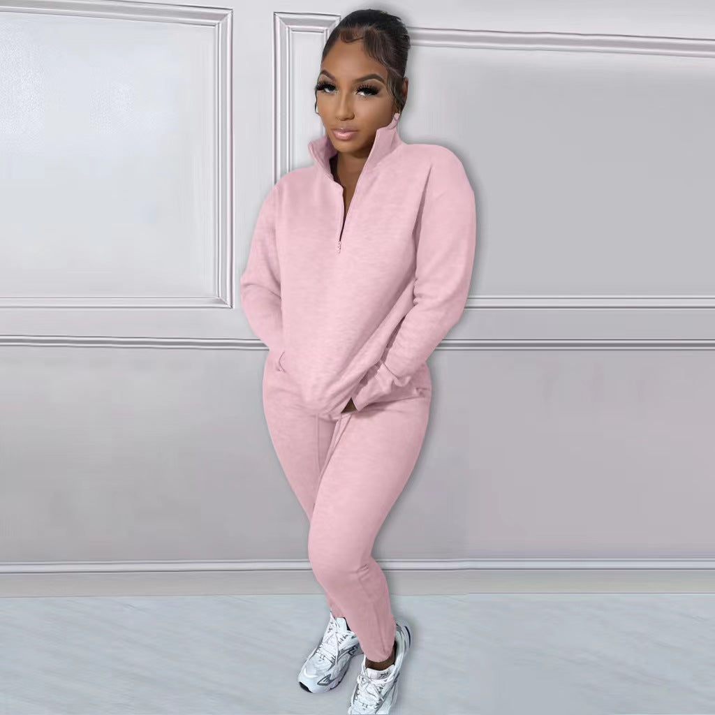Leisure Sports Stand Collar Zipper Two-Piece Set(CL10980)
