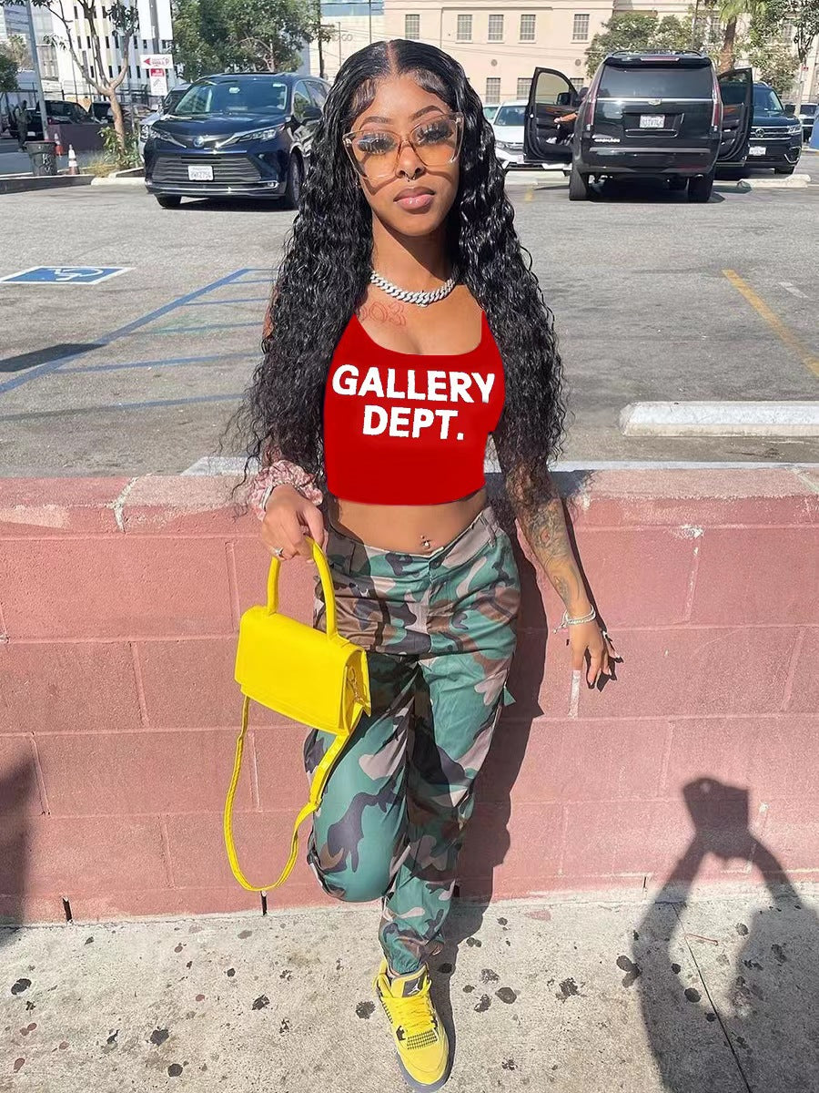 Letter Printed Short Vest Exposed Crop Top(CL11702)