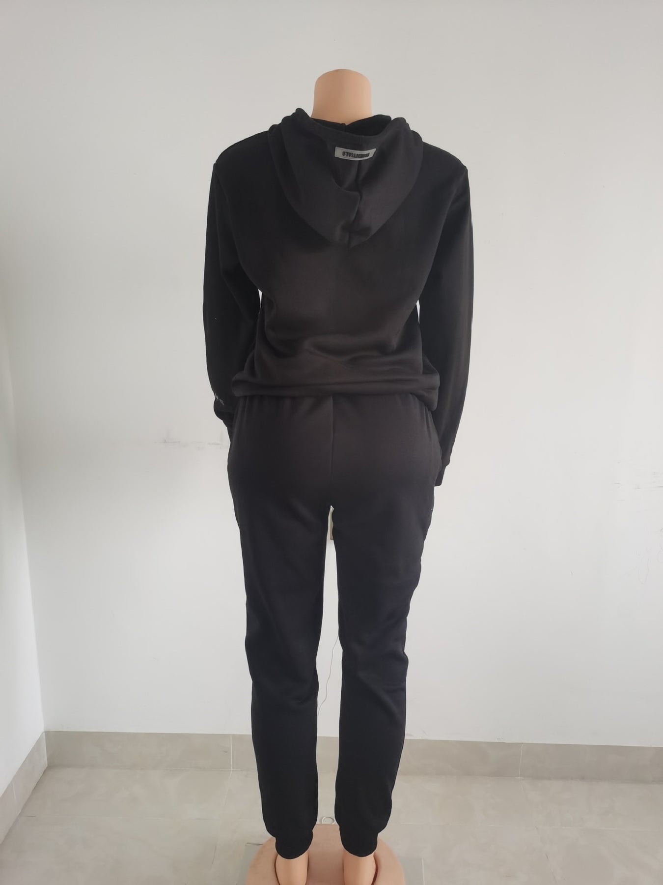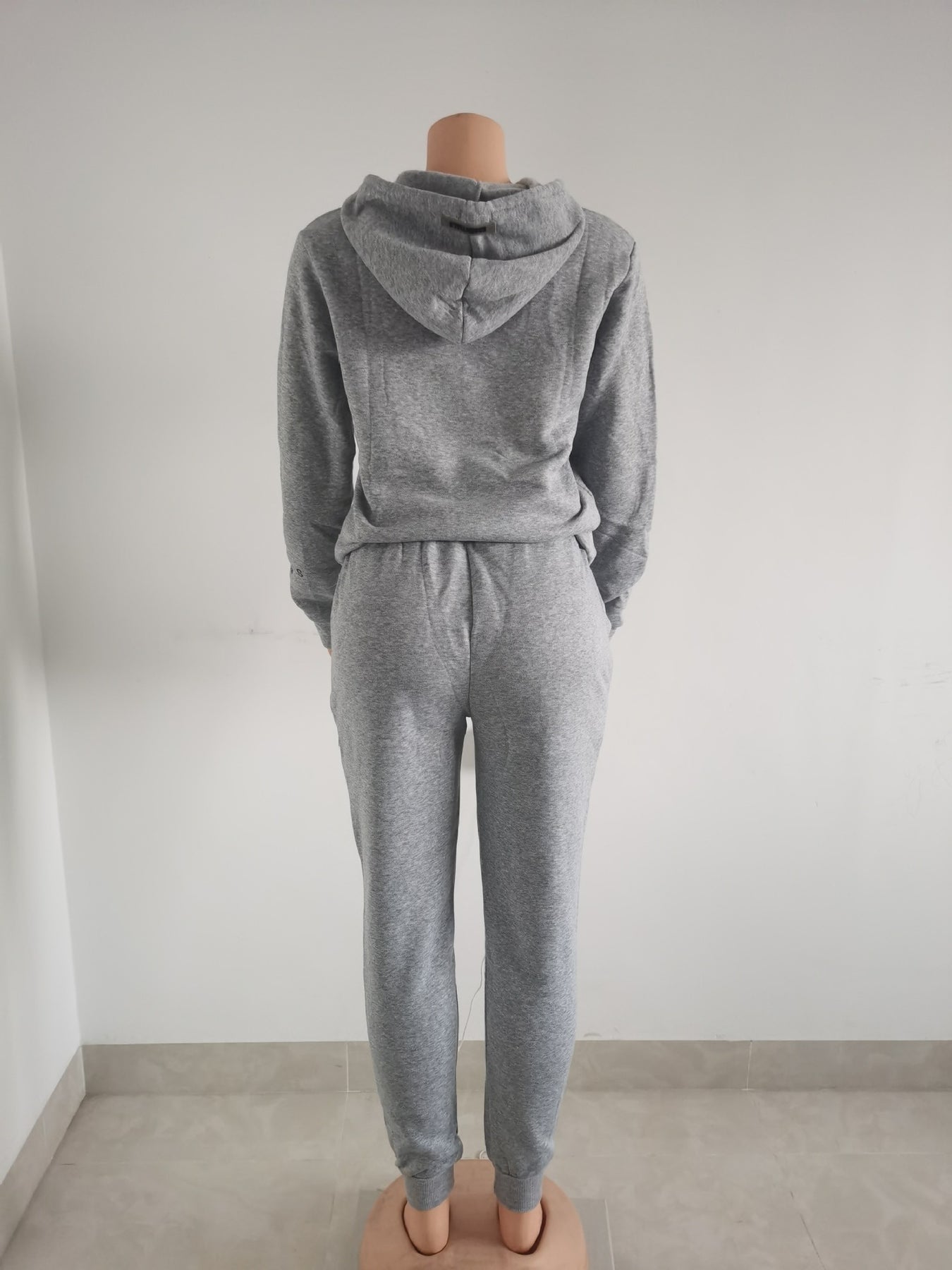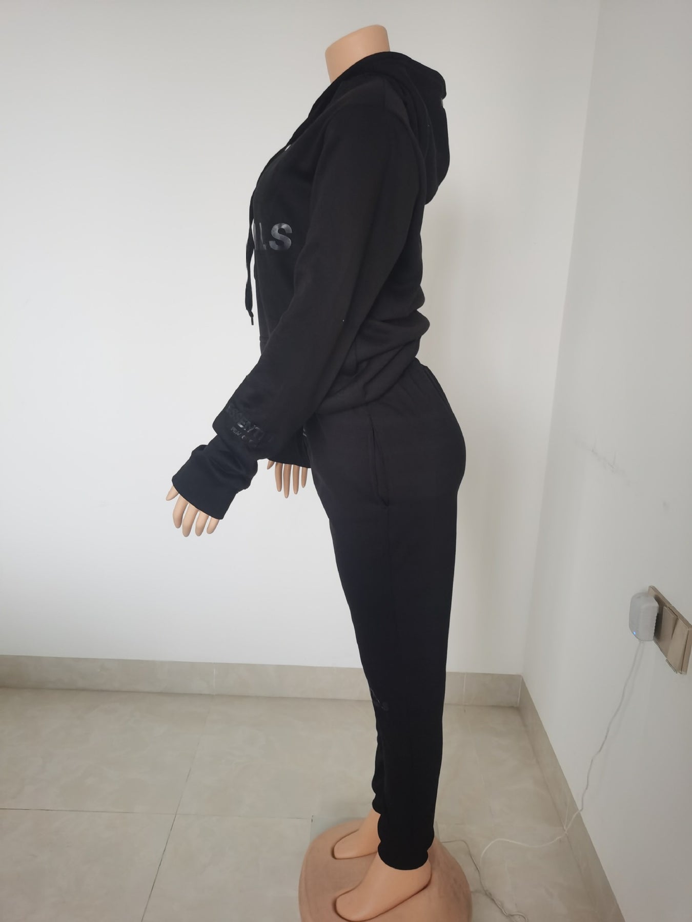 Letter Printing plus Velvet Hooded 2PCS Suits (CL11048)