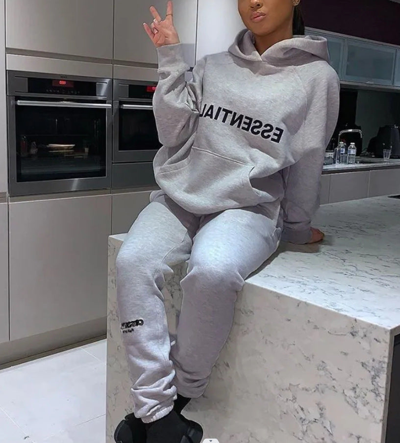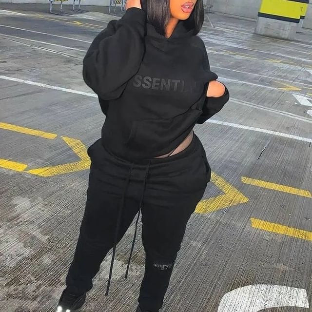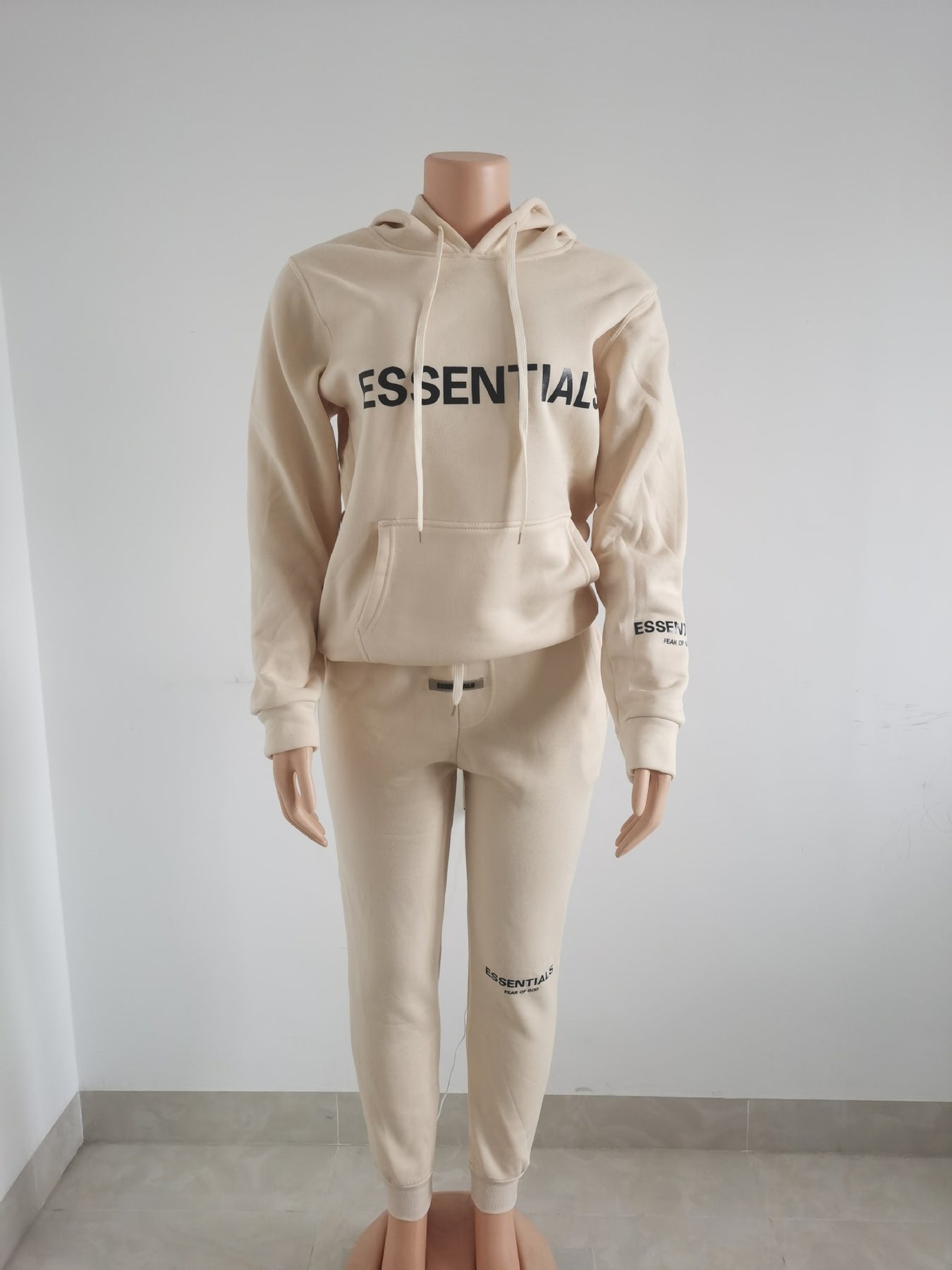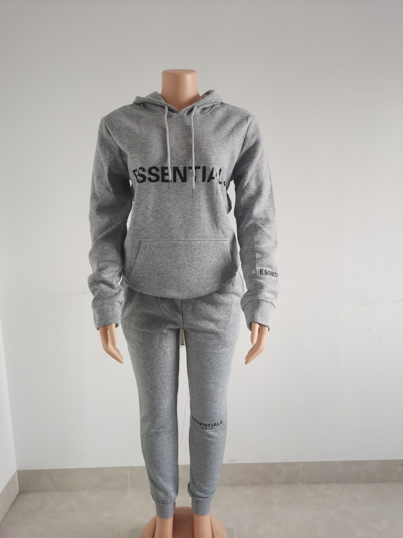 Letter Printing plus Velvet Hooded 2PCS Suits (CL11048)