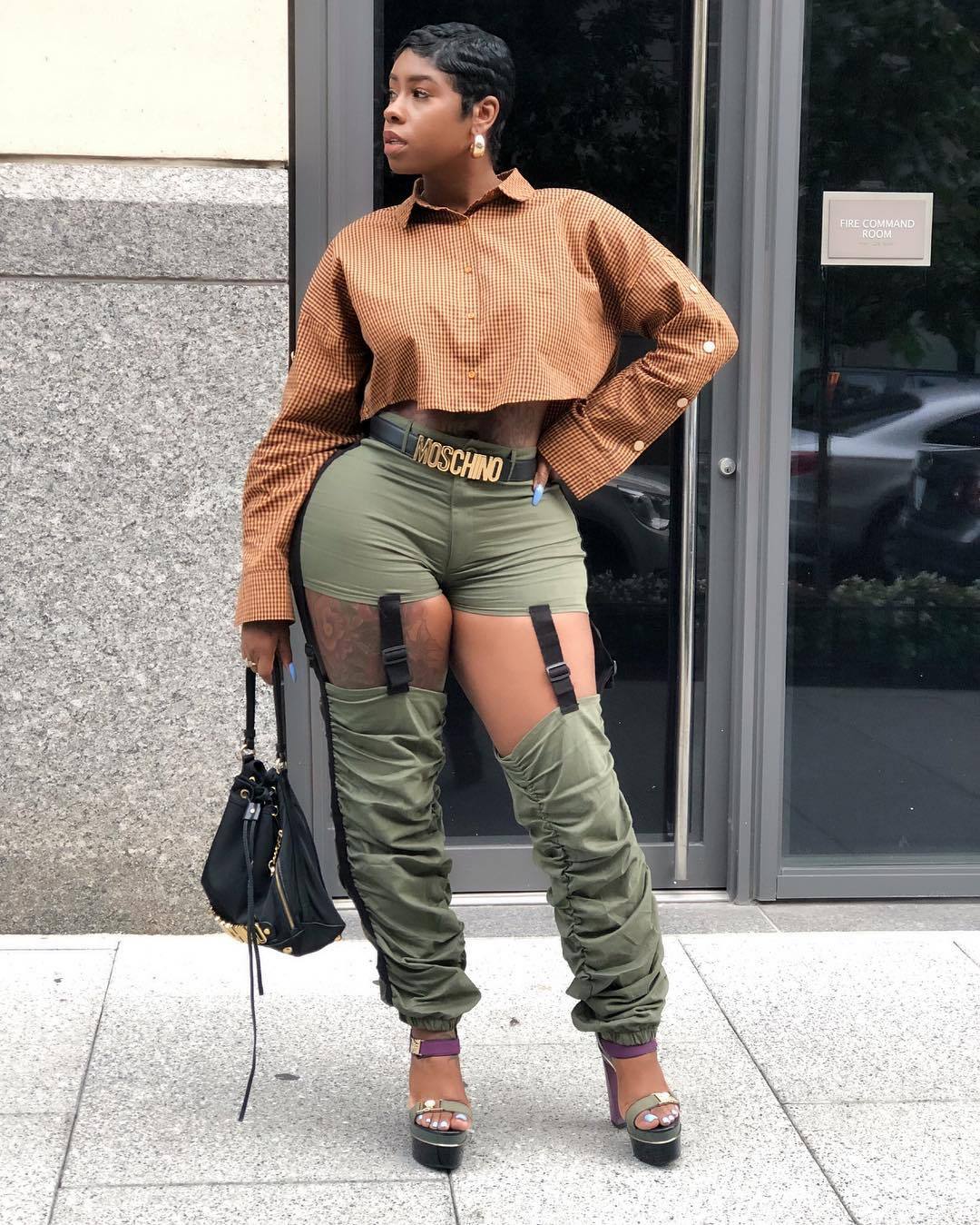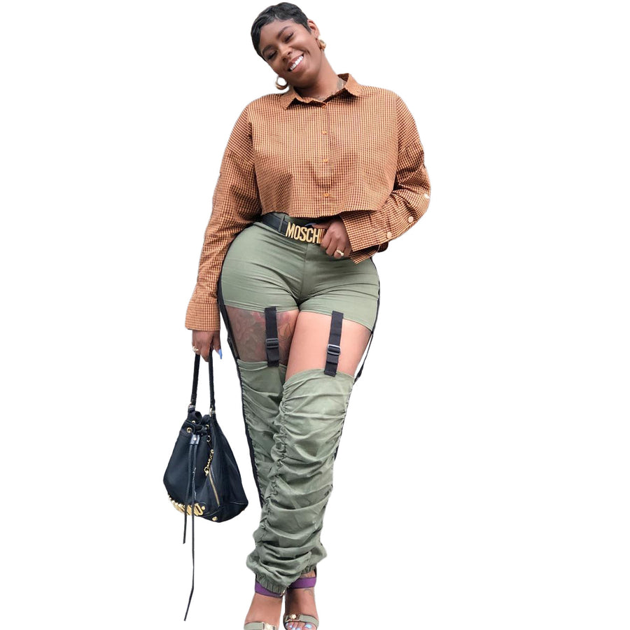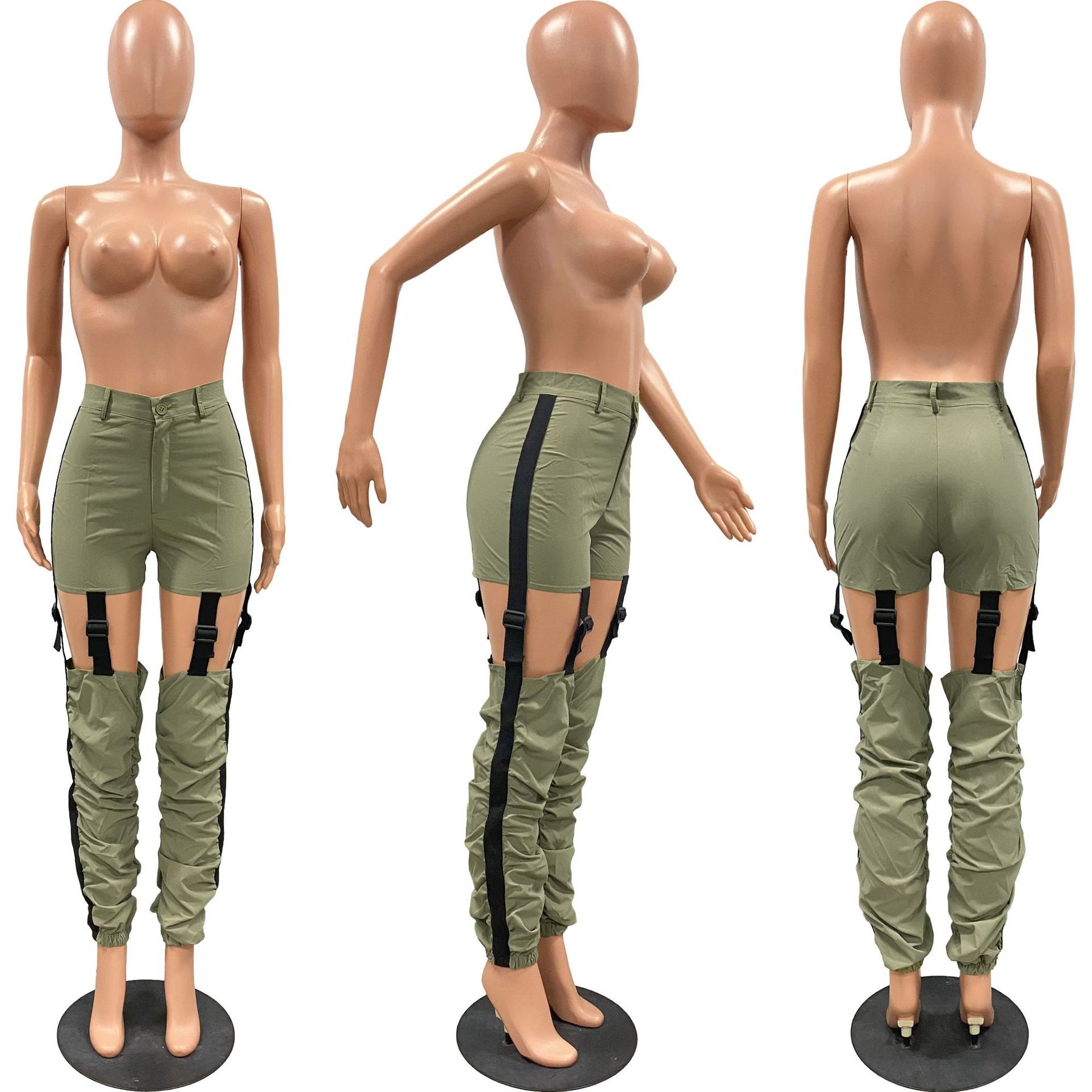 Mid-Waist Pleated Pile Pants Adjustable Buckle Suspender Trousers (CL11149)
