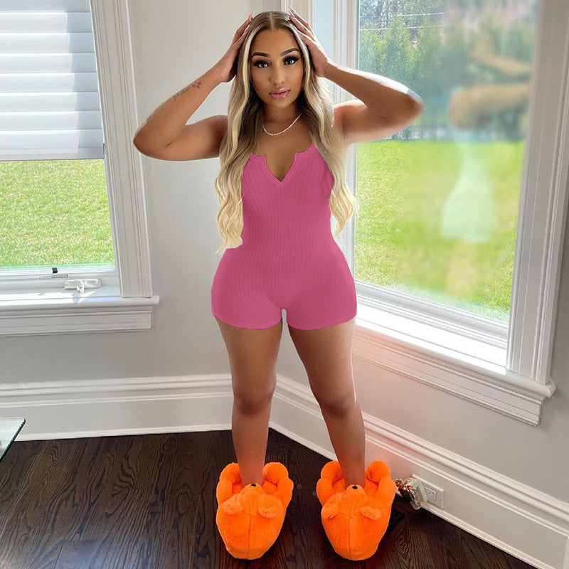 New Women's Thread Solid Color and V-neck Jumpsuit (CL10106)