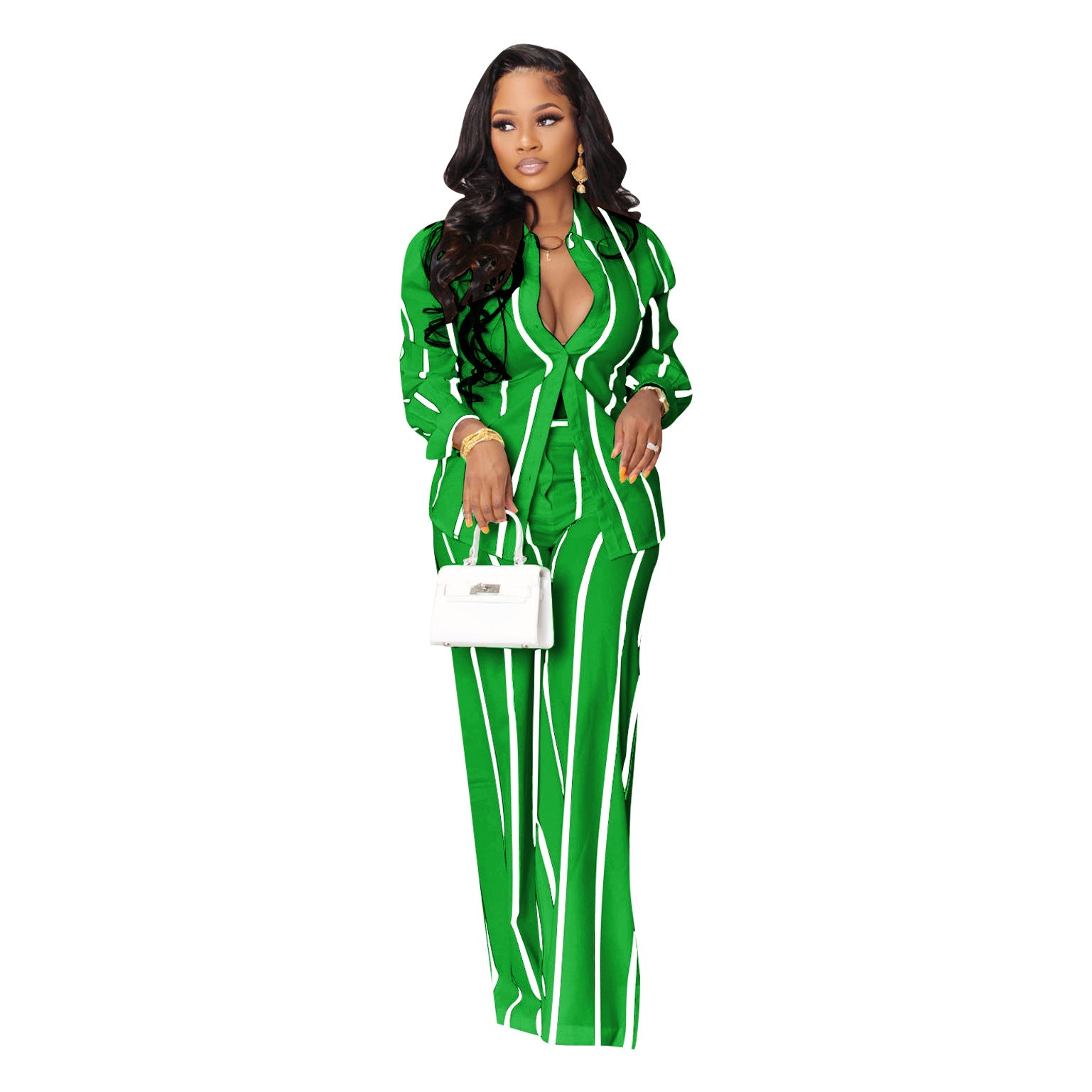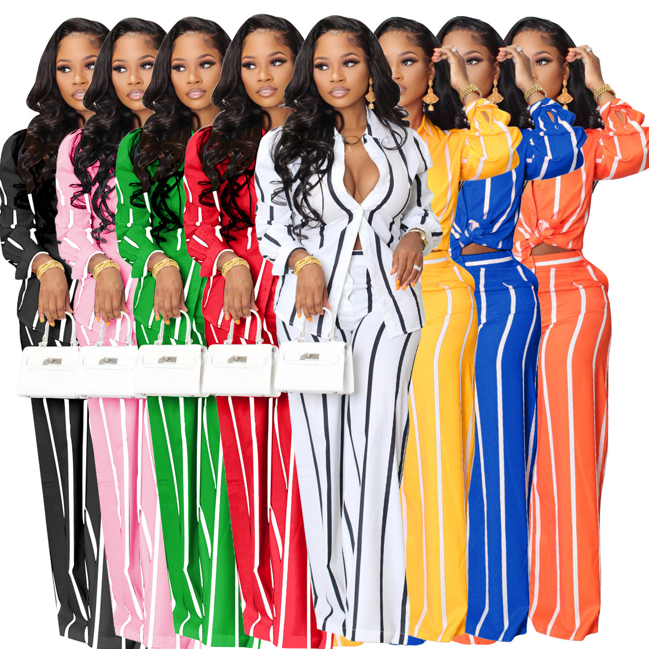 Printed Striped Shirt Outfit Two-Piece 2PC Set (CL11898)