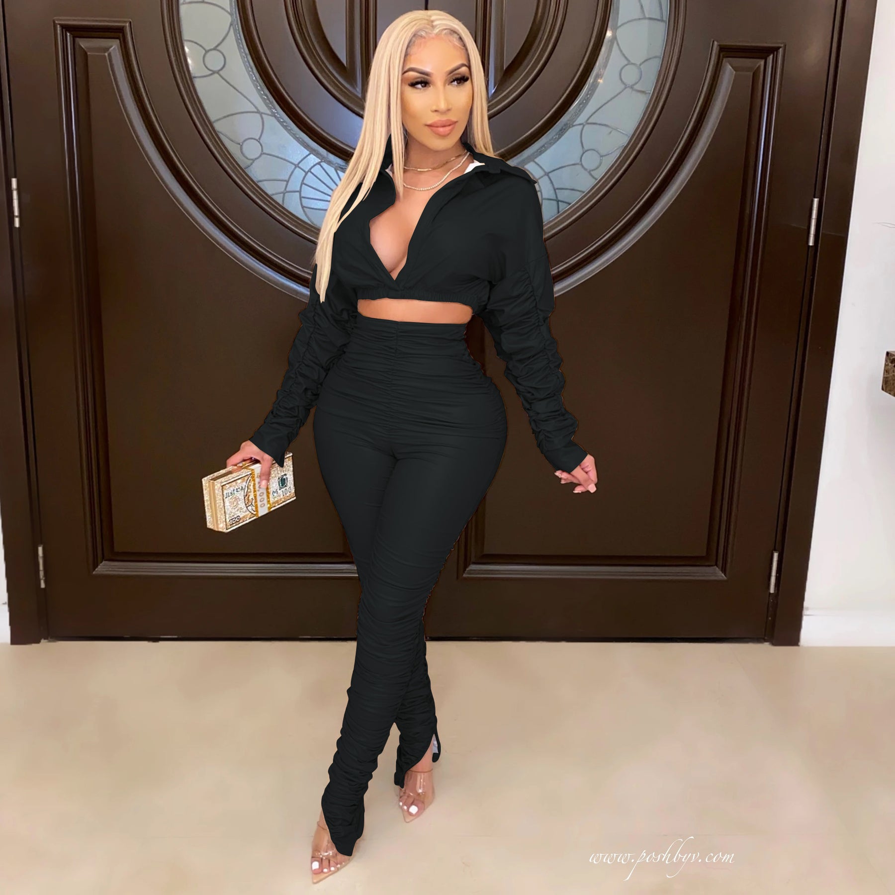 PU Leather Crinkled Elastic Two-piece Set (CL11049)