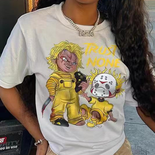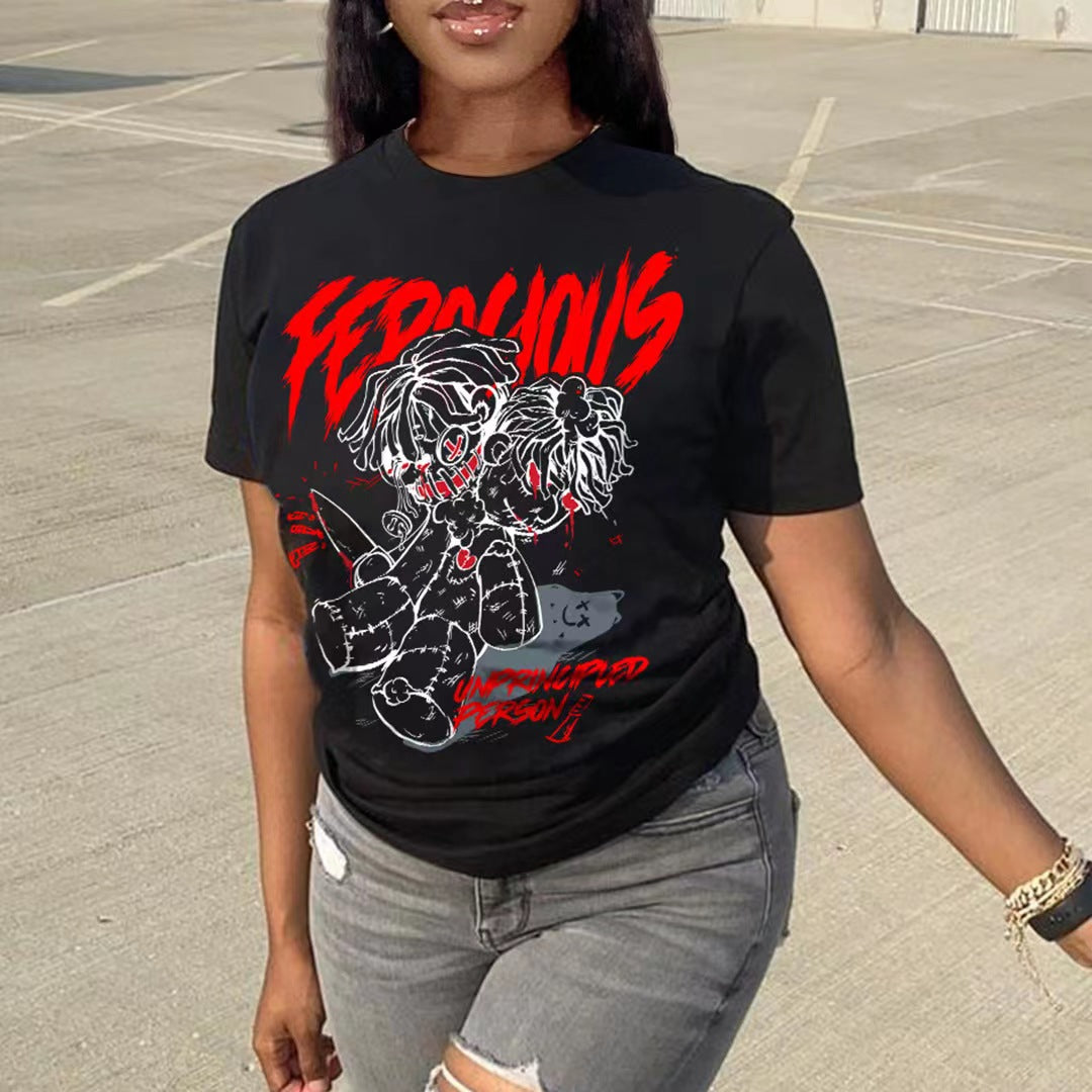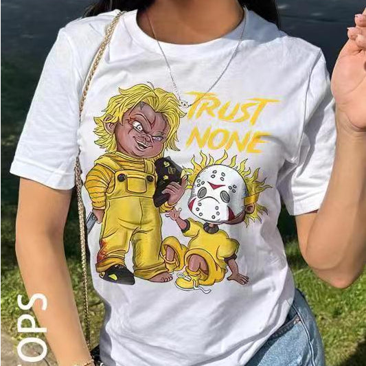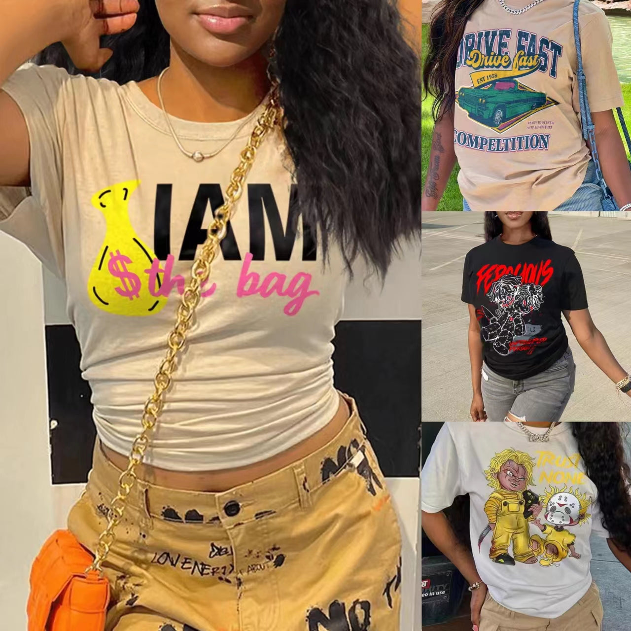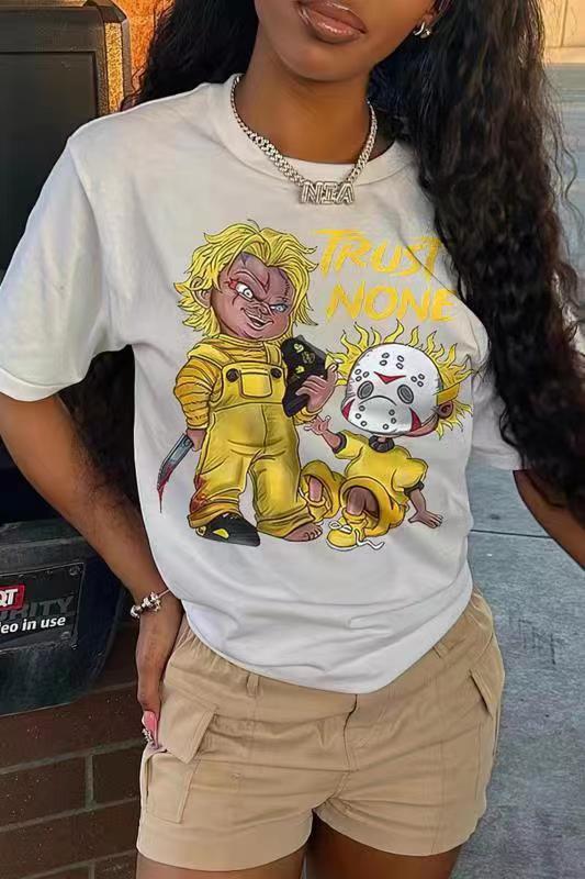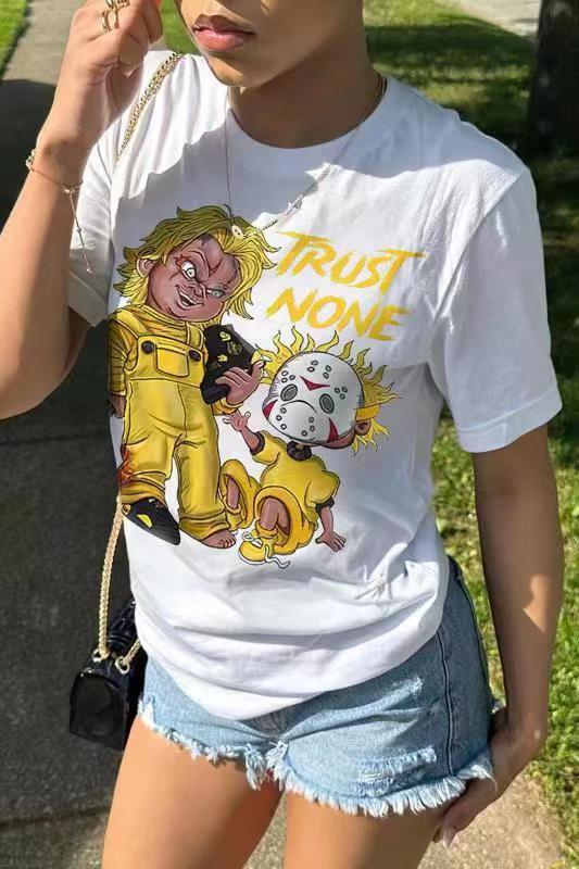 Round Neck Printed Short Sleeve T-shirt(CL11865)