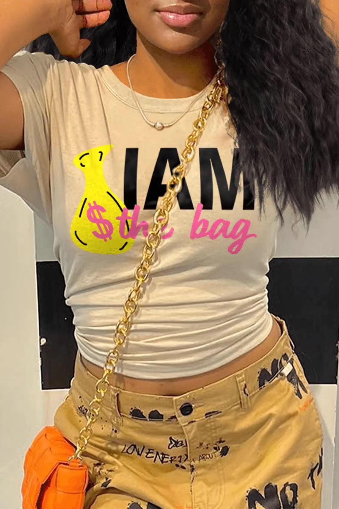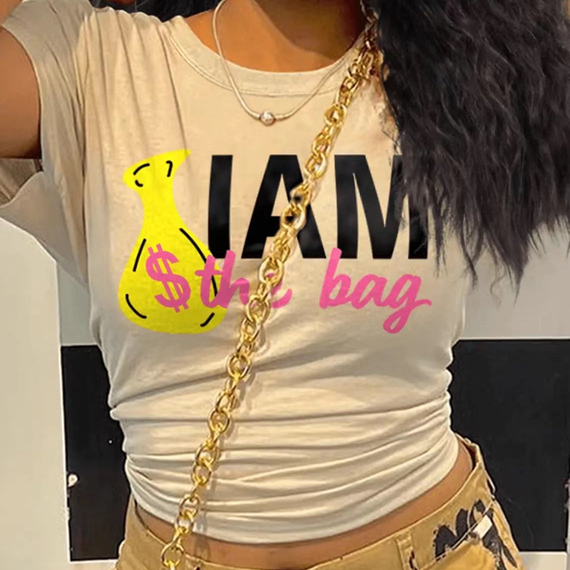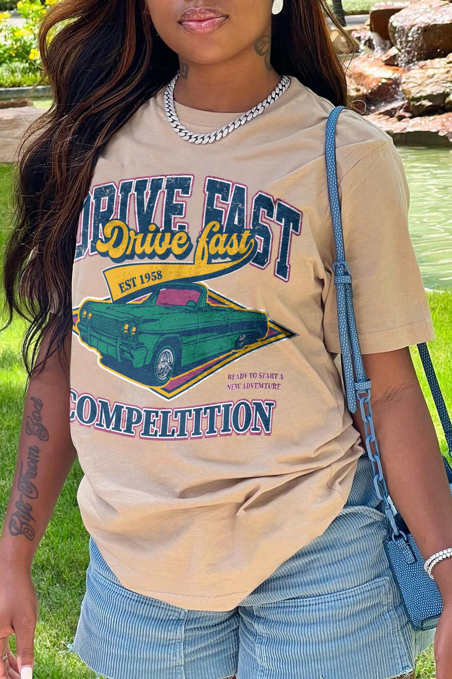 Round Neck Printed Short Sleeve T-shirt(CL11865)