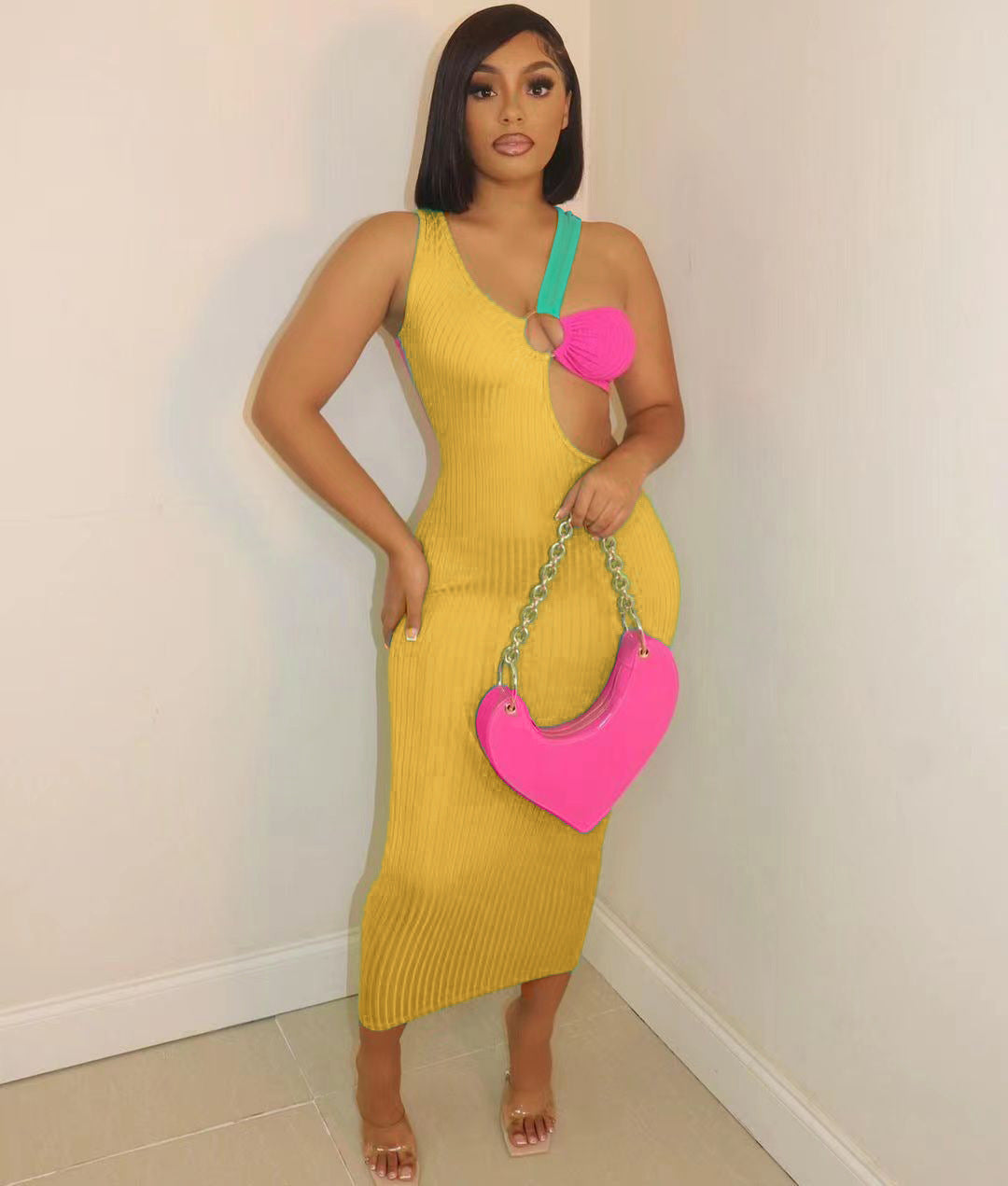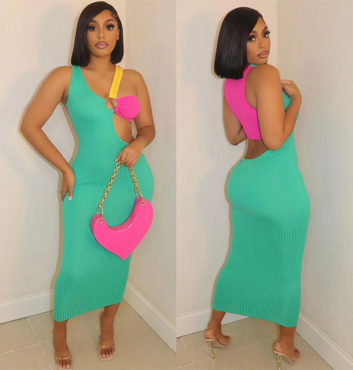 Sexy Women Clothing Steel Ring Multi-Color Mosaic Long Skirt (CL10227))