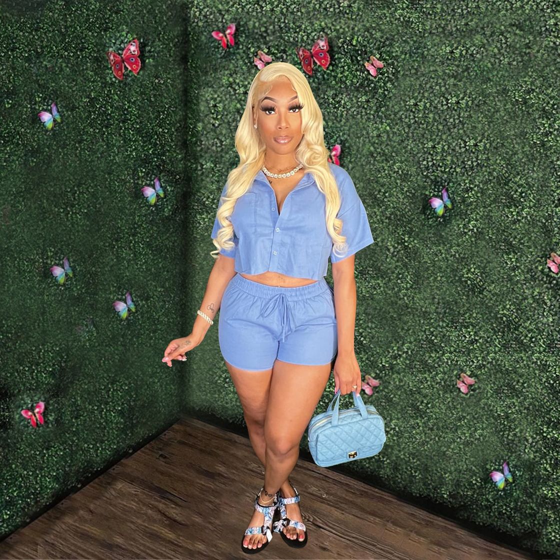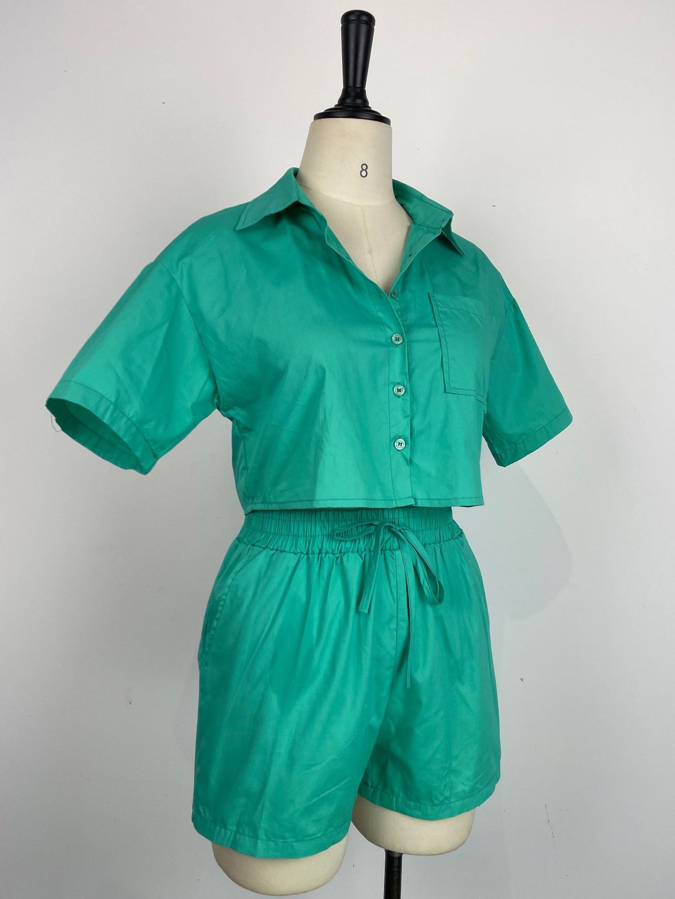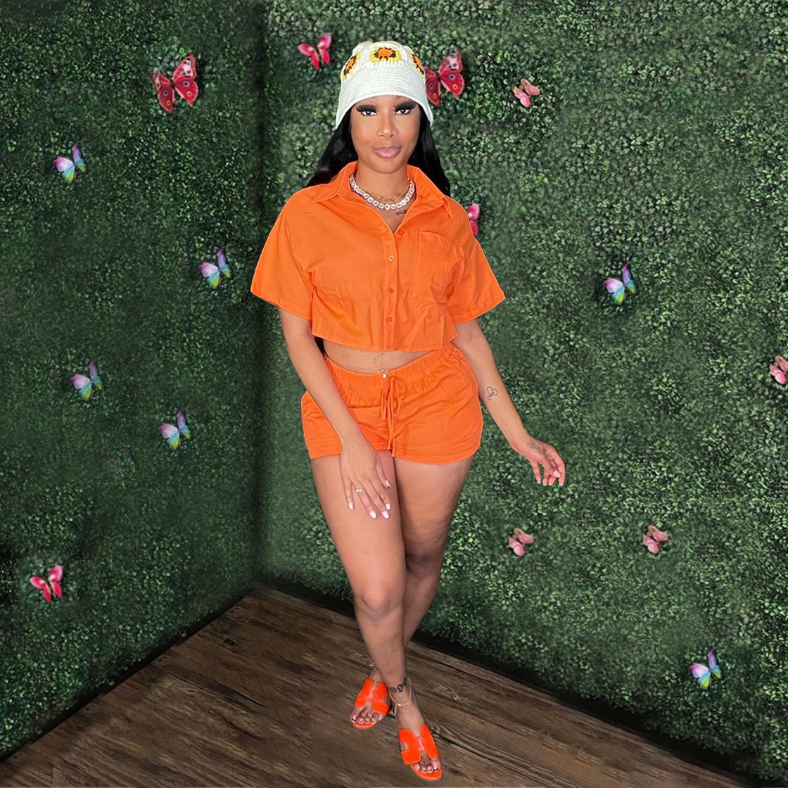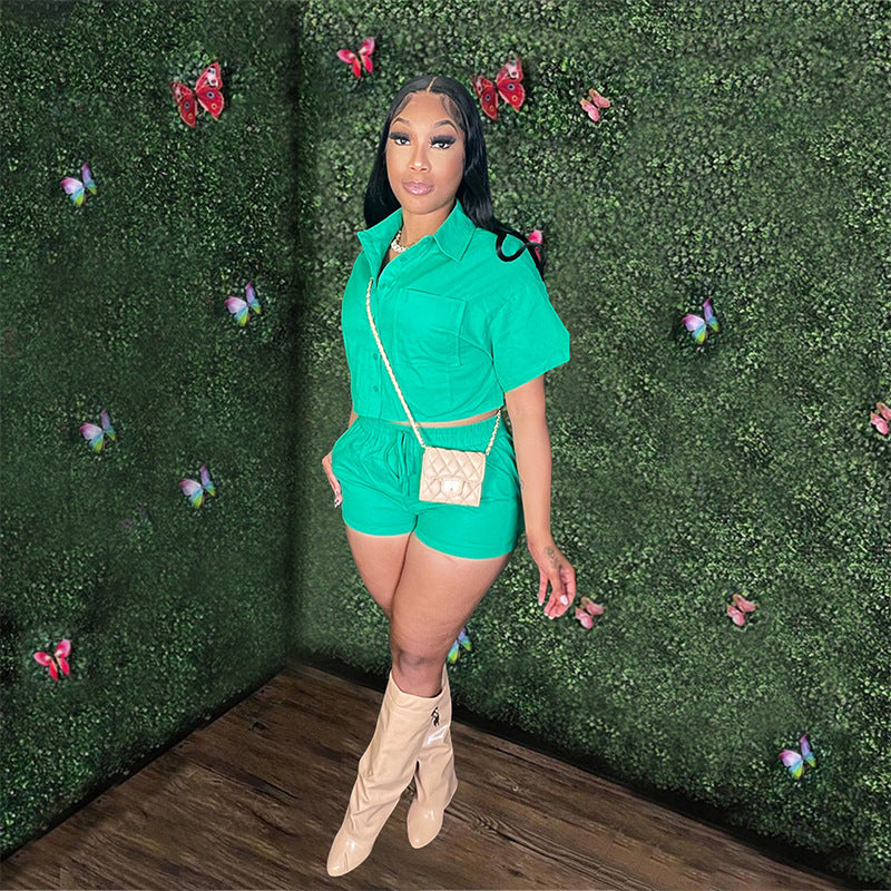Short Sleeved Shirt Rubber Pocket Shorts Two-piece Set (CL11725)