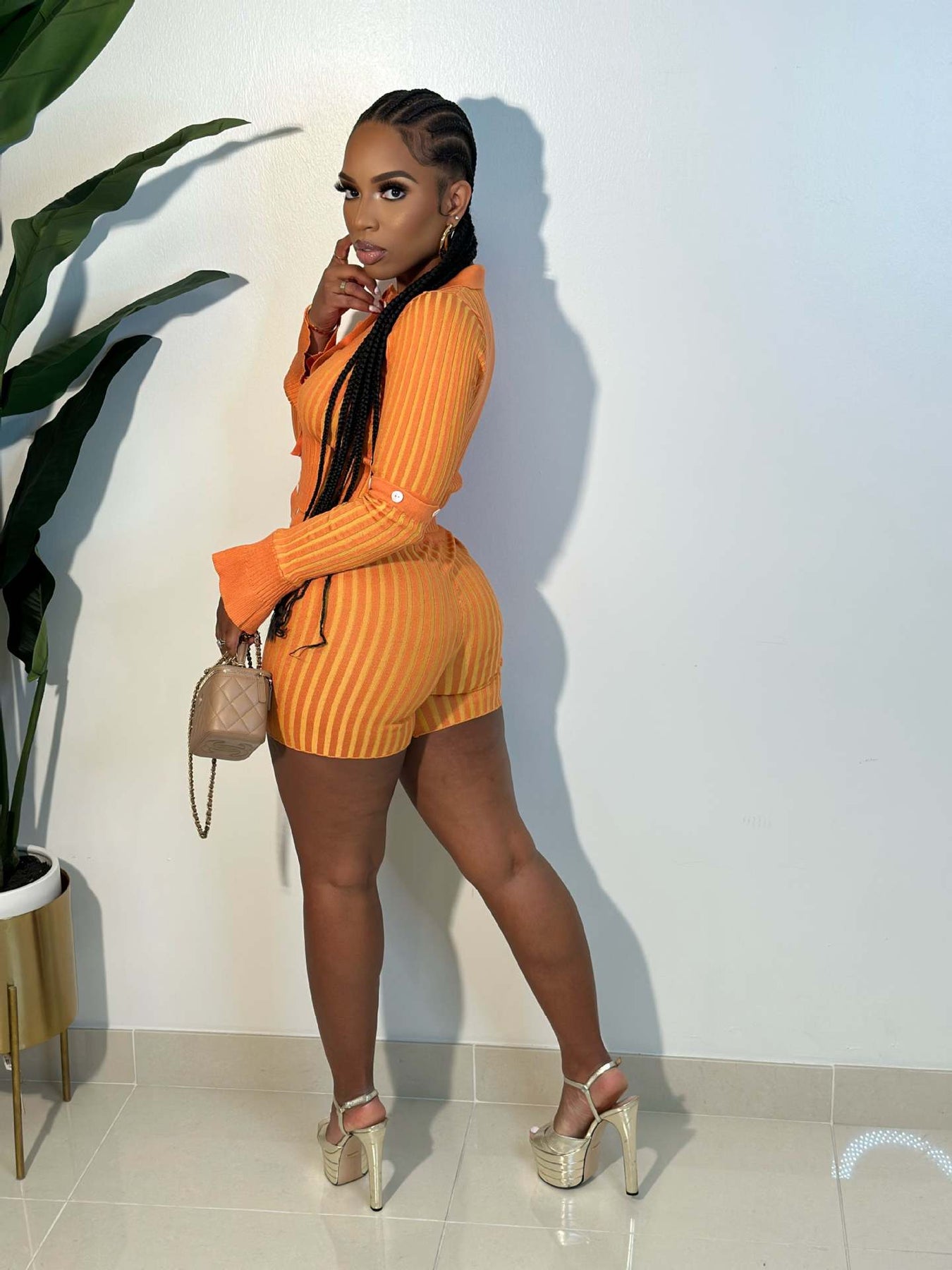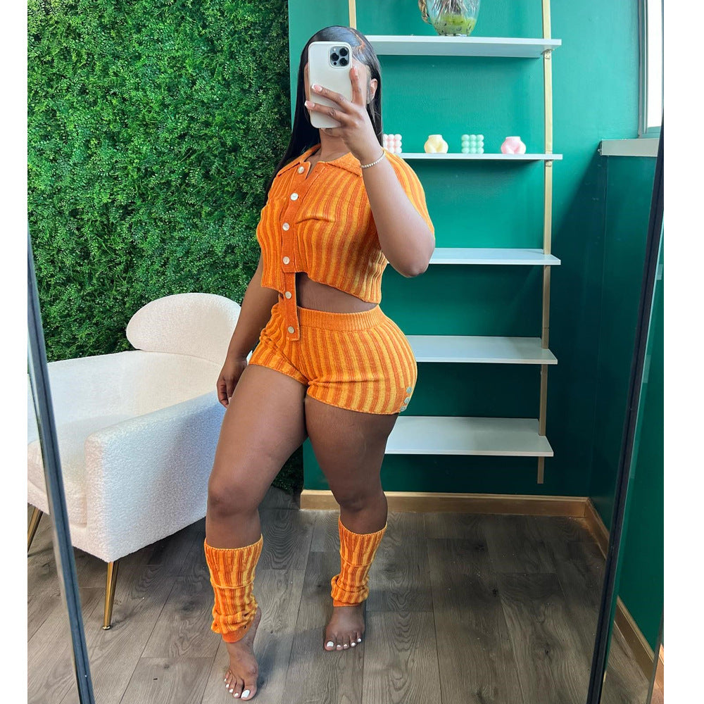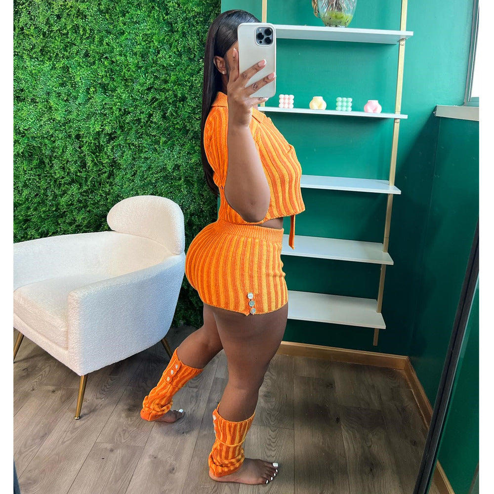 Single-Breasted Design Striped Wool Knitting Suit Two-Piece Set(CL11686)