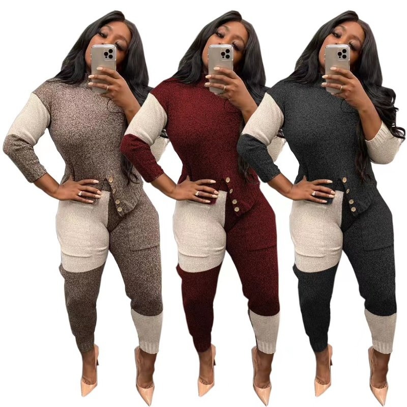 Wholesale casual color spliicng sweater set 2pcs(CL9606)