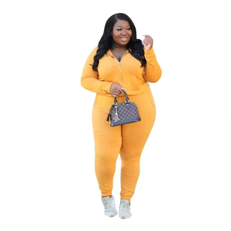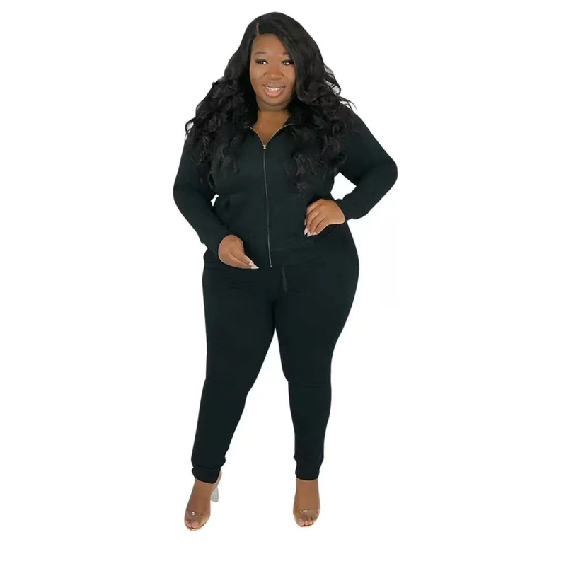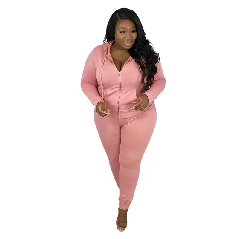 Wholesale fashion women's solid color large long sleeve leisure suit 2PC(CL9356)
