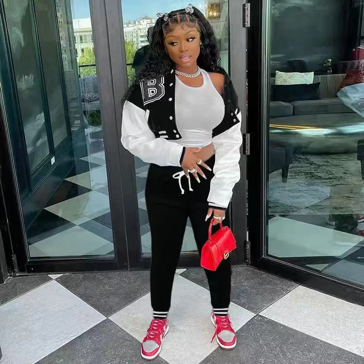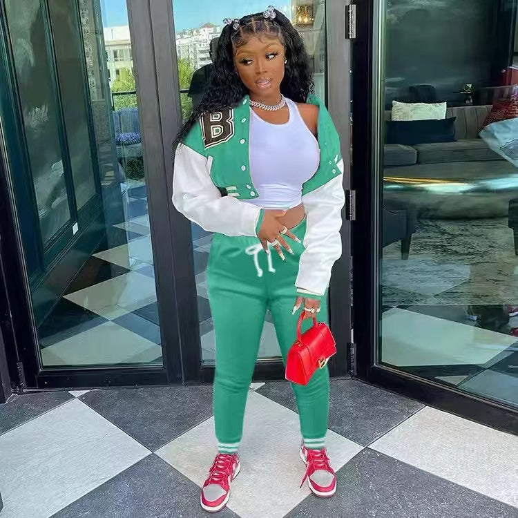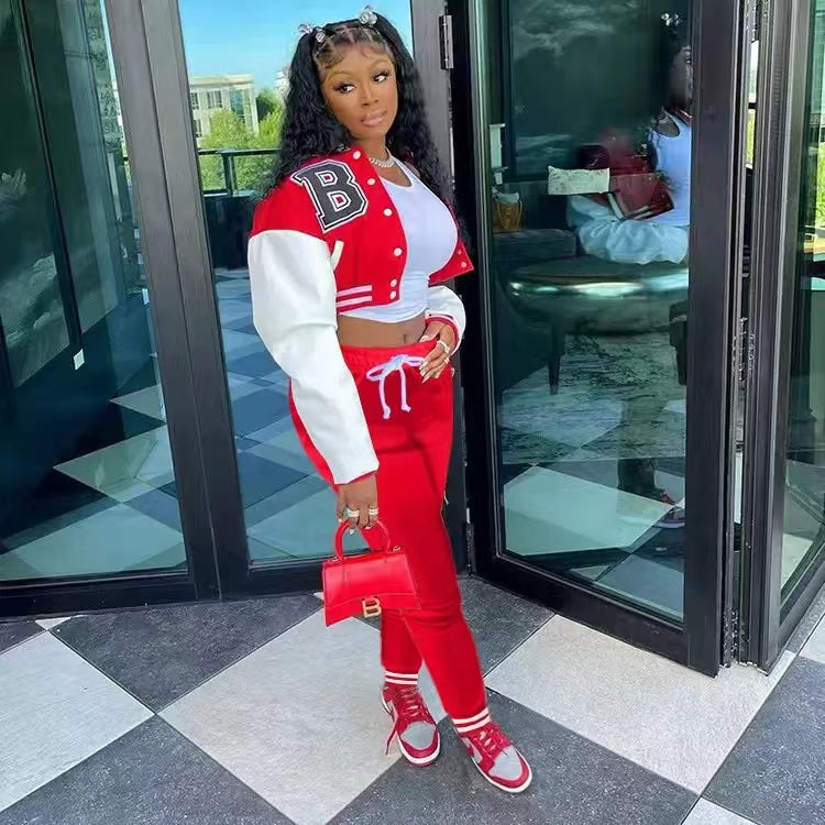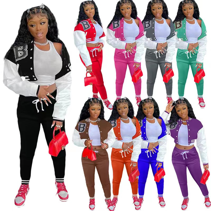 Wholesale single breasted letter baseball suit 2pcs set(CL9497)
