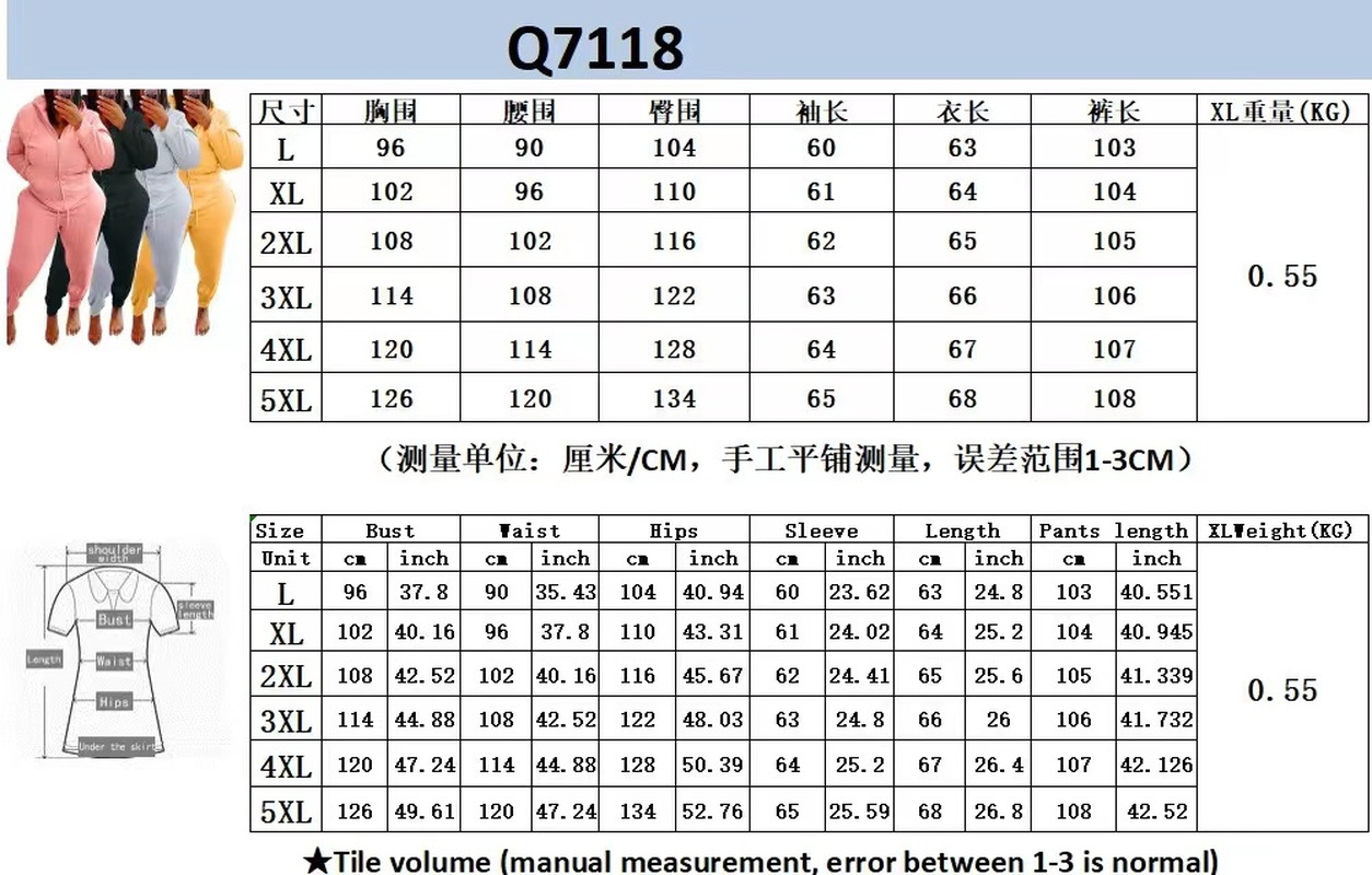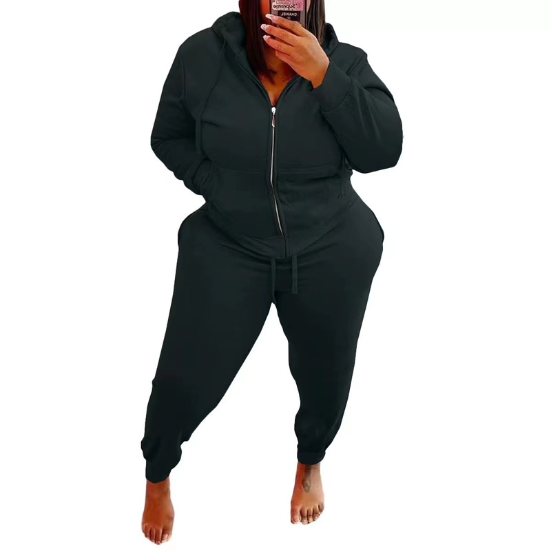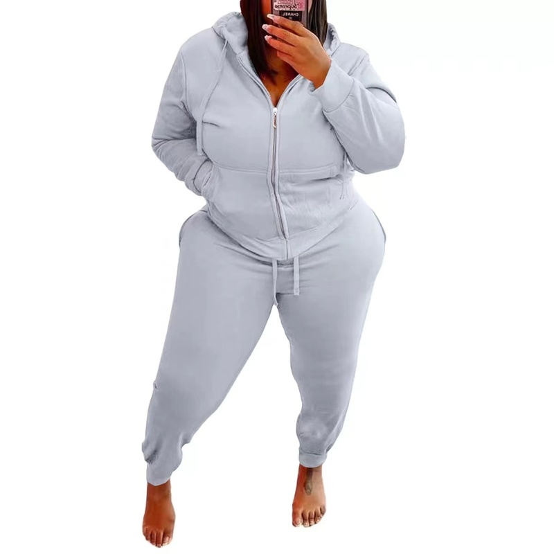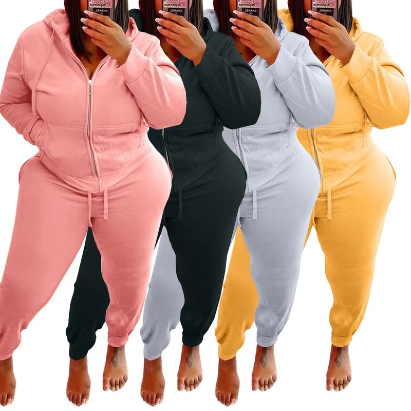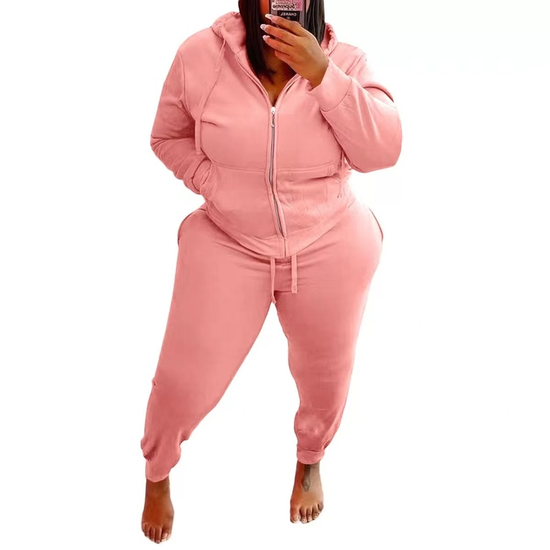 Wholesale solid color plus size long sleeve leisure suit 2pcs(CL9646)