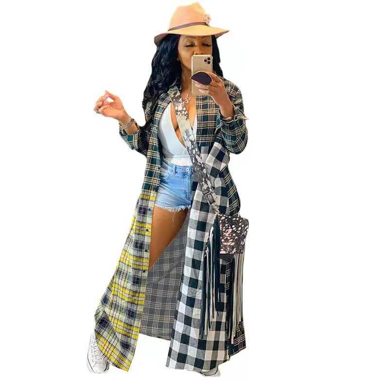 Process: SplicingSize chart(in) Size Bust Length Shoulder Sleeve Waist Hips S 37.00 59.80 16.54 22.80 33.10 39.4 M 38.60 60.20 16.93 23.20 34.60 40.9 L 40.20 60.60 17.32 23.60 36.20 42.5 XL 41.70 61.00 17.72 24.00 37.80 44.1 2XL 43.30 61.40 18.11 24.40 39.40 45.7 3XL 44.90 61.80 18.50 24.80 40.90 47.2 Due to different measurement methods, the size data may have an error of 1-3 cm.