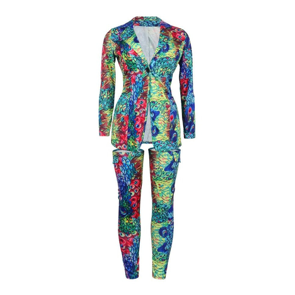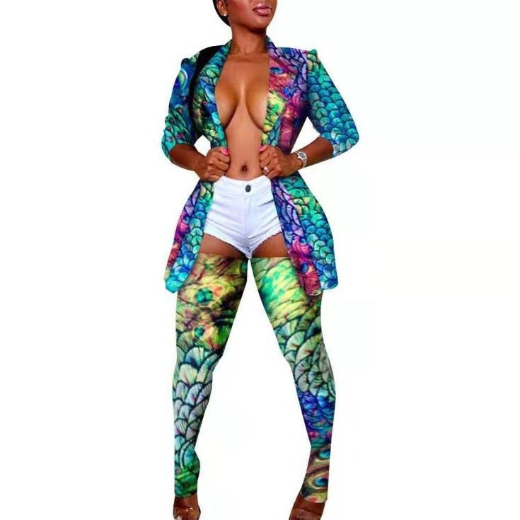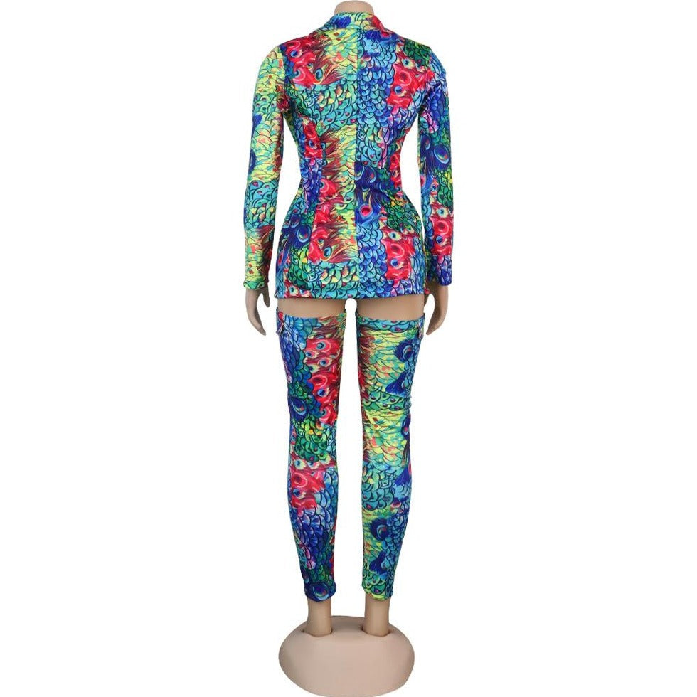 Wholesale women's lapel jacket with leg socks nightclub suit 2PCS(CL8465)