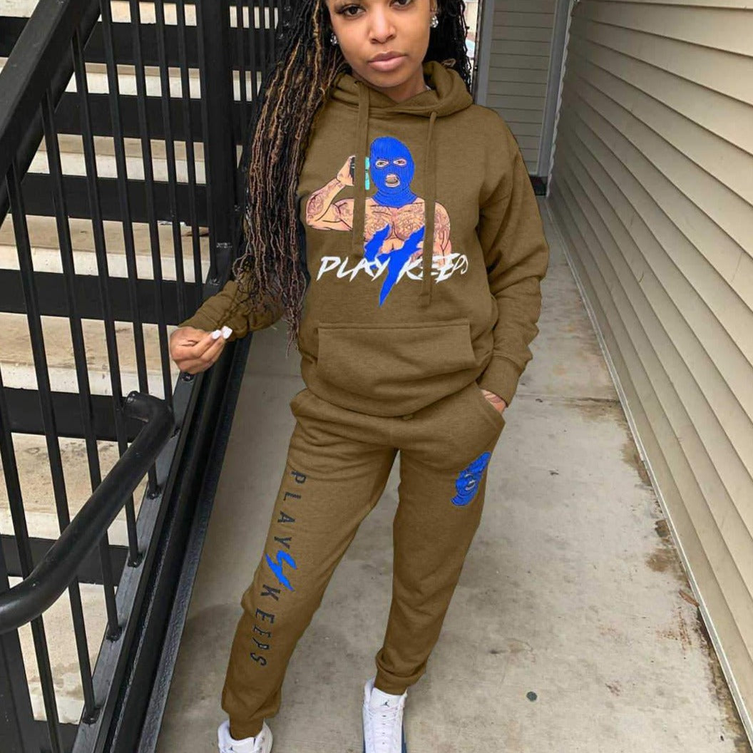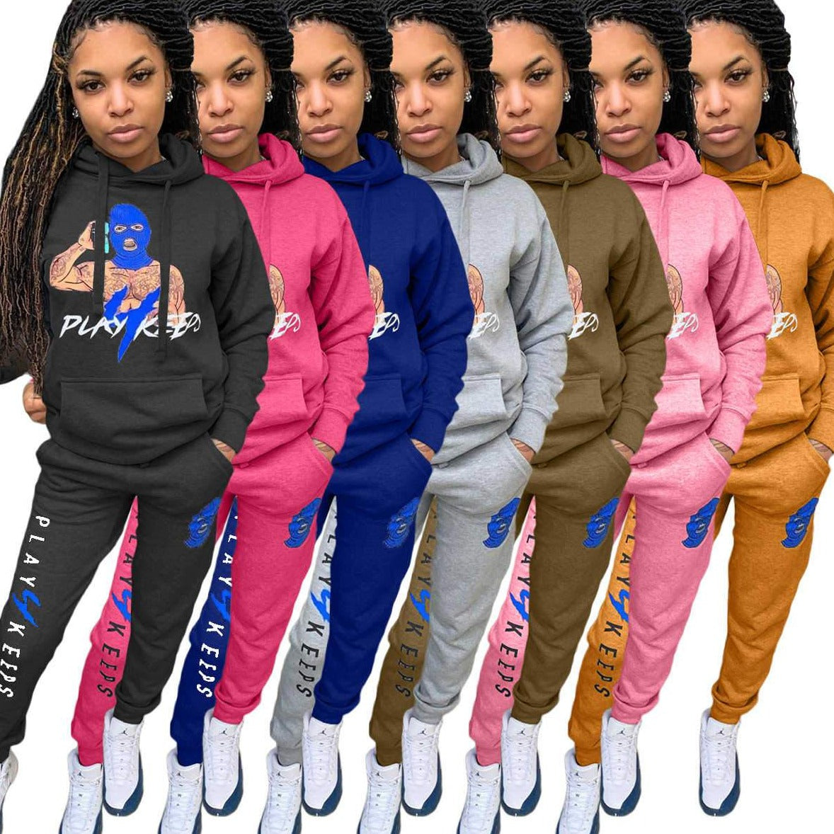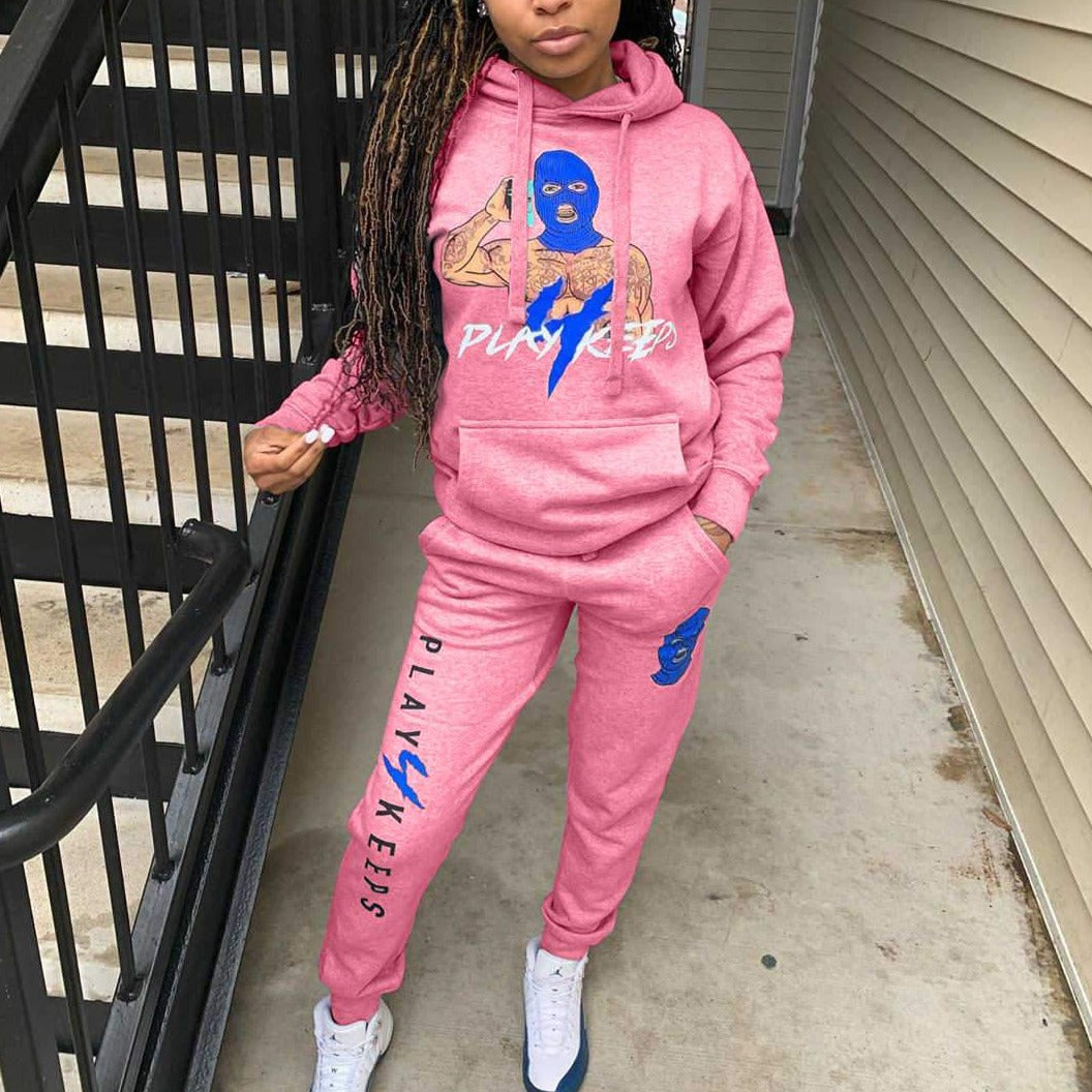 Wholesale women's hoodie lovely print casual print suits 2pcs(CL8301)