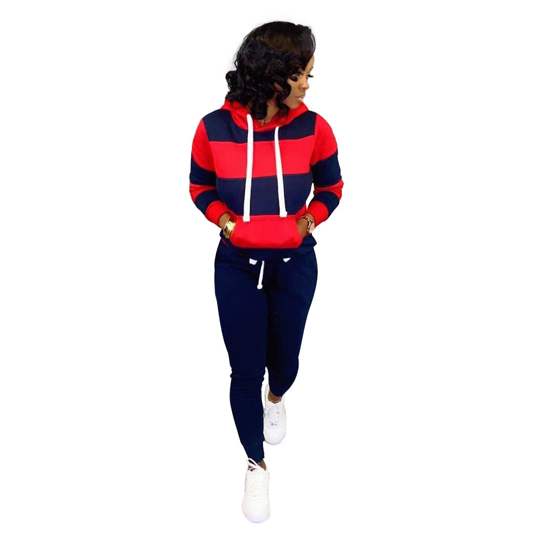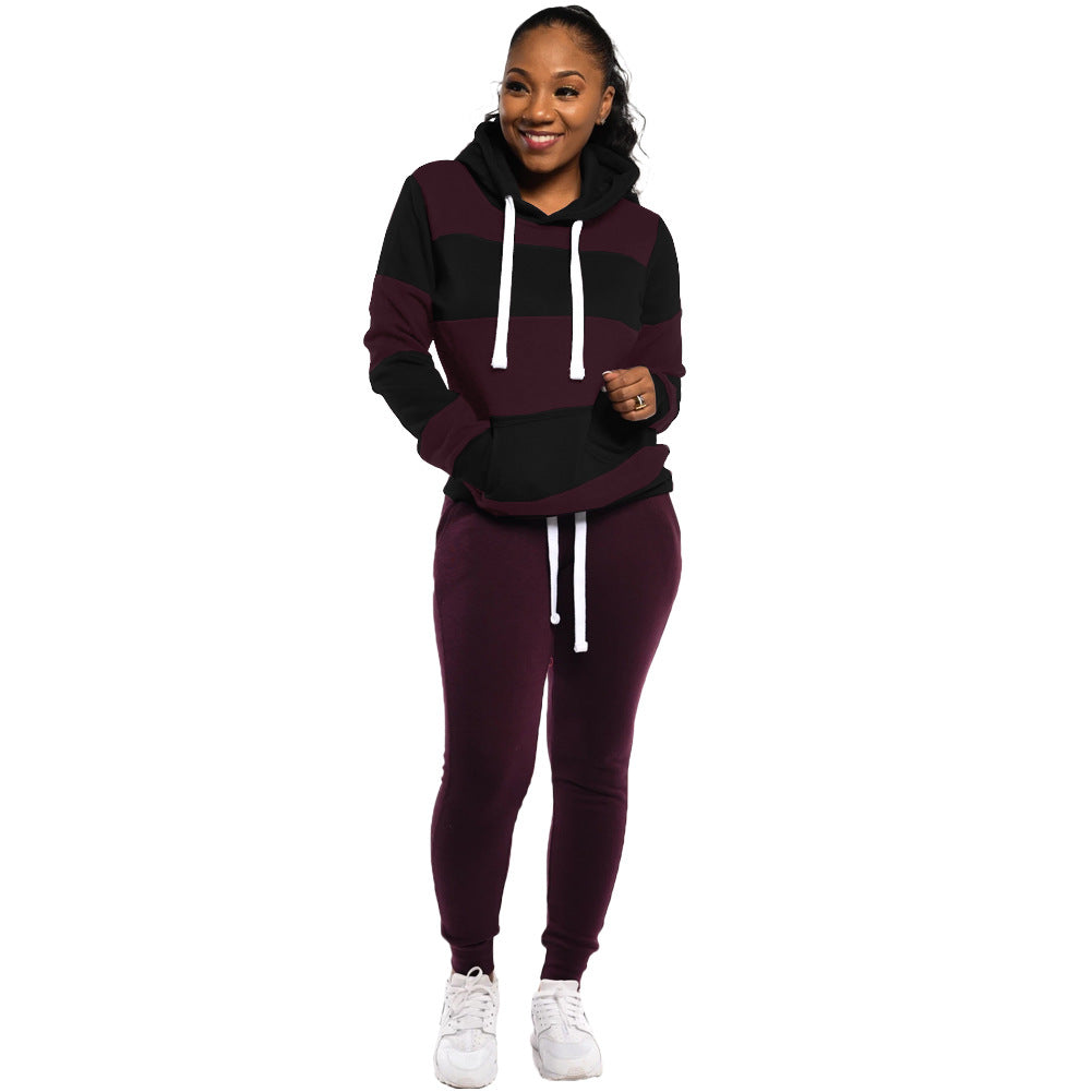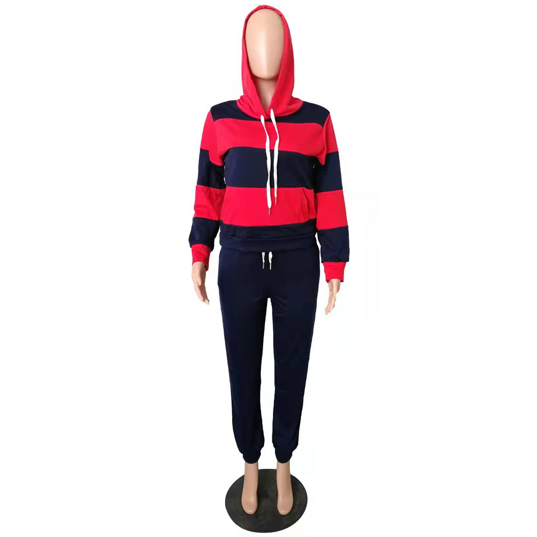 Wholesale women's patchwork hoodie and trouser suits 2pcs(CL8165)
