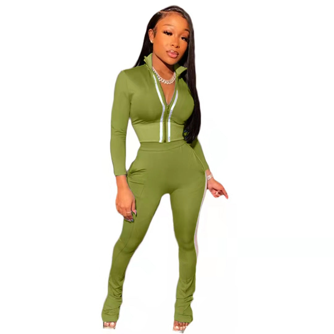 Wholesale women's plain white trim suits 2PCS(CL8142)