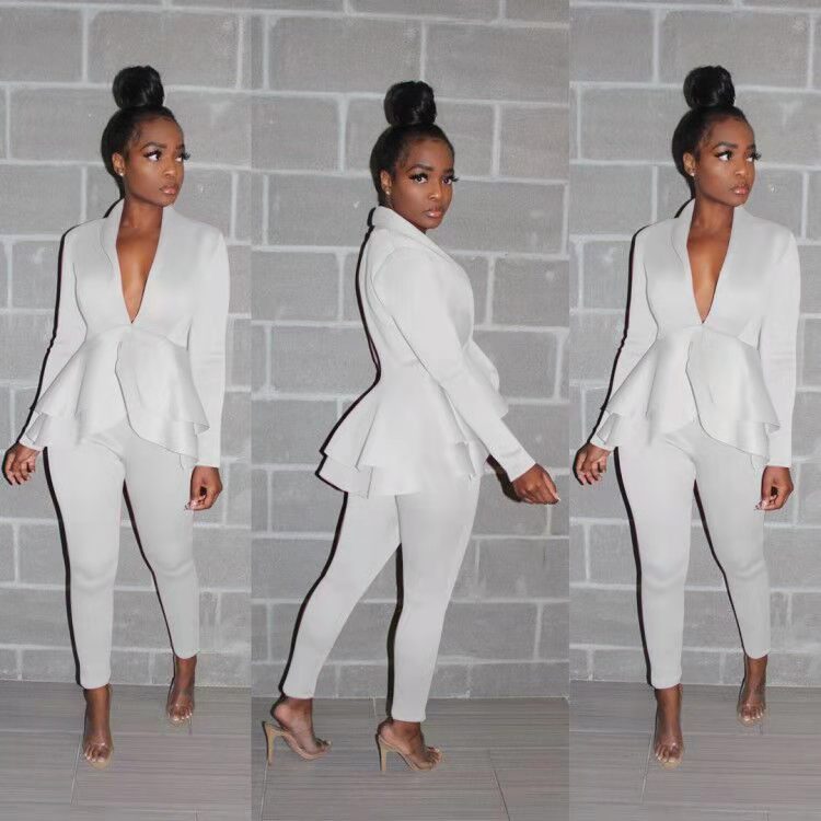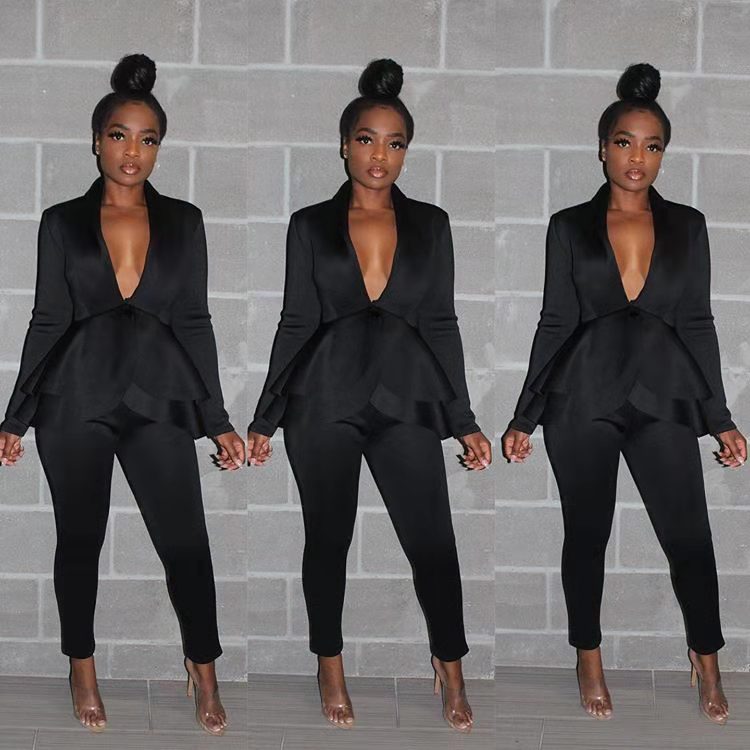 Wholesale women's sexy solid color V-neck suit 2PC(CL9224)