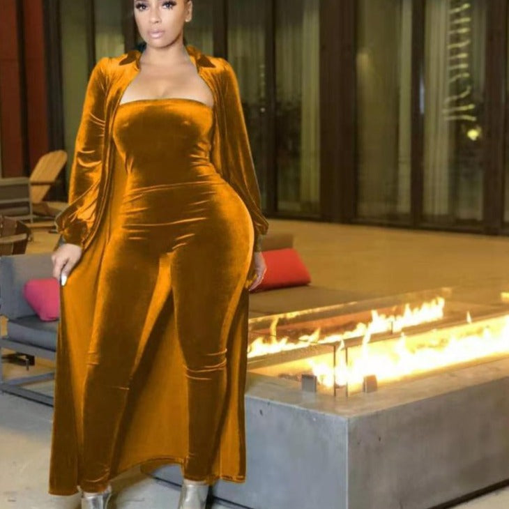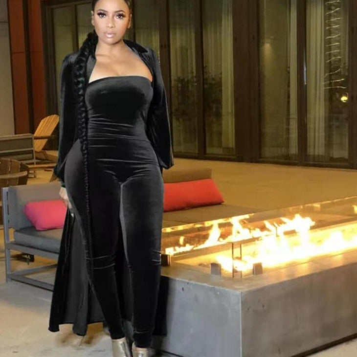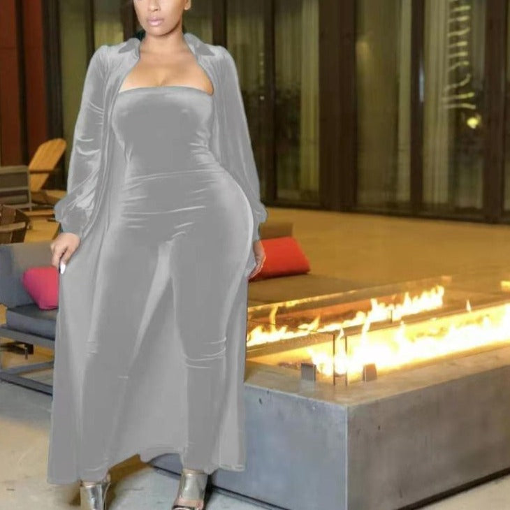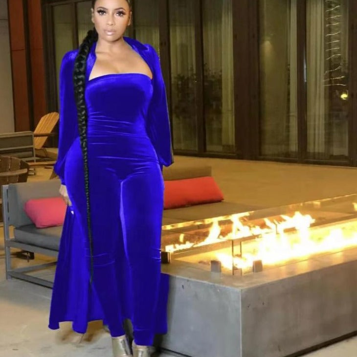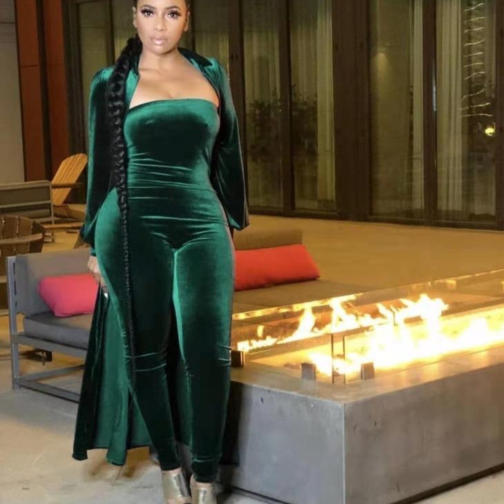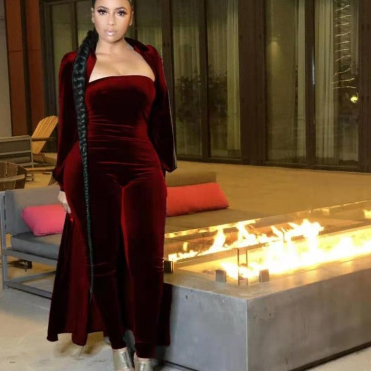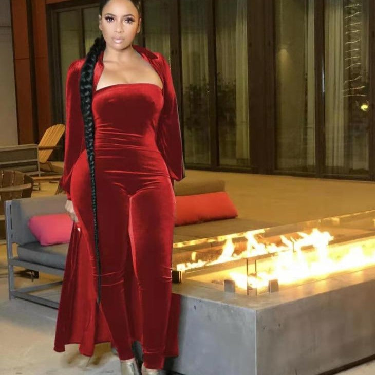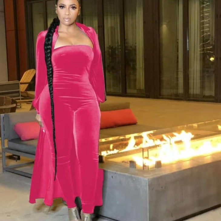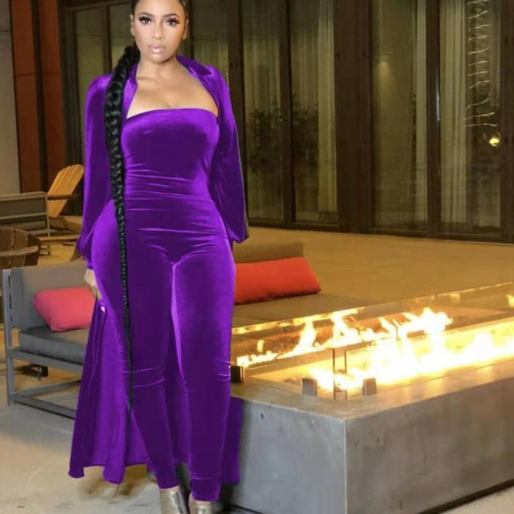 Wholesale women's velvet sexy tube top jumpsuit 2PCS(CL8525 )