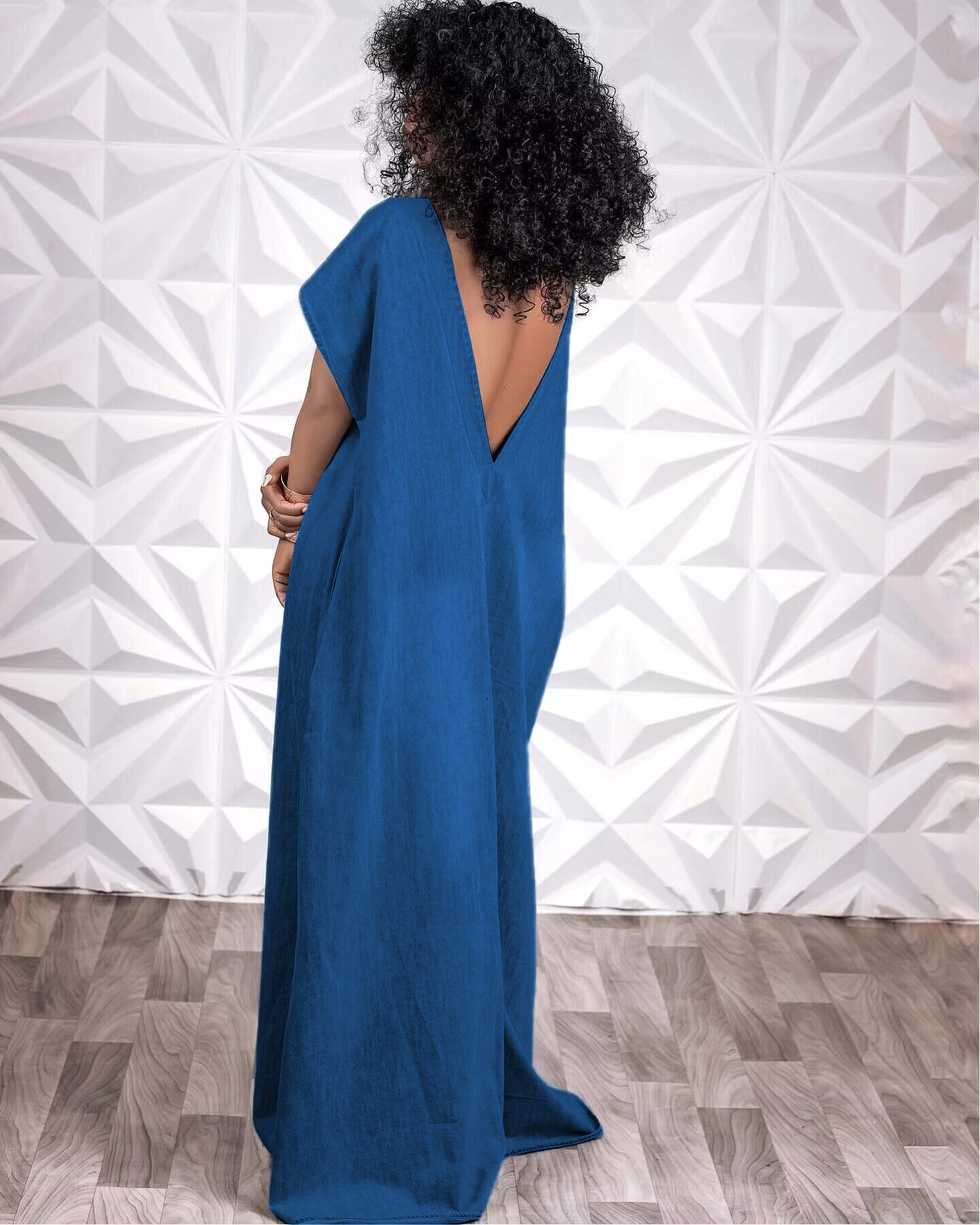 Denim Loose Deep V Open Back Dress (CL11496)