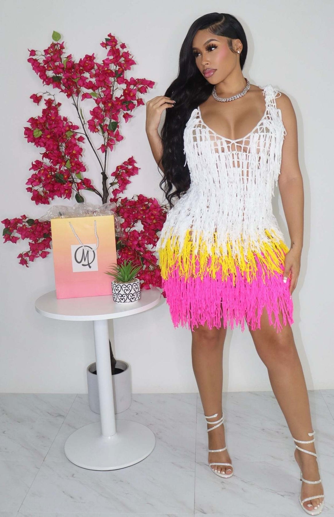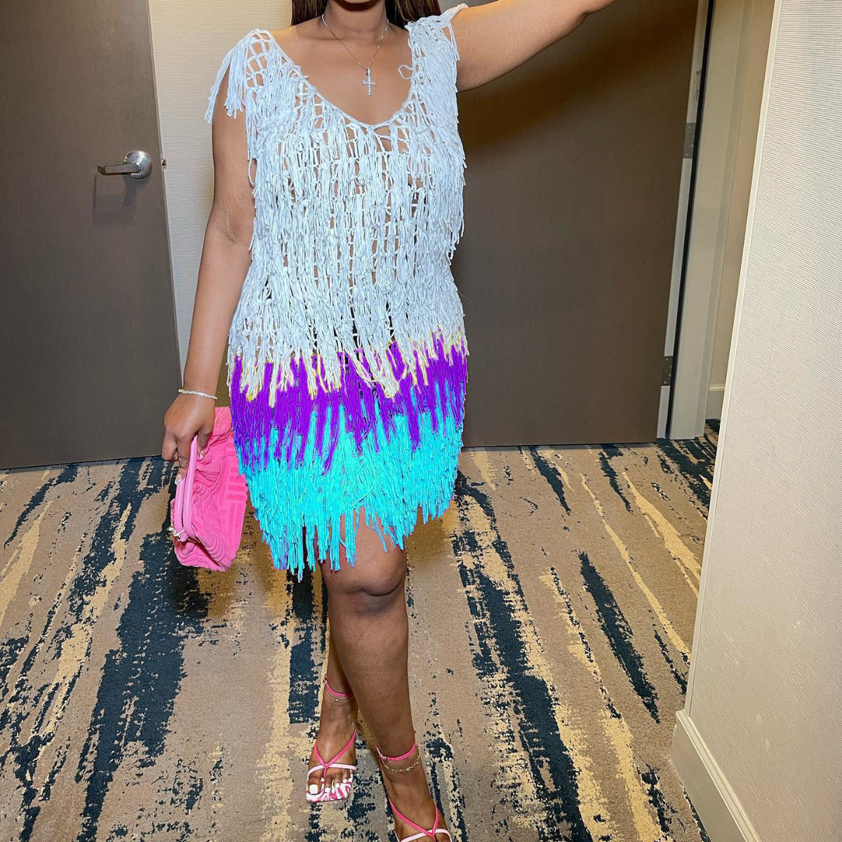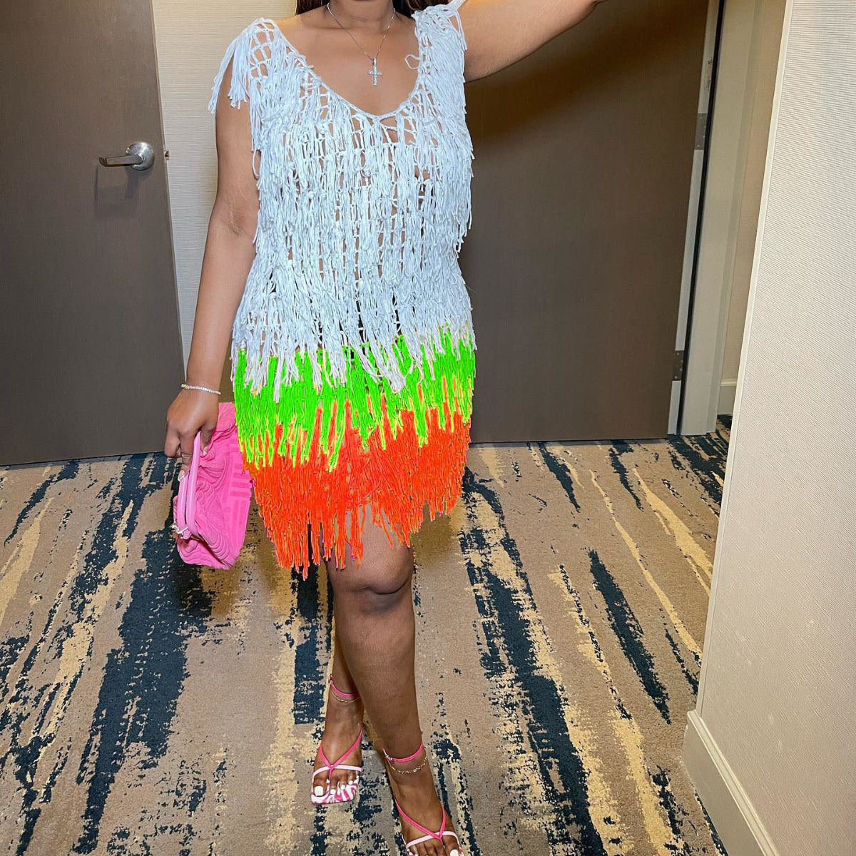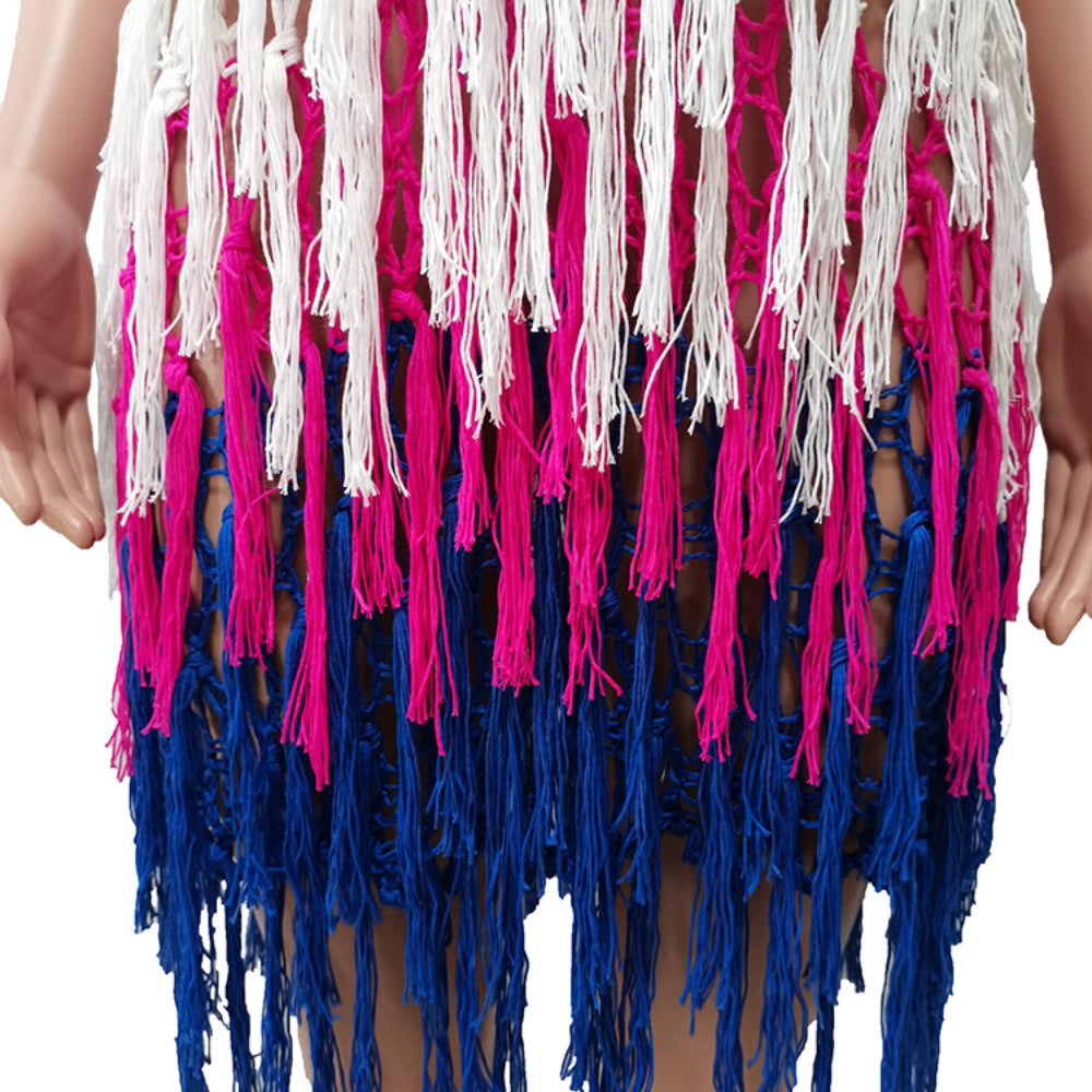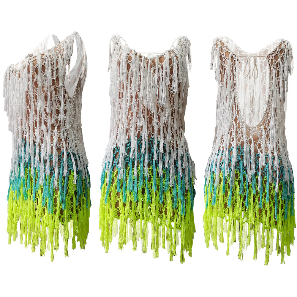 Knitted Hand Crochet Mesh Tassel Beach Sun Protection Dress (Cl10503)