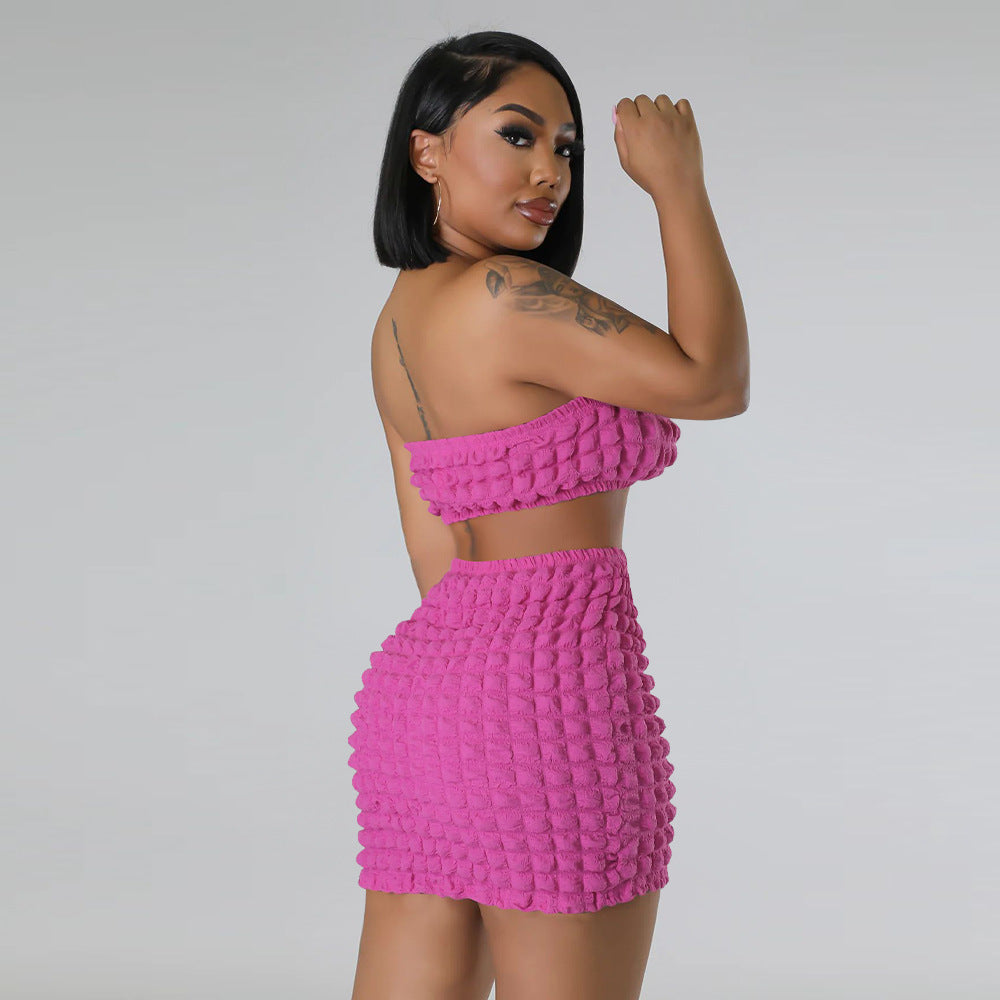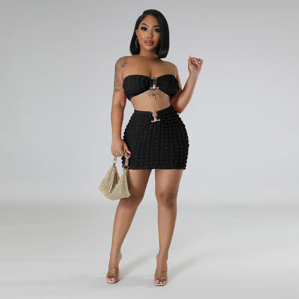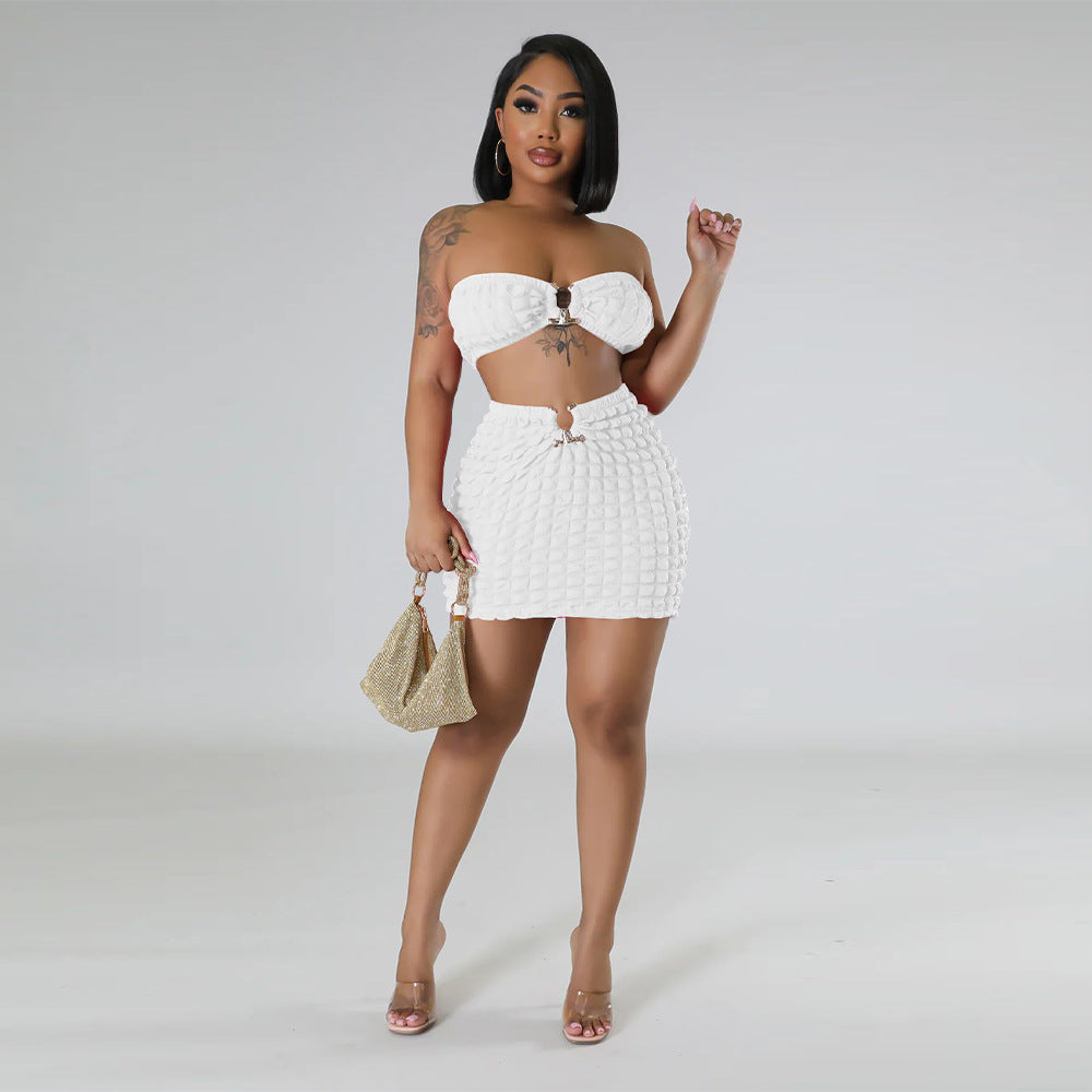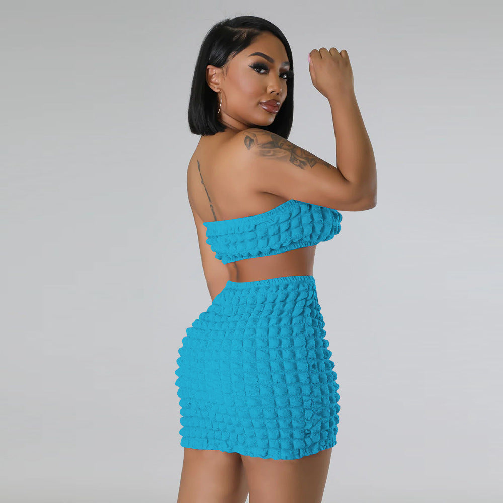 Popcorn Navel Wrapped Chest Bubble Skirt Suit(CL11604)