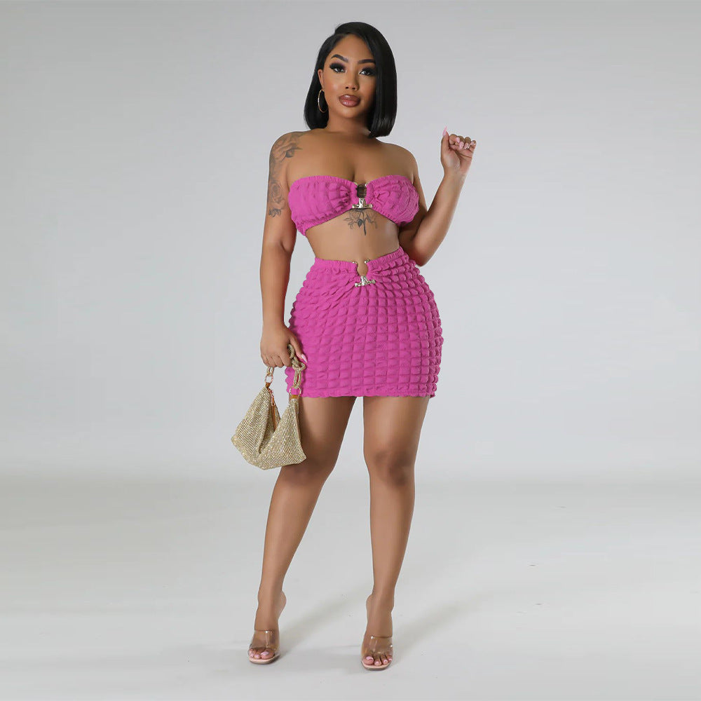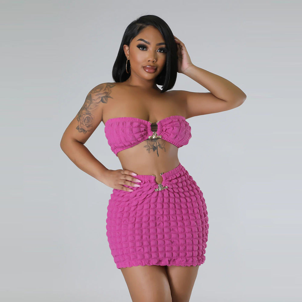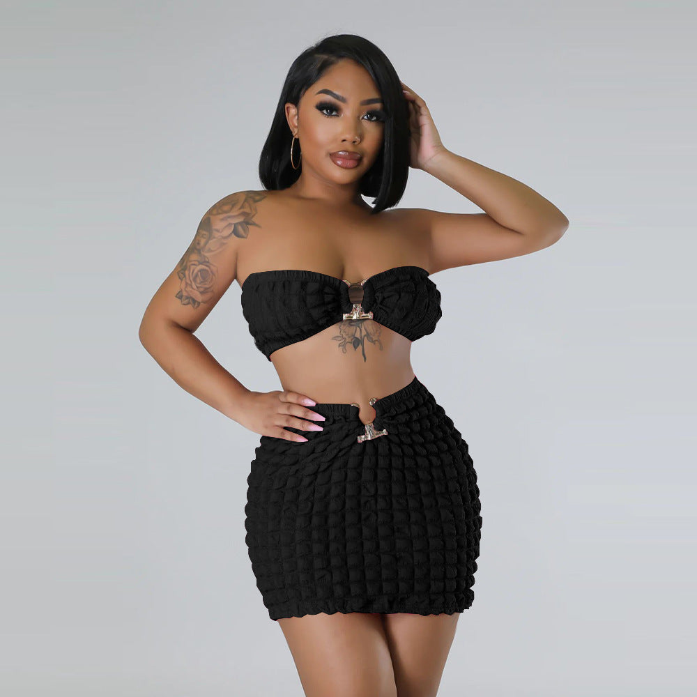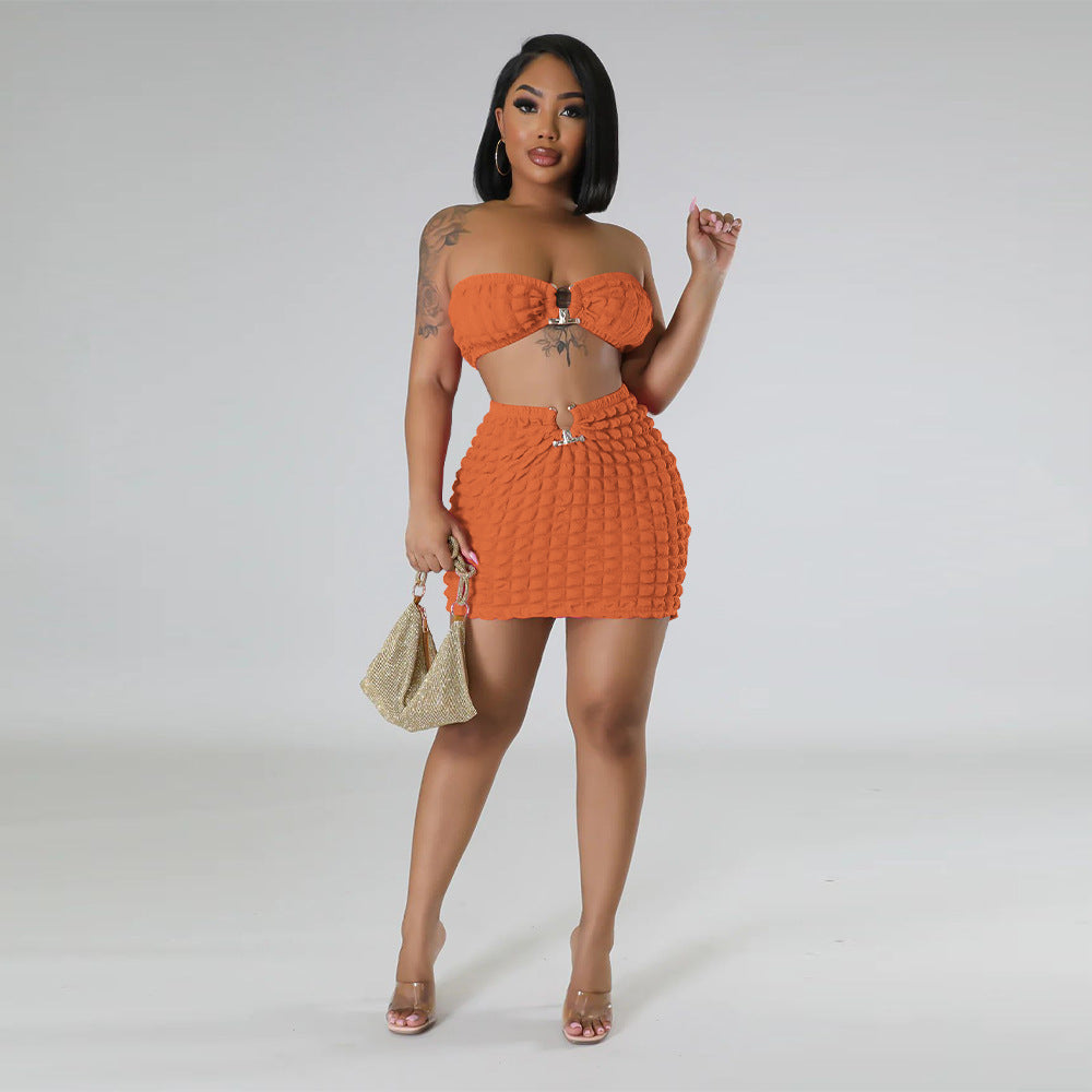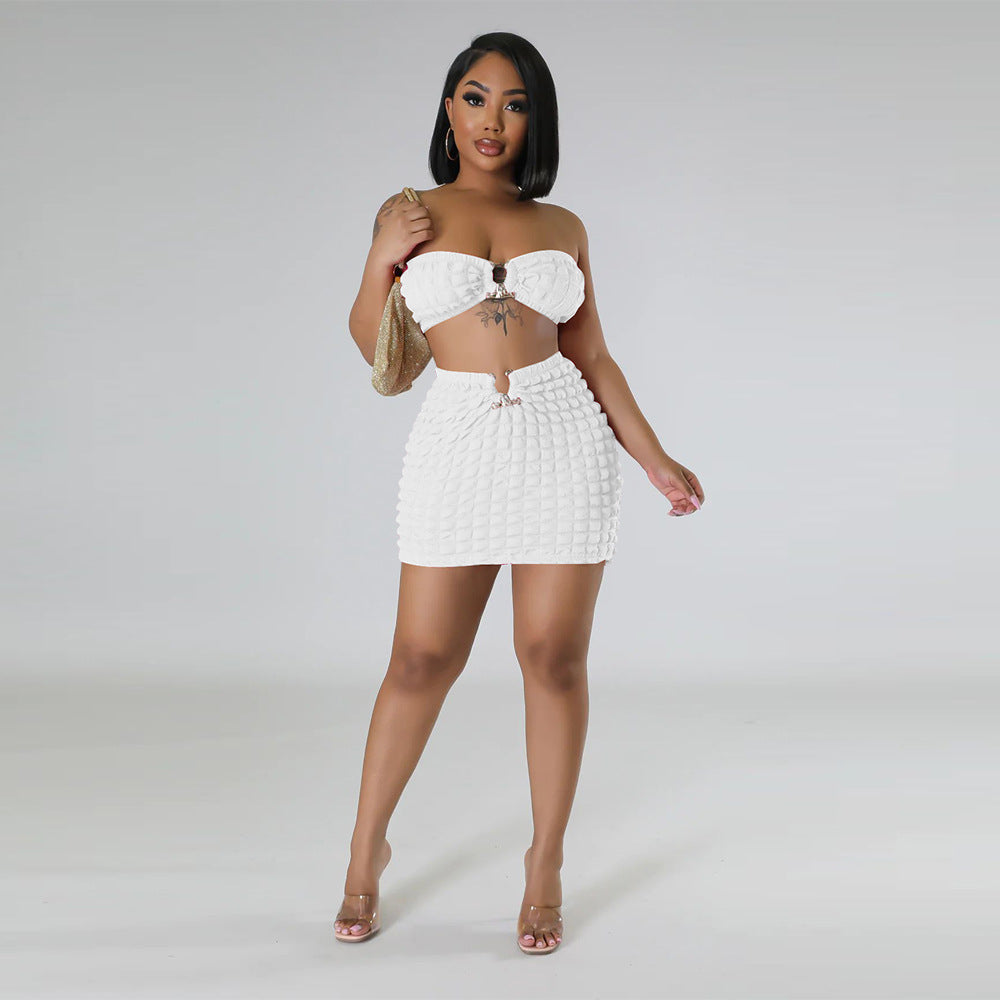 Popcorn Navel Wrapped Chest Bubble Skirt Suit(CL11604)