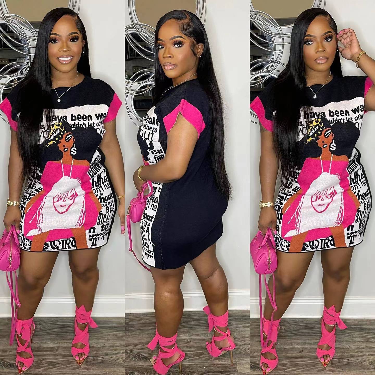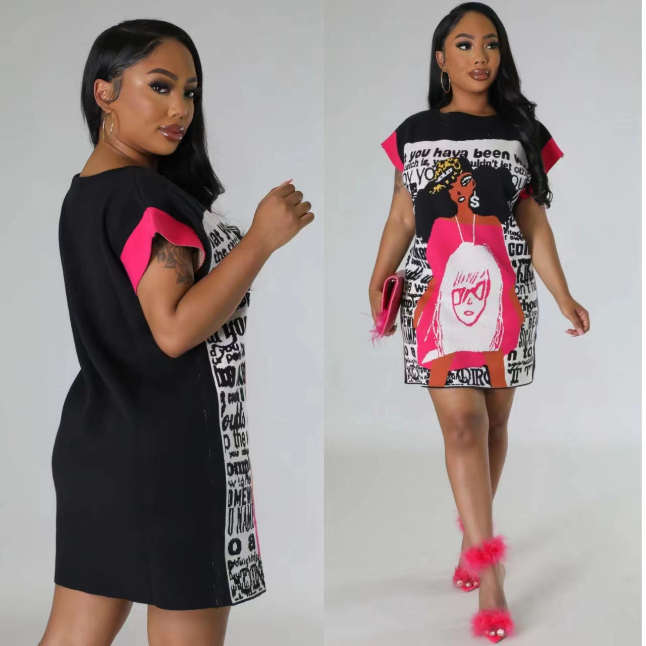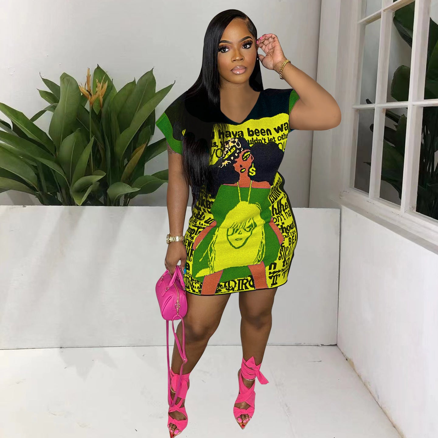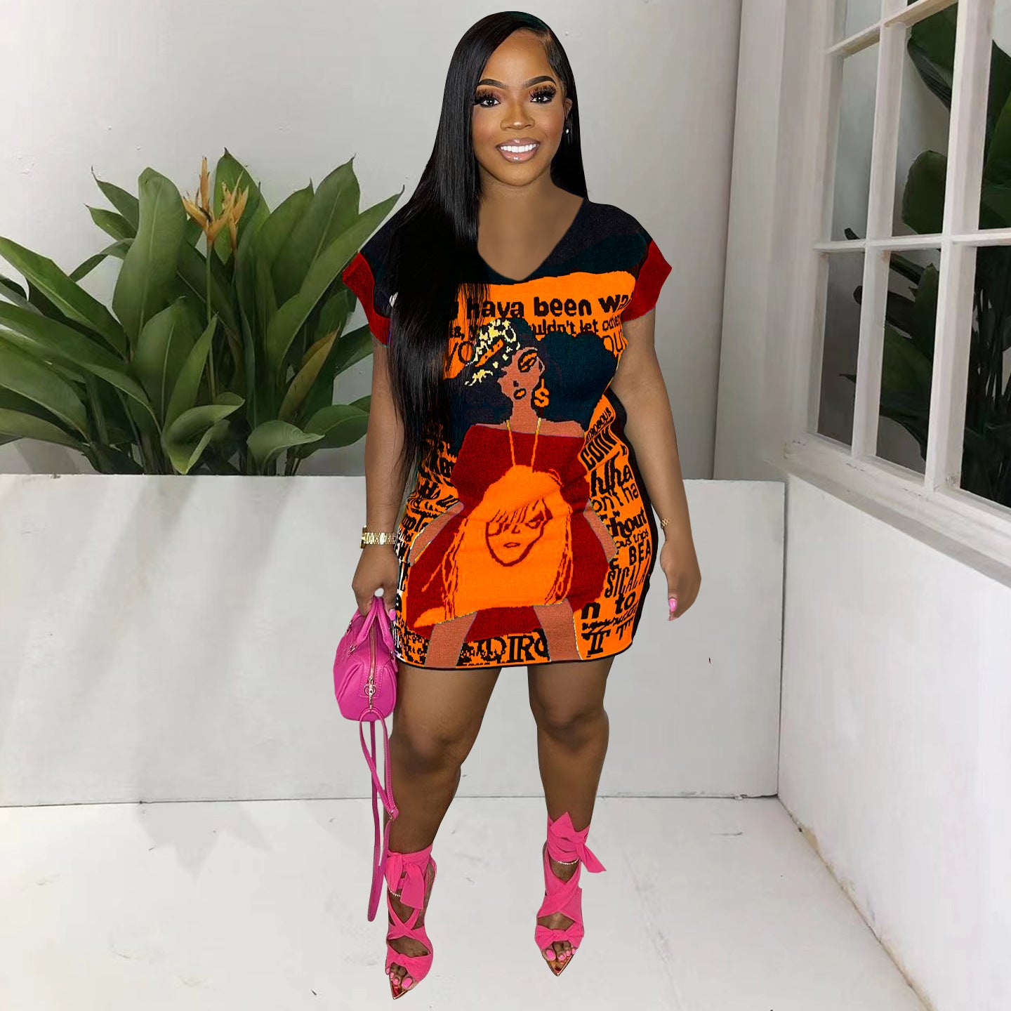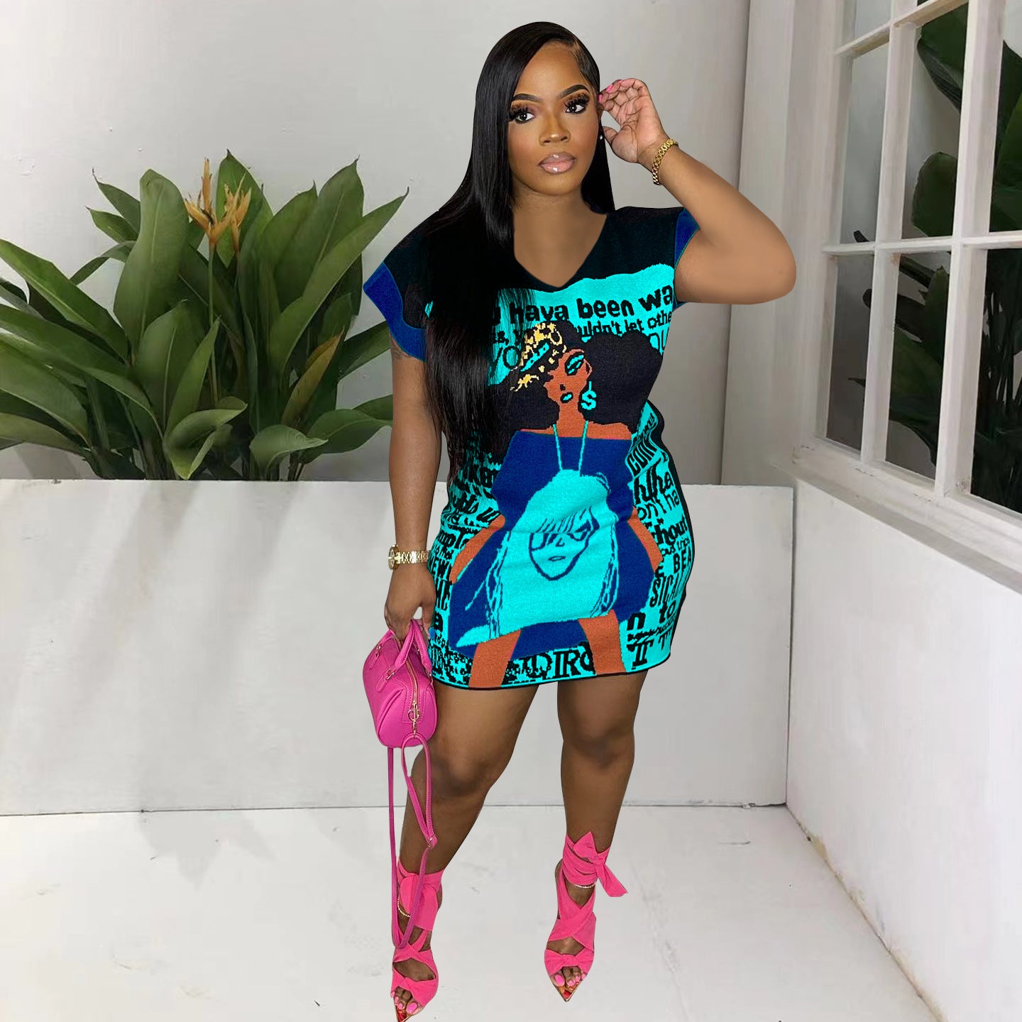 Printed Cute Cartoon V-neck Dress(CL11700)