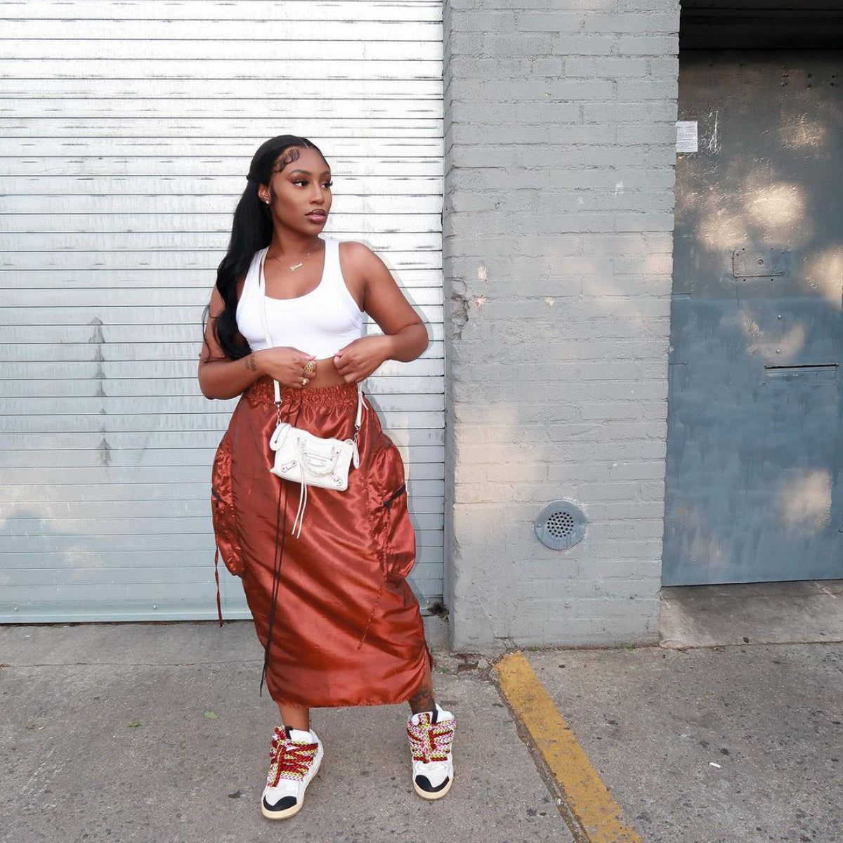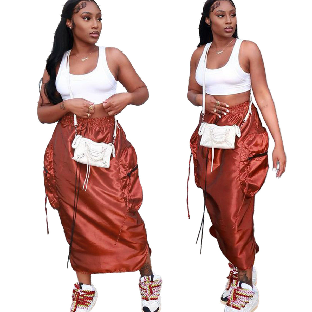 Reflective Elastic Waist Large Pocket One-Step Skirt (CL10706)