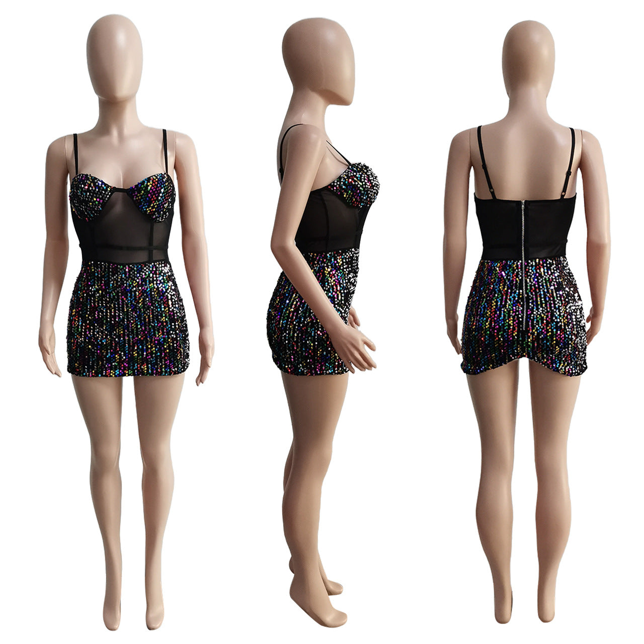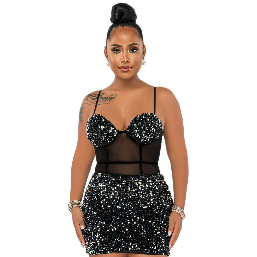 Sequined See-through Sexy Suspenders Dress (CL9839)