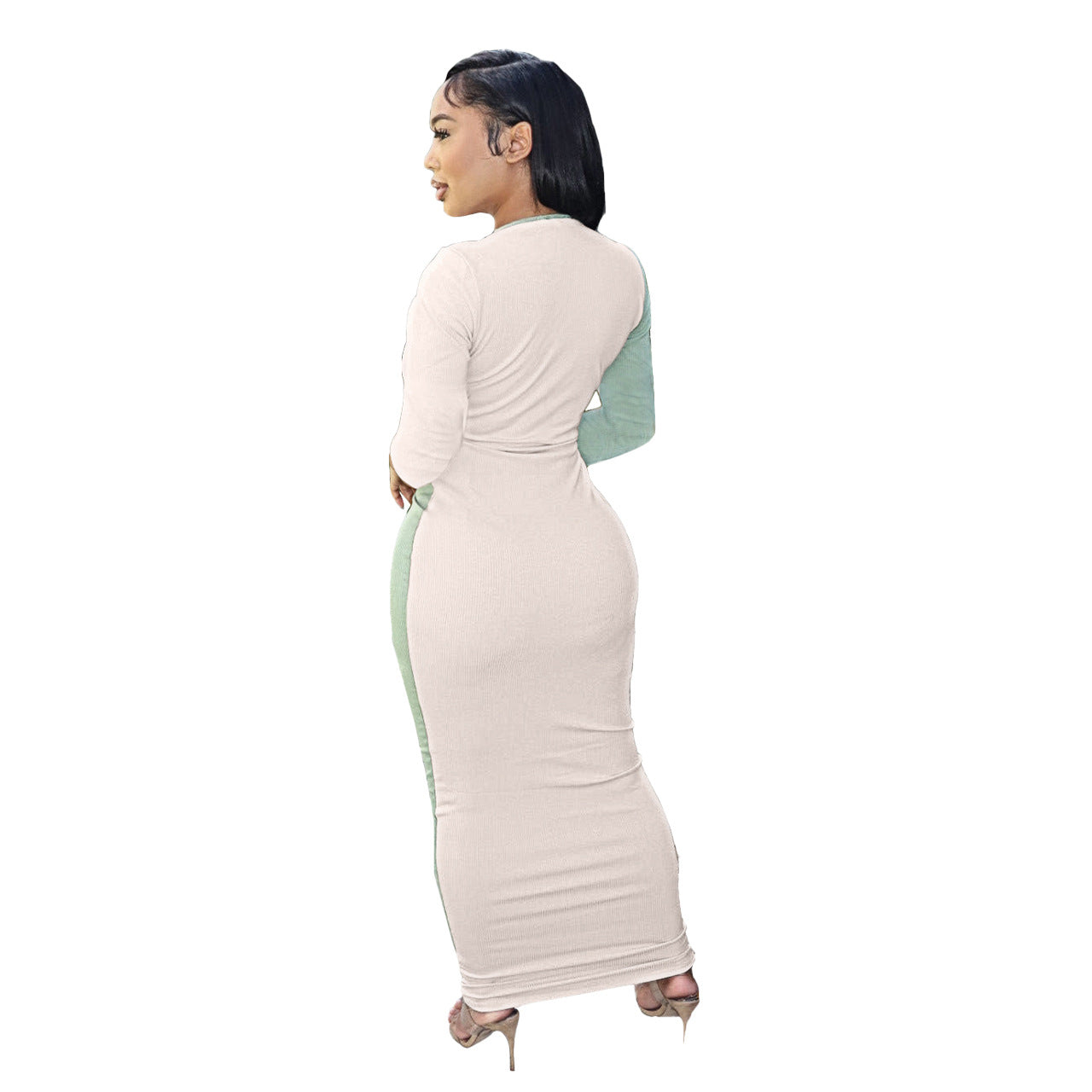 Sexy Color Block Thread Hollow-out Waist Long Dress (CL10902)
