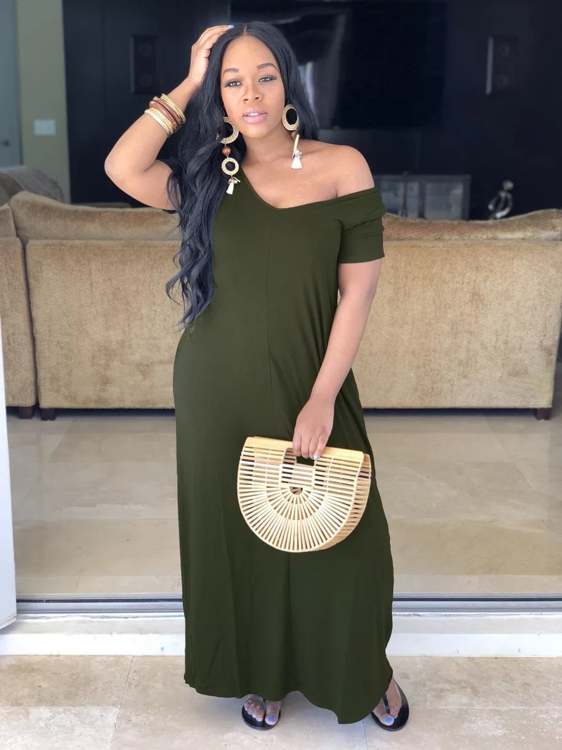 Wholesale sexy solid color high quality wide collar dress(CL9130)
