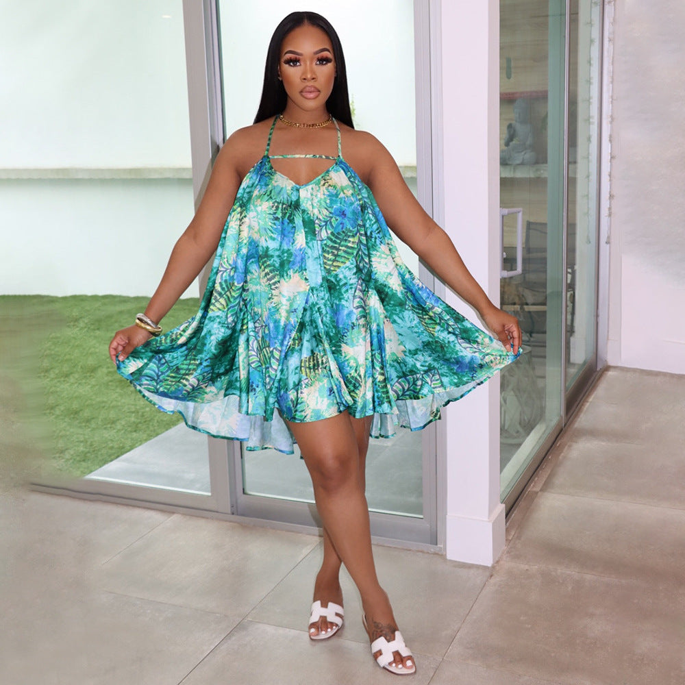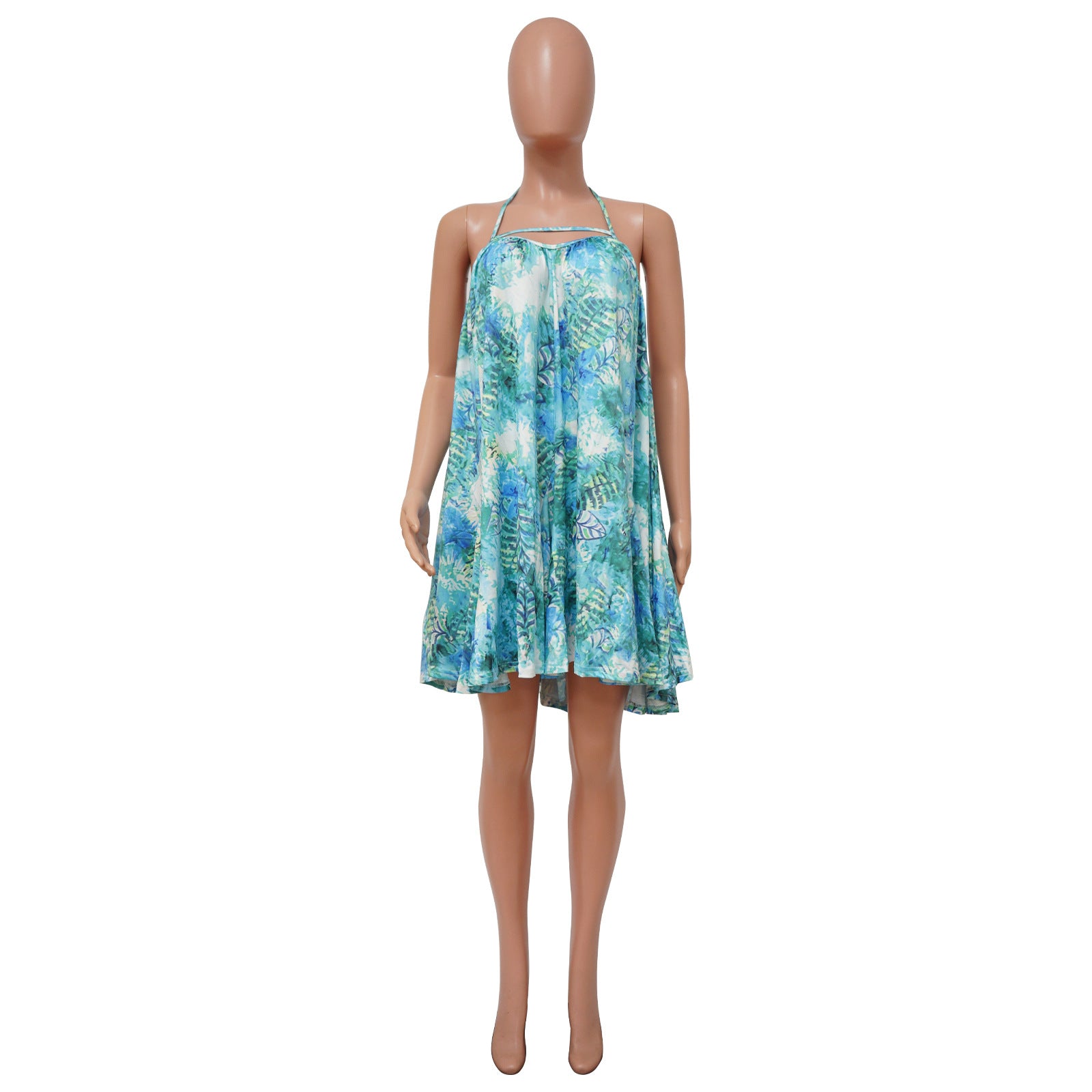 Women's Fashion Summer Strap Print Beach Dress (CL10123)