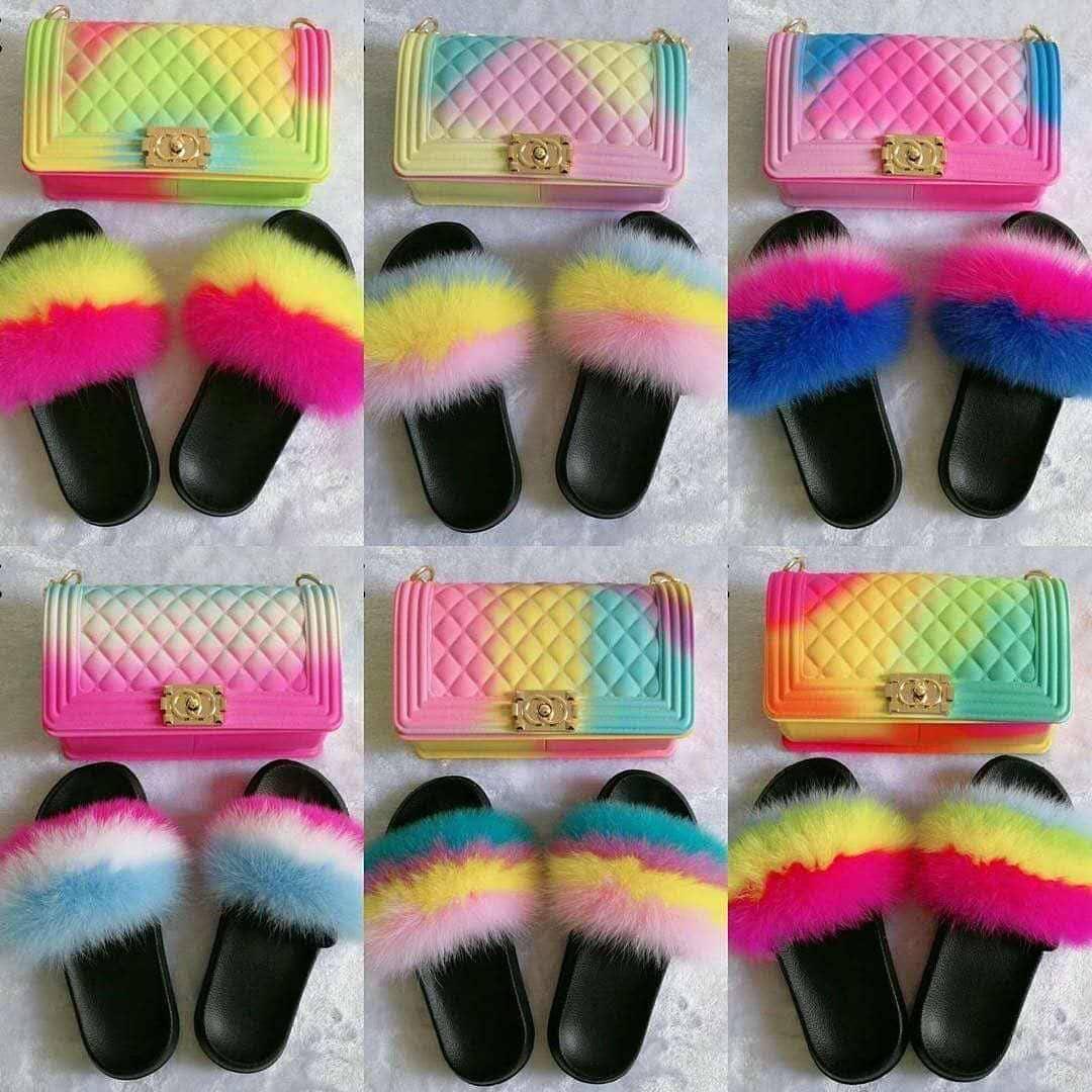 Colorful Jelly bag and fur slide set (SE8006)