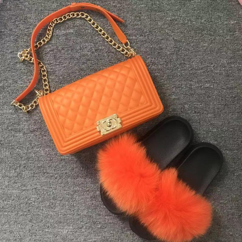 lekima.myshopify.com Orange Jelly Shoulder Bag And Slides Set(SE8009)