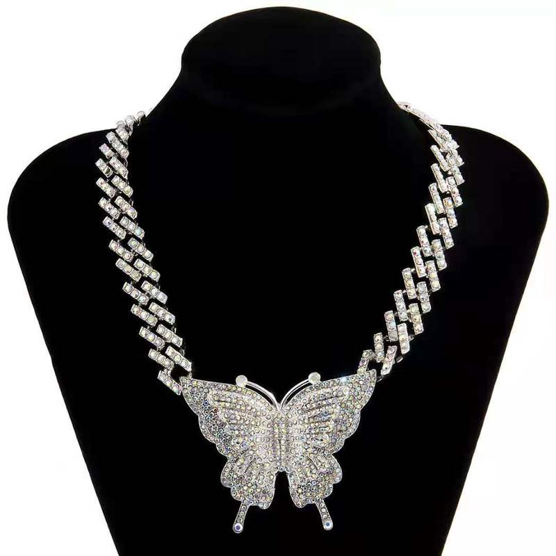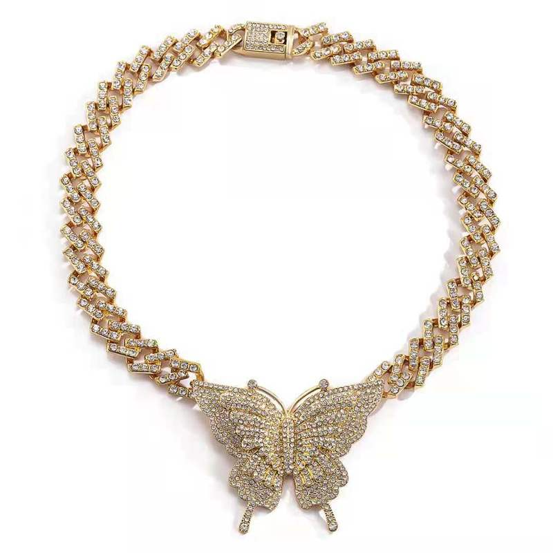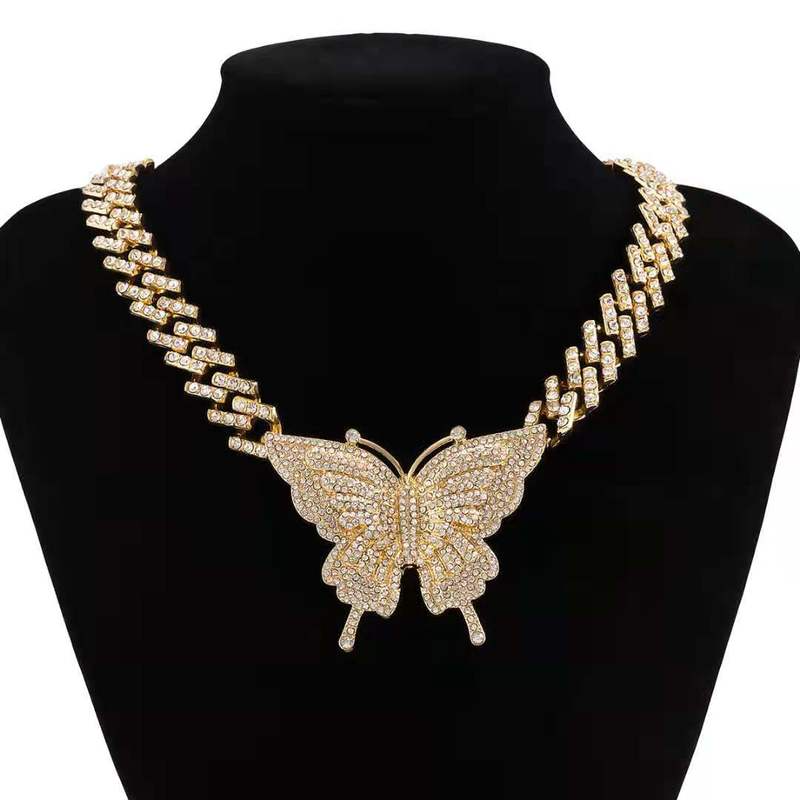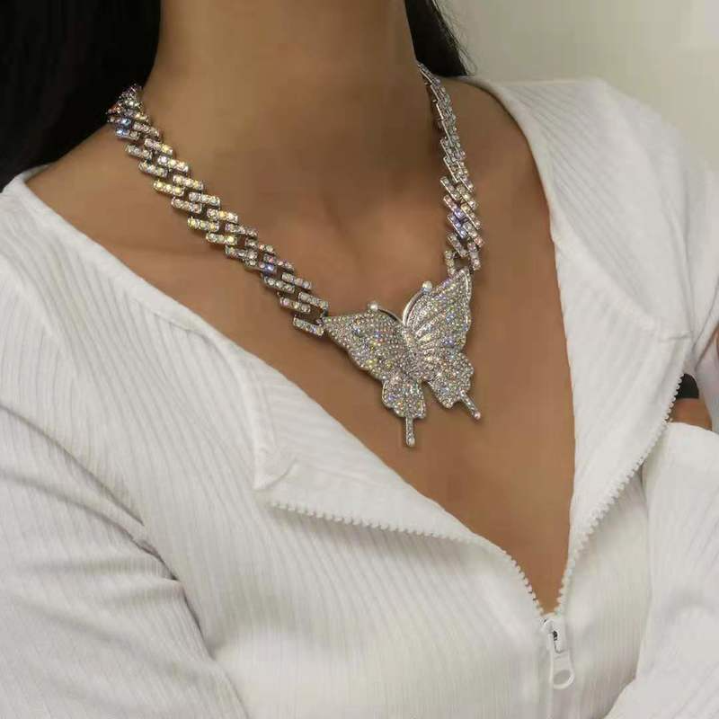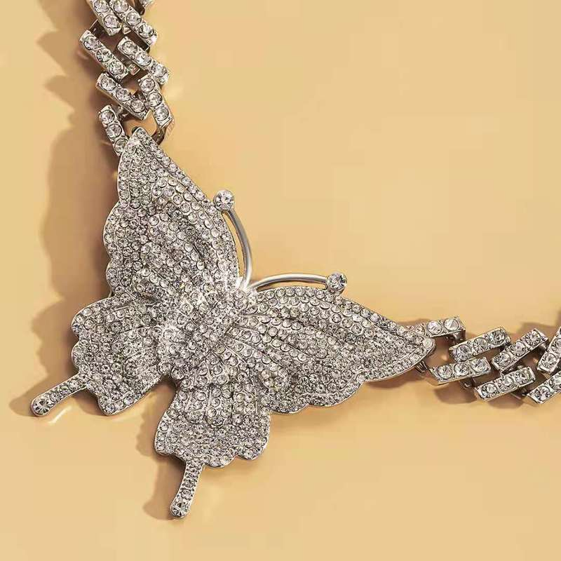 Fashionably diamond-filled vintage Cuban butterfly necklace(A0087)