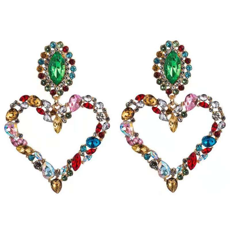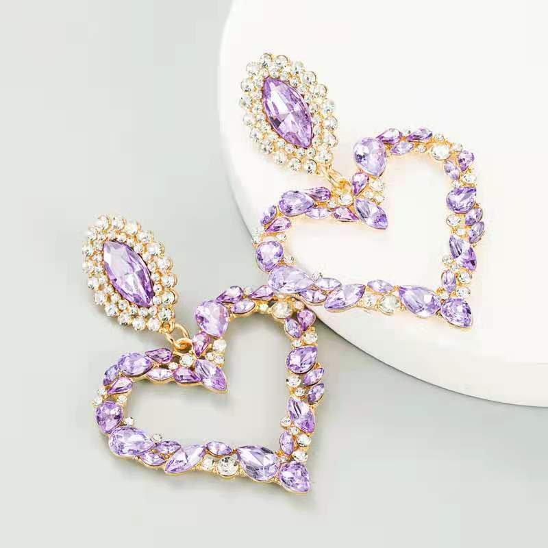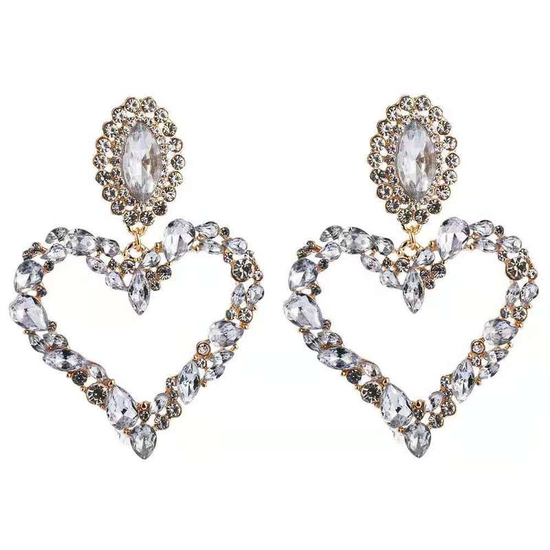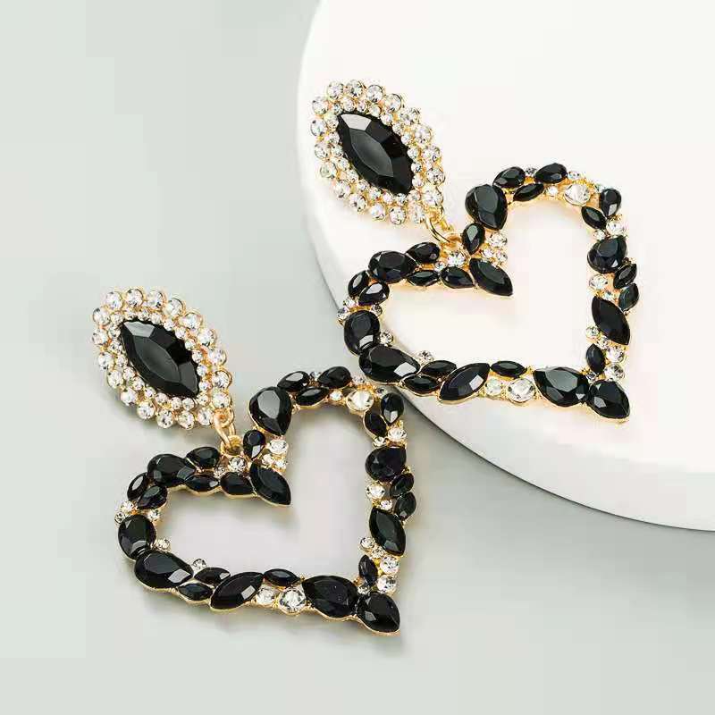 Heart-shaped alloy earrings set with diamond(A0097)