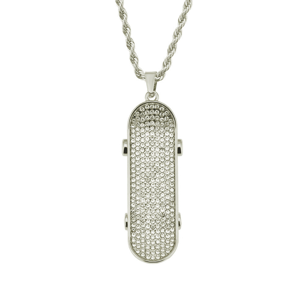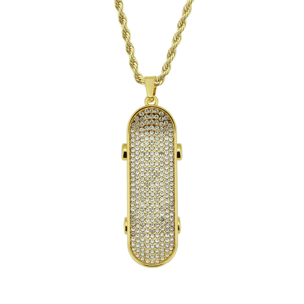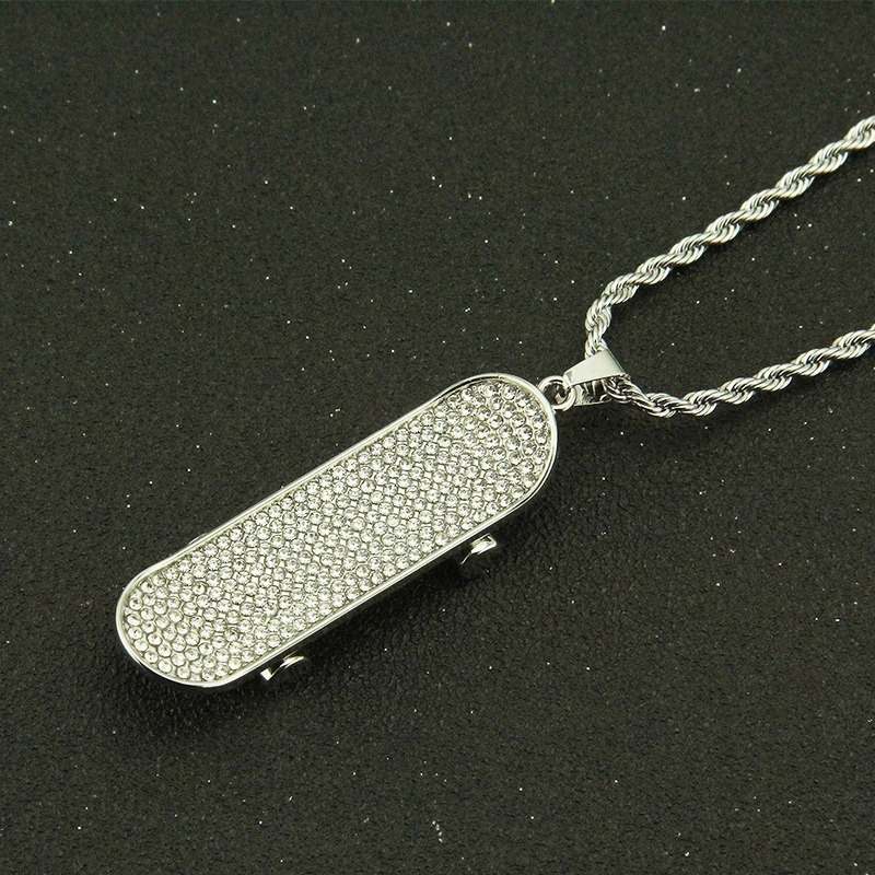 Wholesale diamond inlaid three-dimensional skateboard pendant trendsetter fashion accessories men's Necklace(A0122)