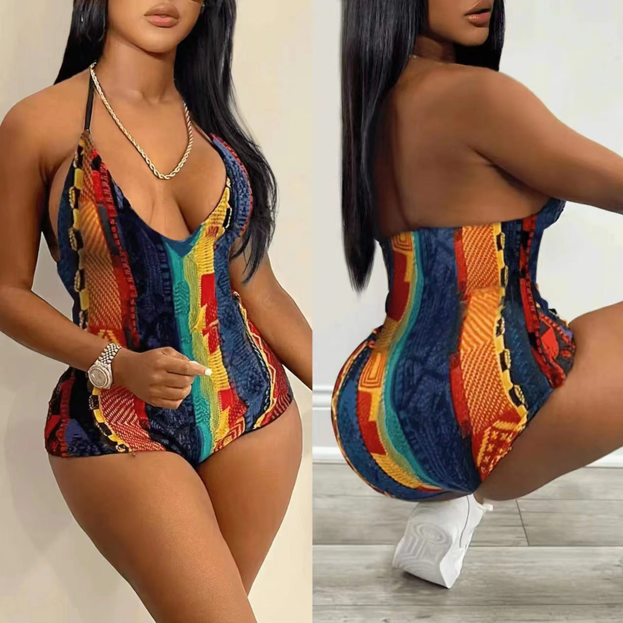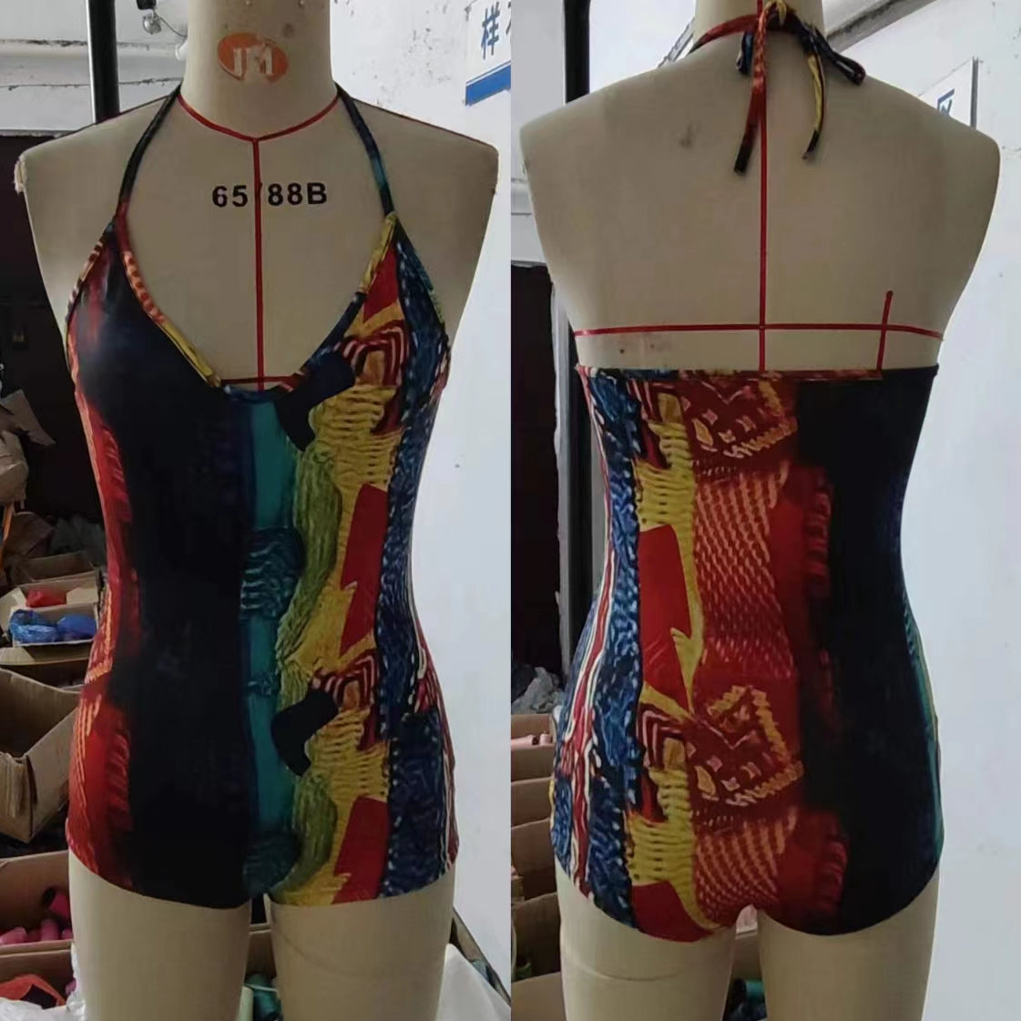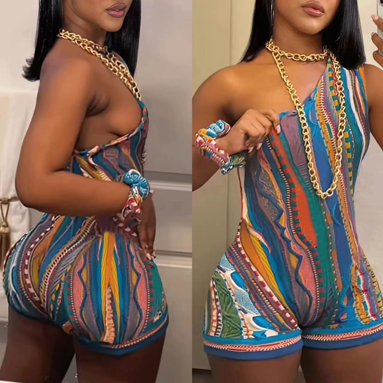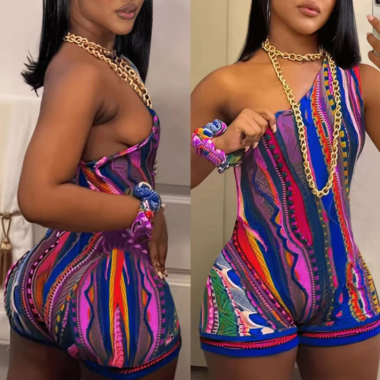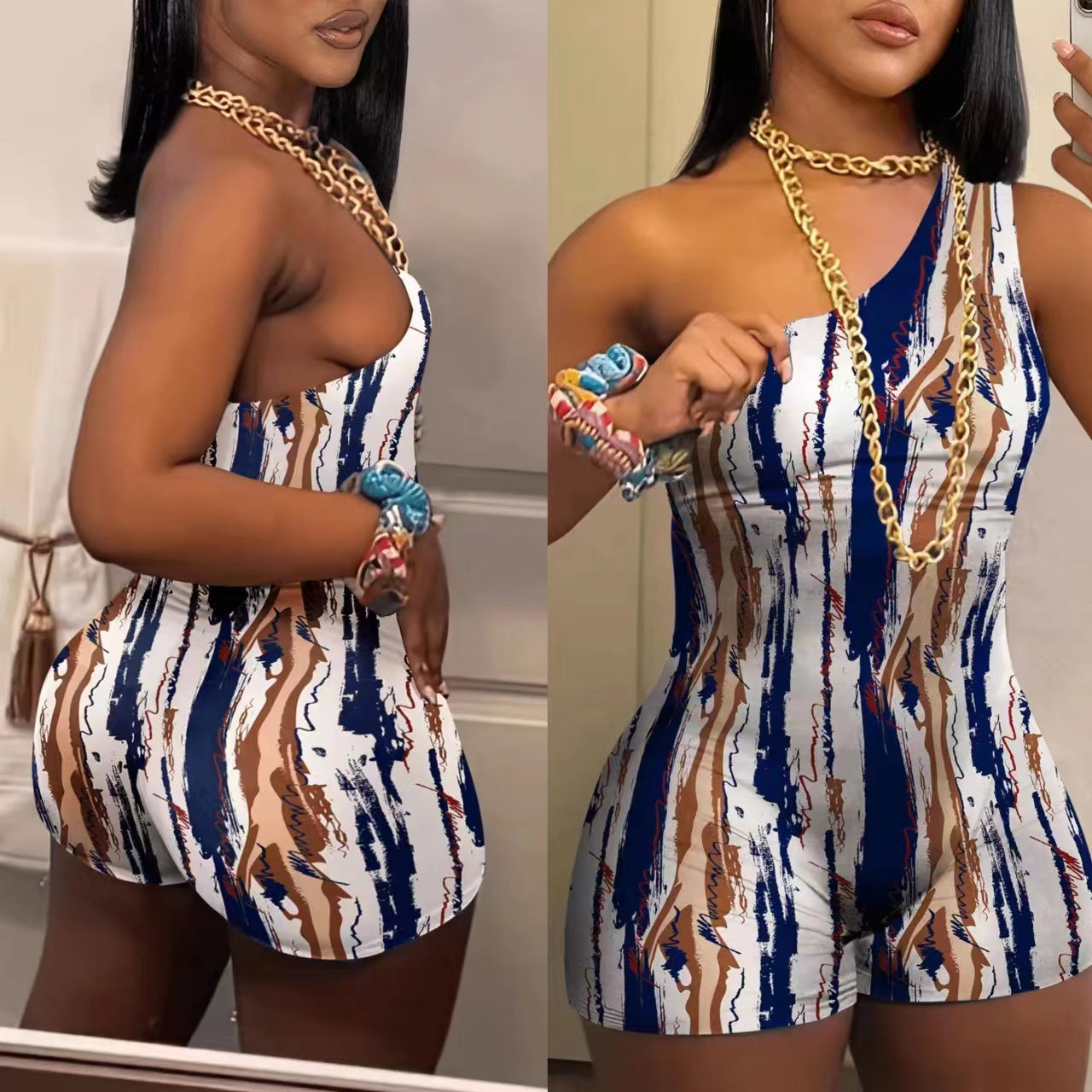 Abstract Printing Oblique Shoulder Jumpsuit(CL11813)