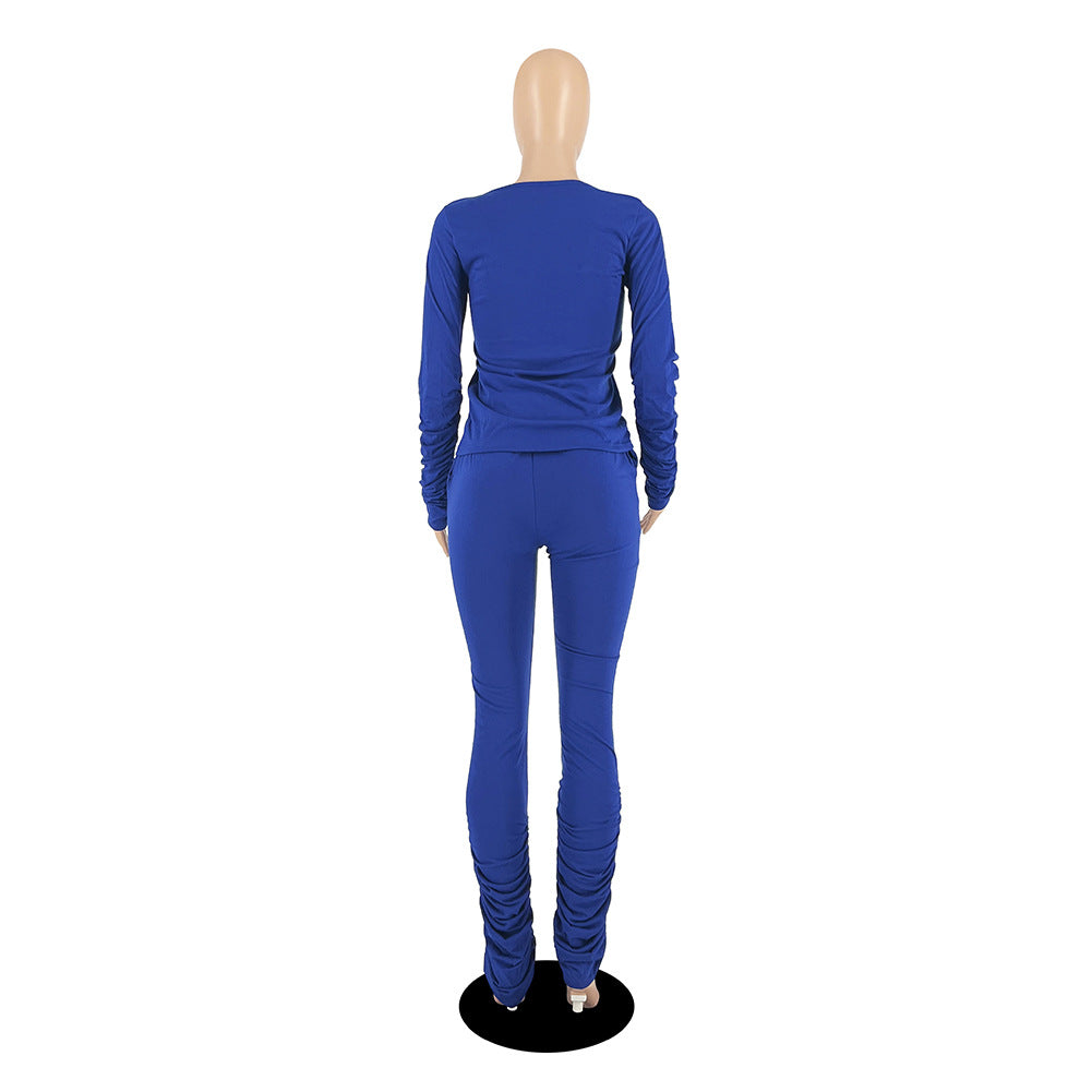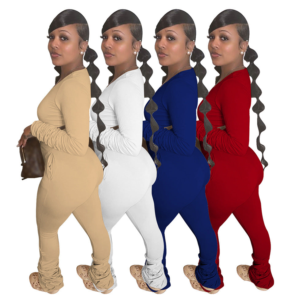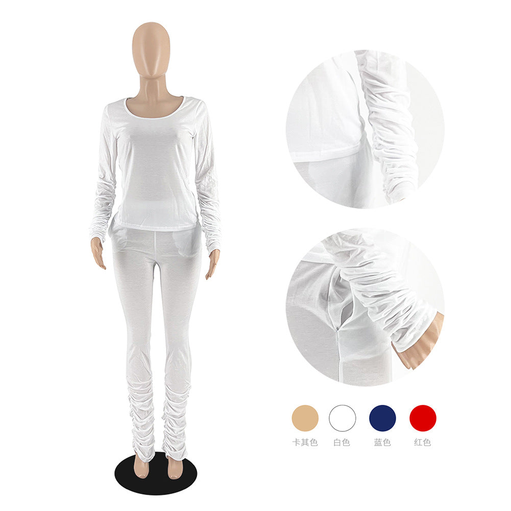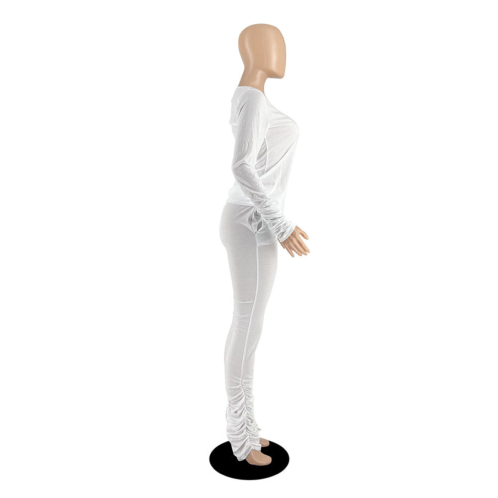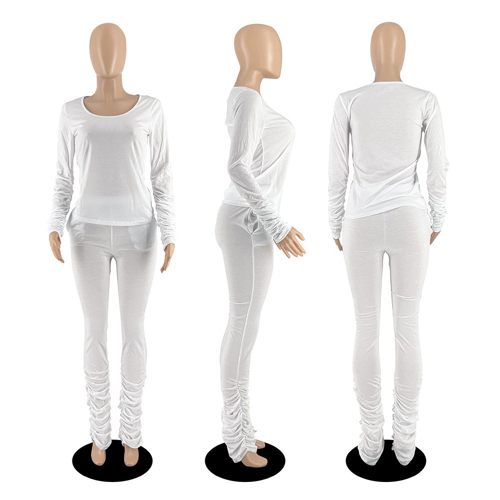 Cotton Like Solid Color Stack Pants for Home Casual Pants Set (CL10962)