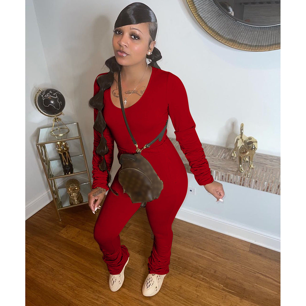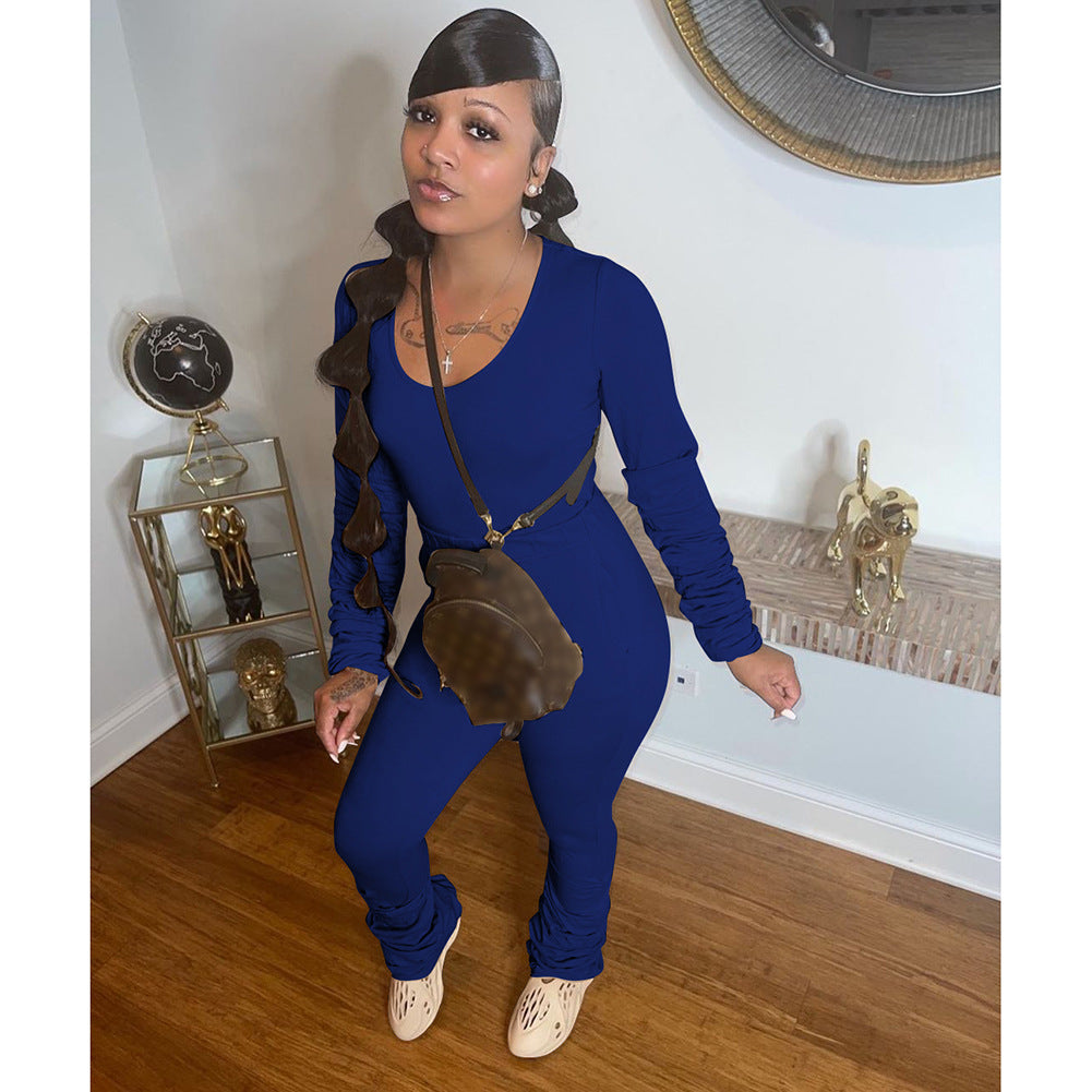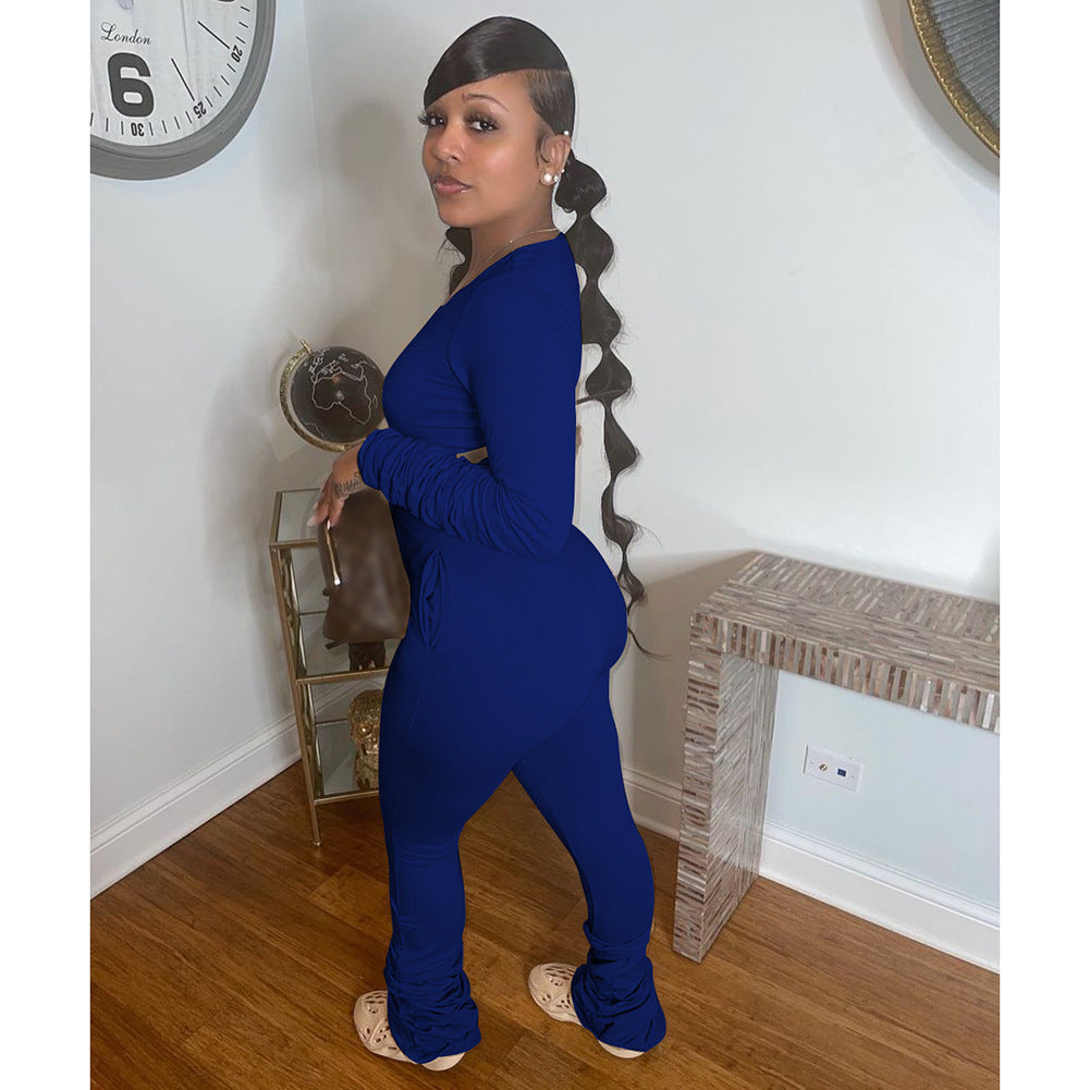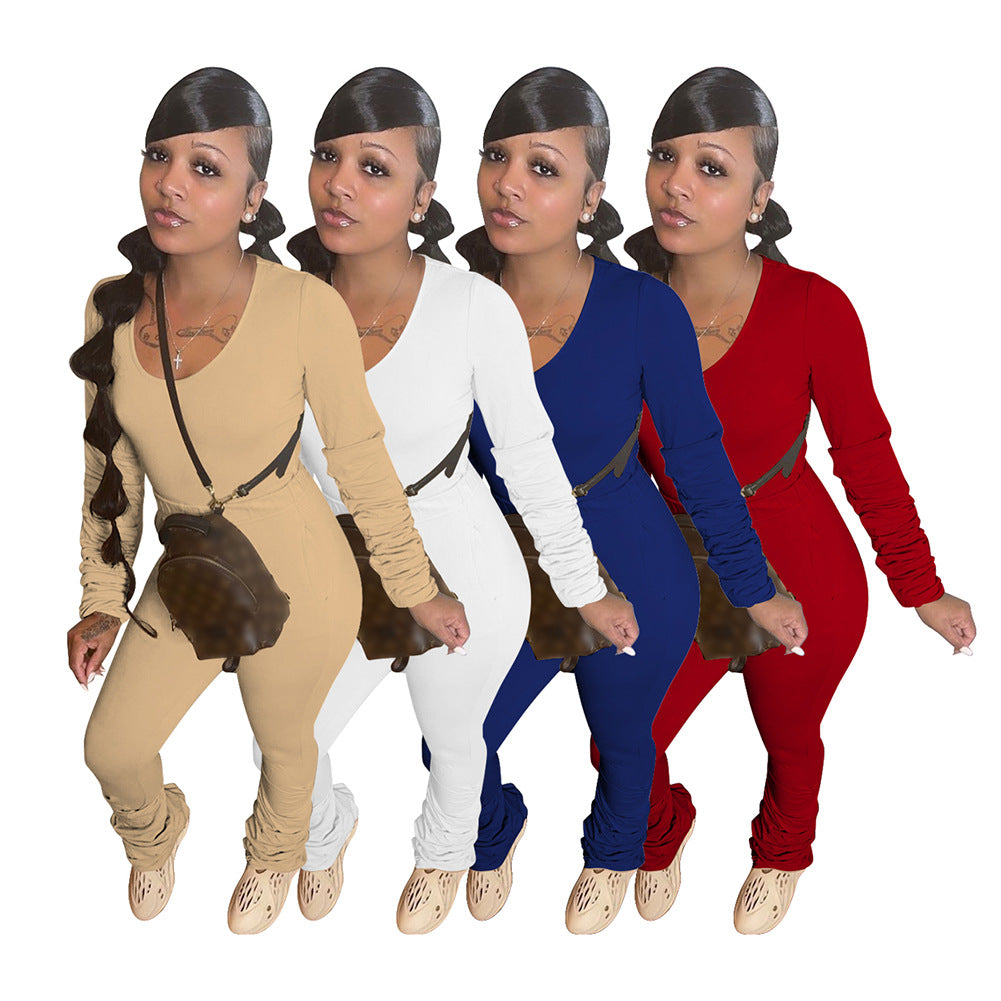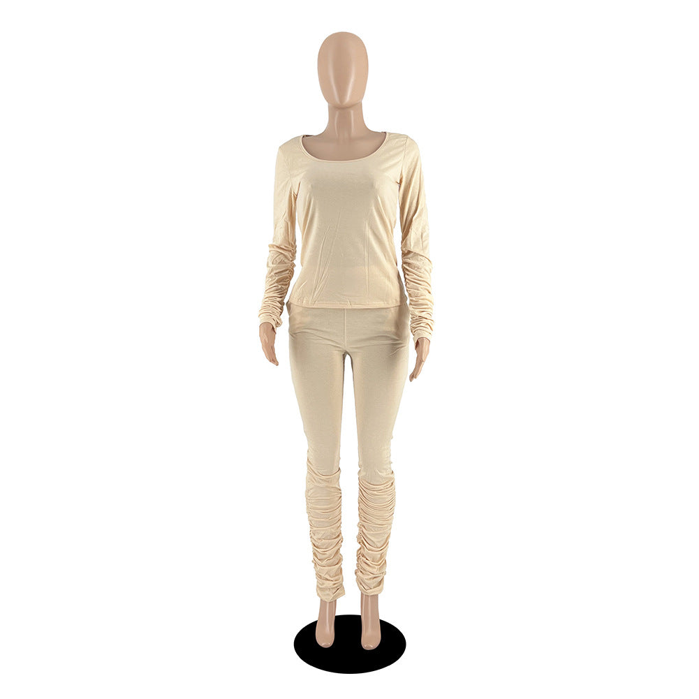 Cotton Like Solid Color Stack Pants for Home Casual Pants Set (CL10962)
