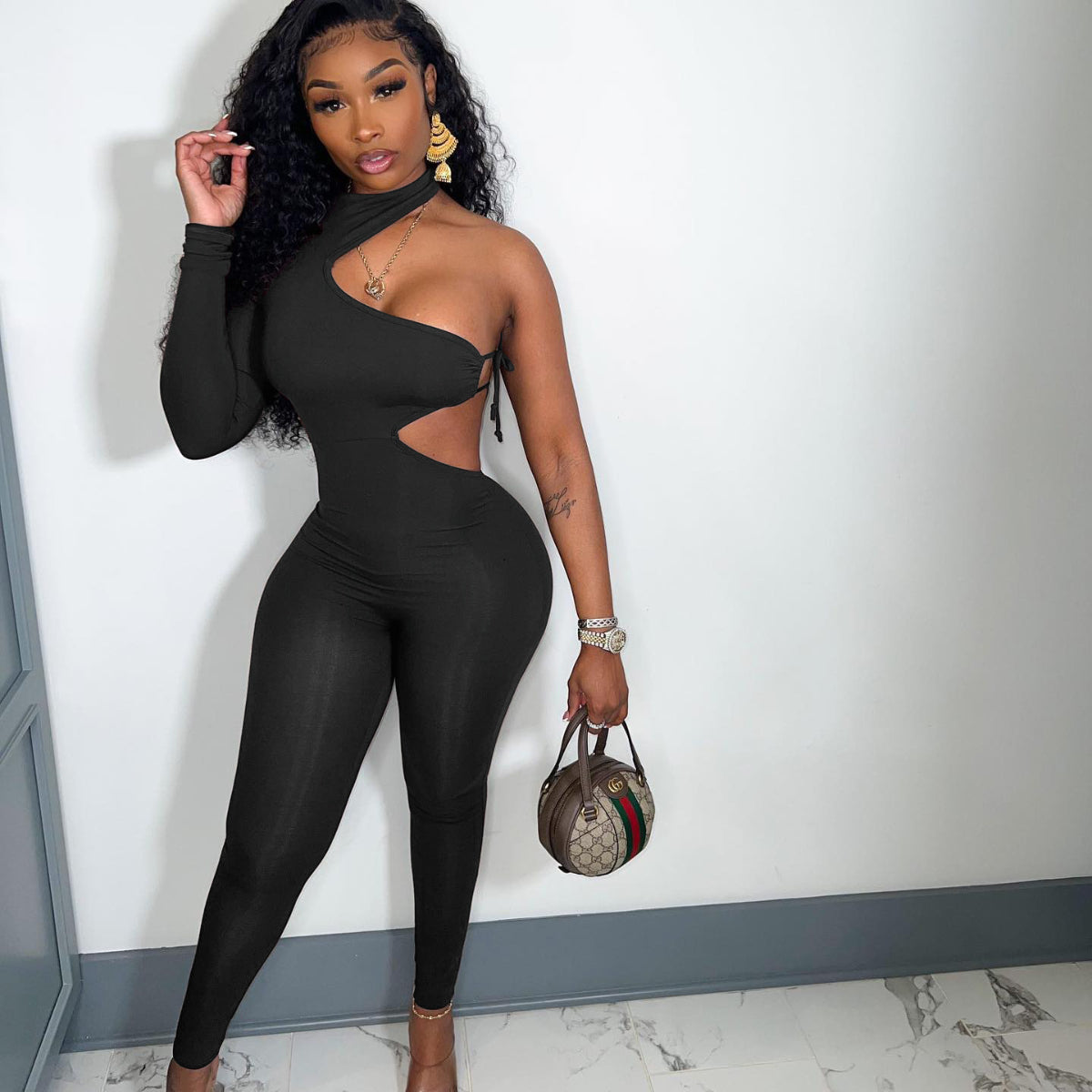 Lace-up One-Sleeve Irregular Jumpsuit(CL10848)