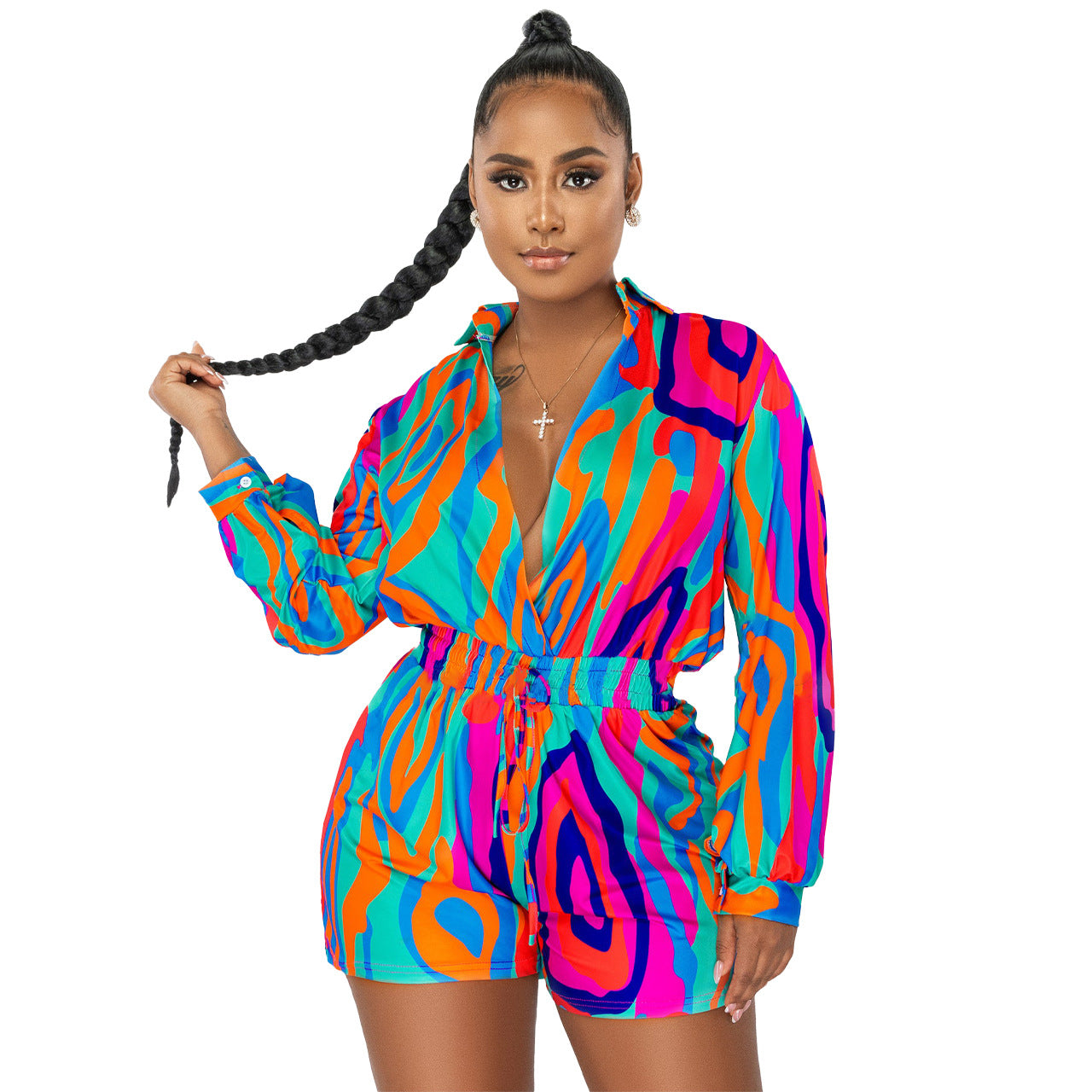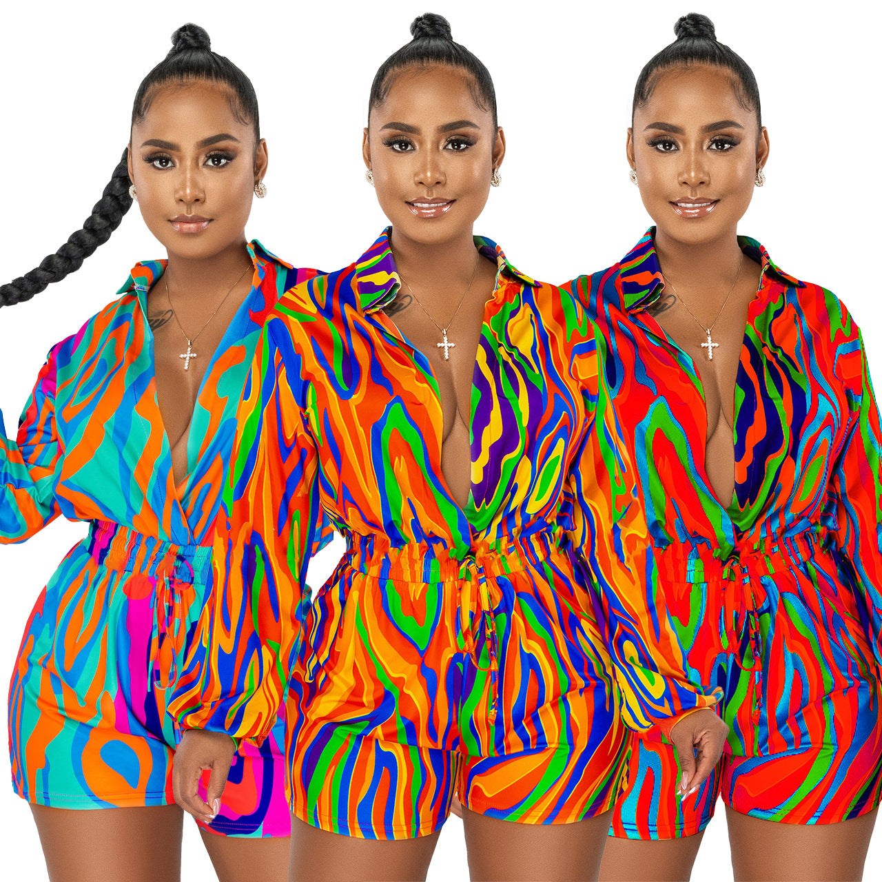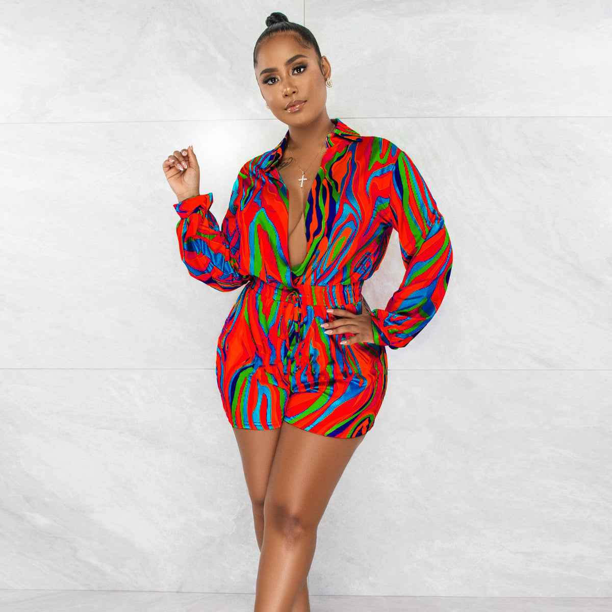 Lapel Print Fitted Waist Jumpsuit(CL10827)