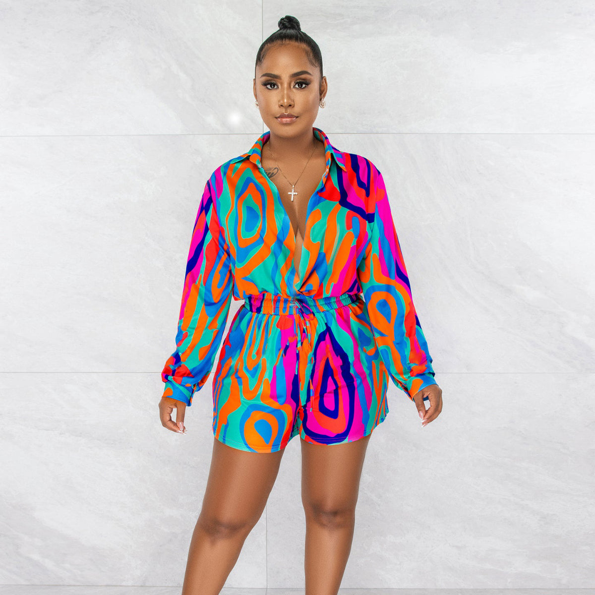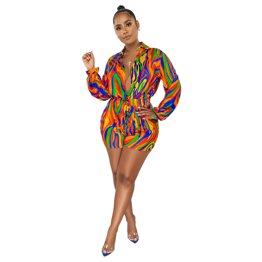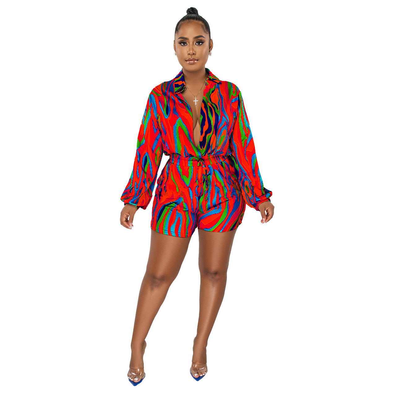 Lapel Print Fitted Waist Jumpsuit(CL10827)